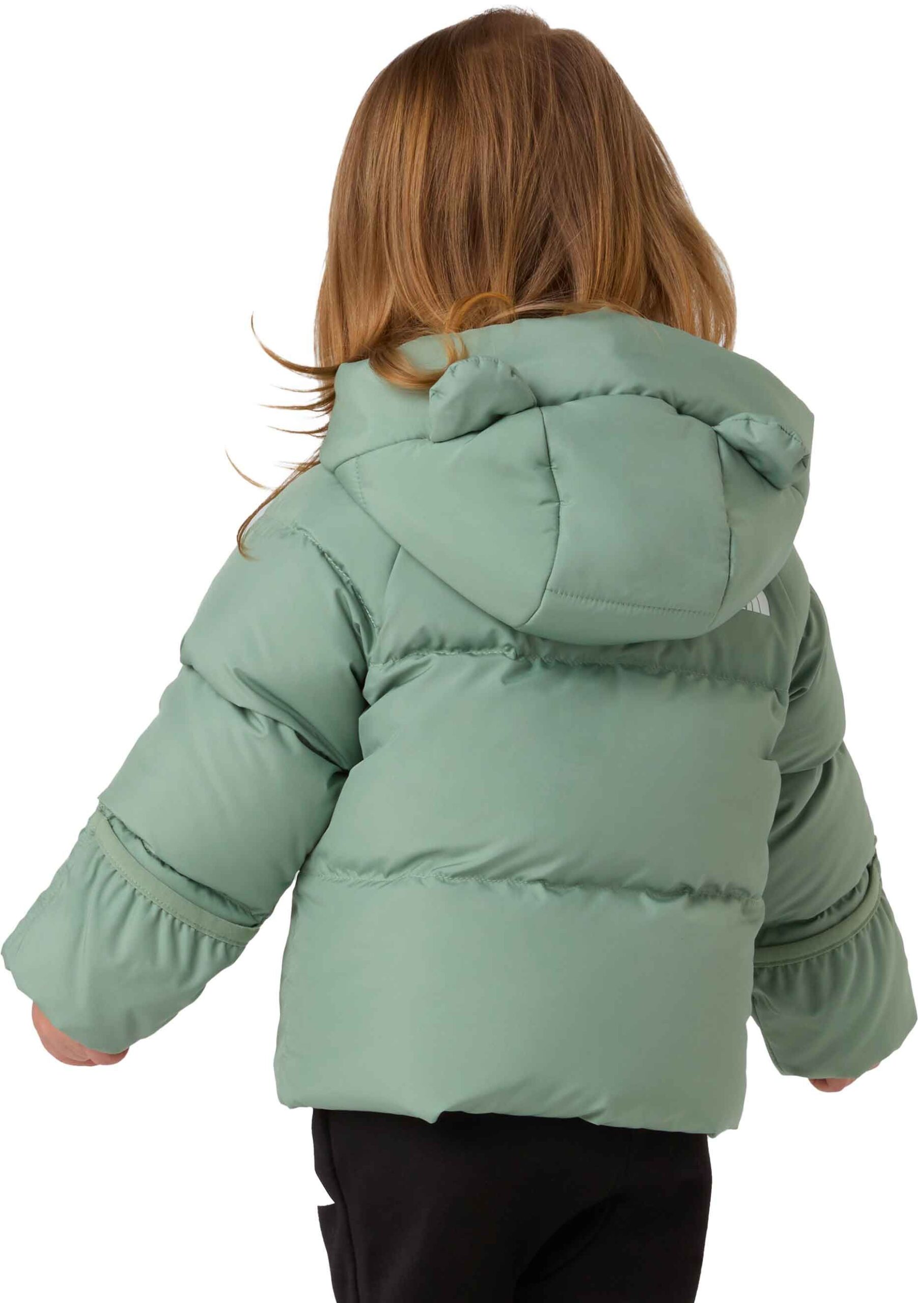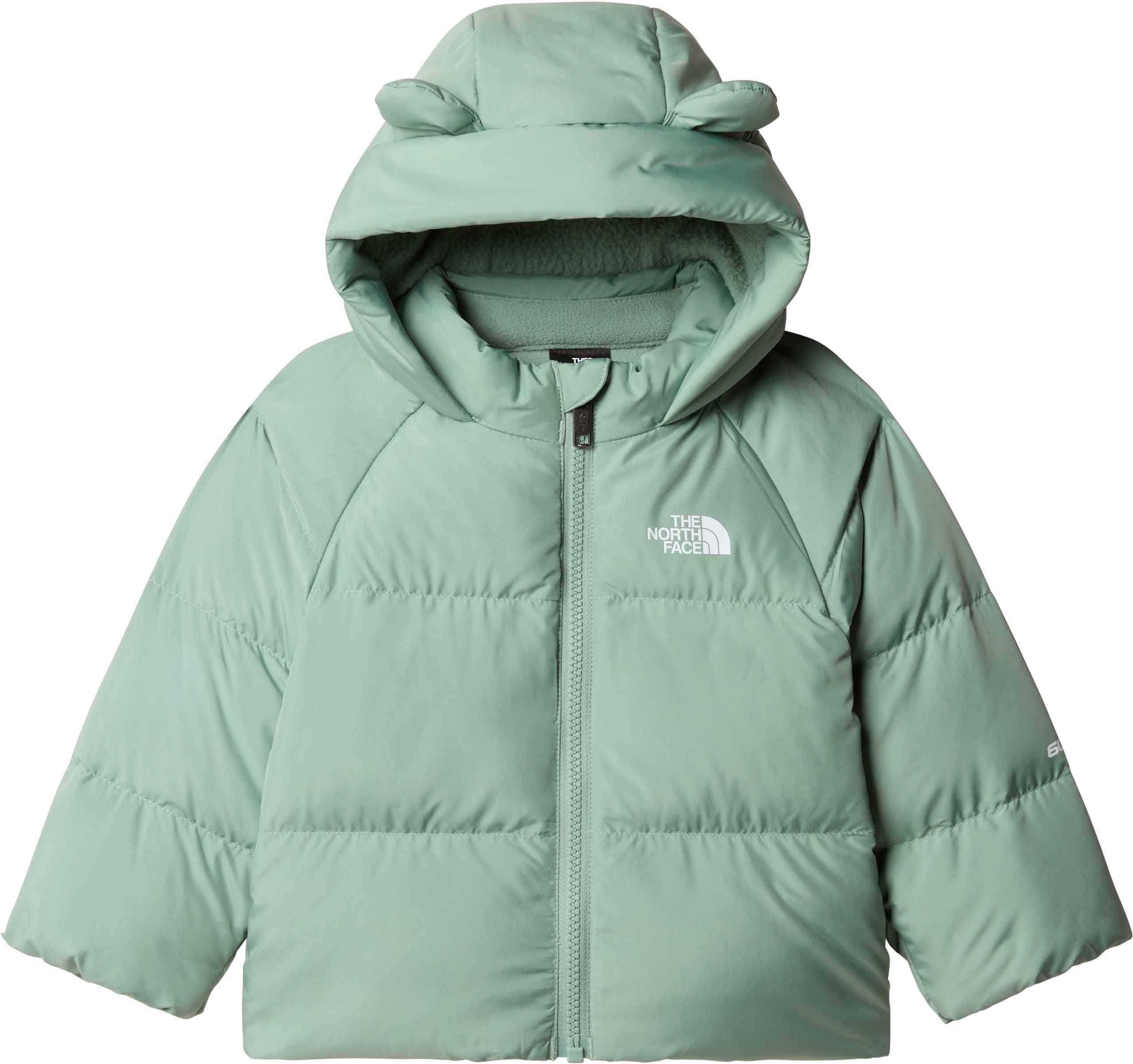 La parka The North Face Baby North Down Fleece Lined Parka Slate Moss en duvet recyclé protège l’enfant du froid hivernal grâce à sa coupe standard, son tissu polyester recyclé déperlant, sa doublure polaire et l’isolation HEATSEEKER™ dans capuche et poches.