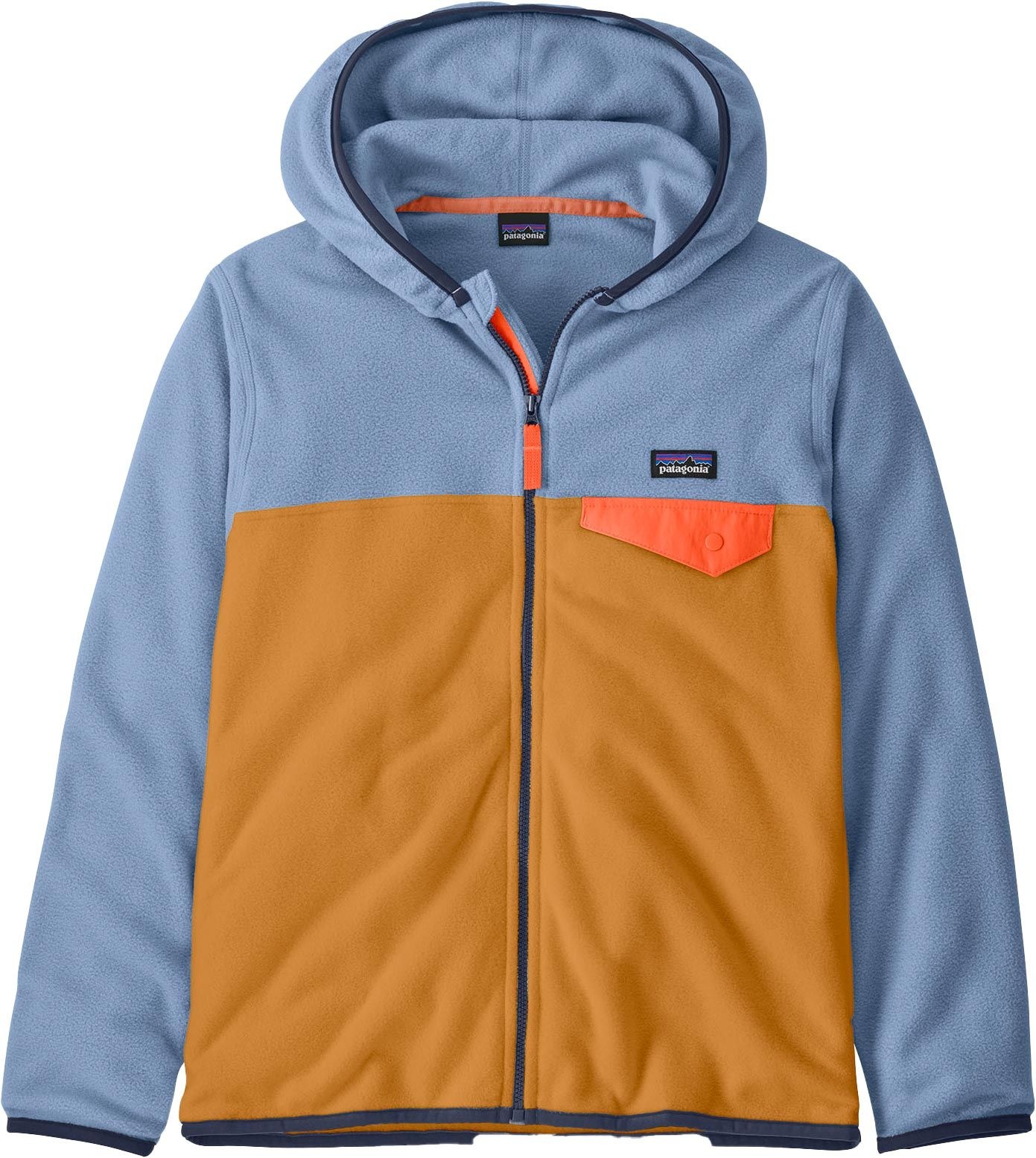 Polaire à capuche Micro D Snap-T Jkt Talon Gold Patagonia : chaude, douce et équitable, elle garde bébé à l’aise sous la doudoune quand le froid s’installe.