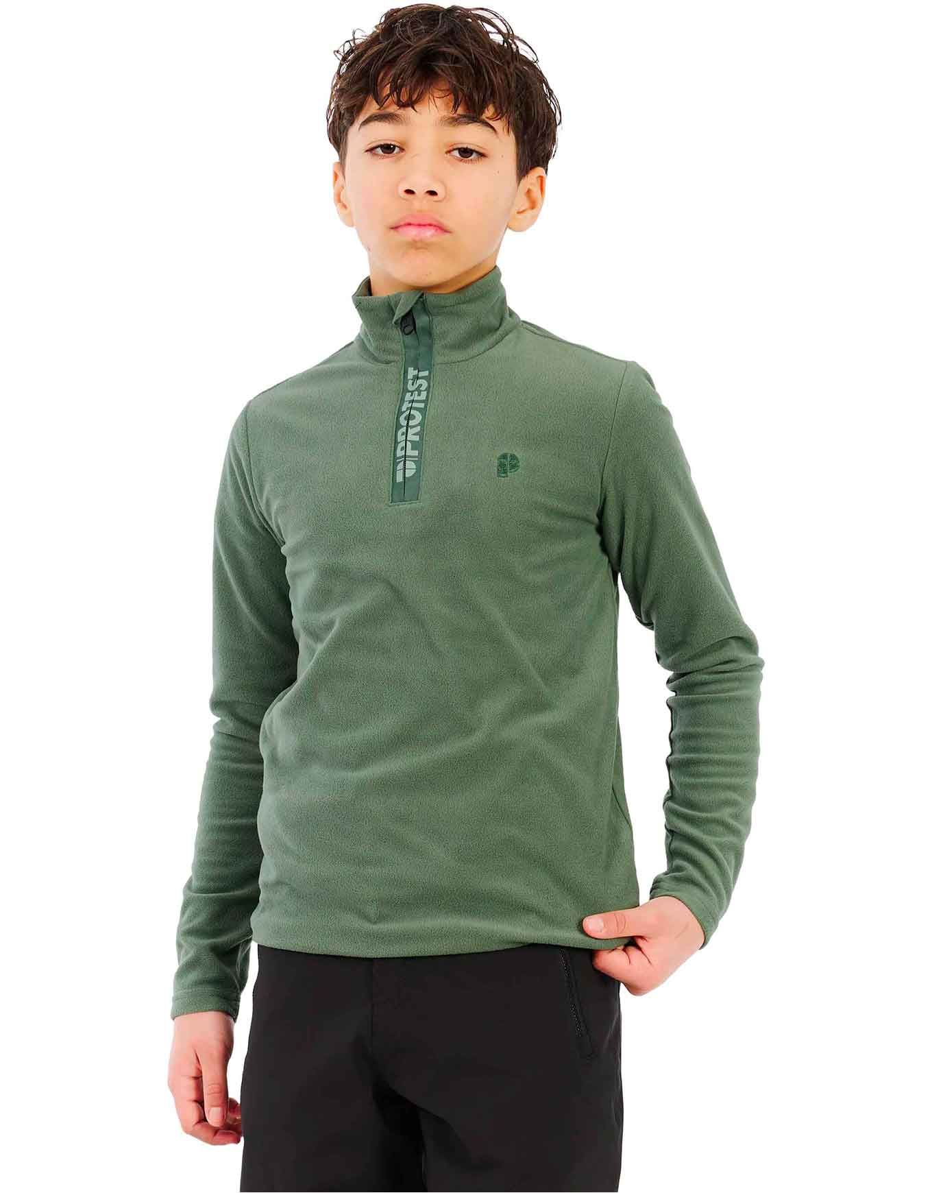 Protest Reperfecty Jr 1/4 Zip Active Top Aspen Green : haut actif garçon en micropolaire GEOTECH extensible 360° et matière recyclée PVRE Green, chaleur légère et liberté de mouvement pour l’hiver.