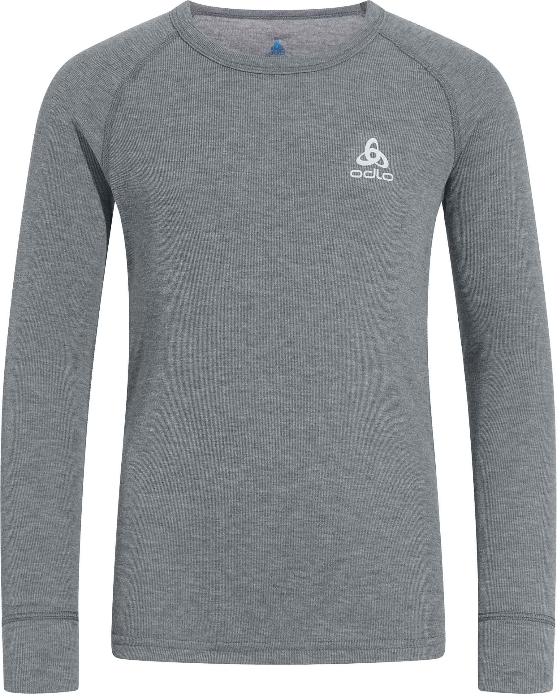 Première couche Active Warm Steel Grey Melange d’Odlo enfant : tissu doux, chaleur respirante, liberté de mouvement et traitement ZeroScent contre les odeurs pour hiver actif.