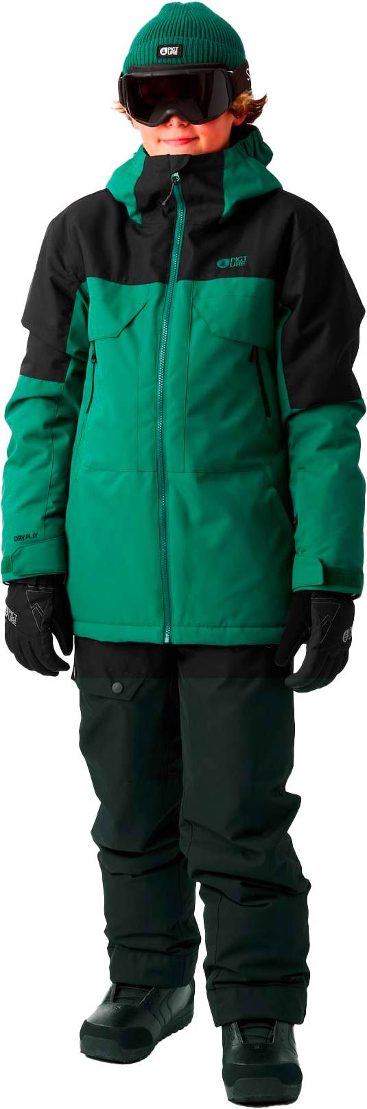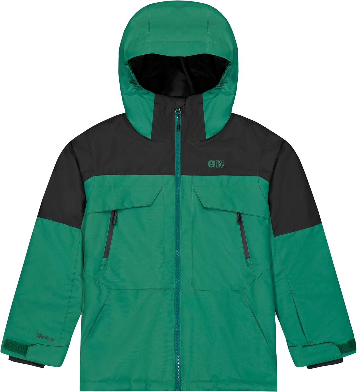 La veste Cossmo Smoke Pine de Picture Organic Clothing est une veste de ski technique enfant avec membrane Dryplay 10K/10K, isolation Thermal STD recyclé et traitement déperlant sans PFC pour imperméabilité, chaleur et respirabilité.