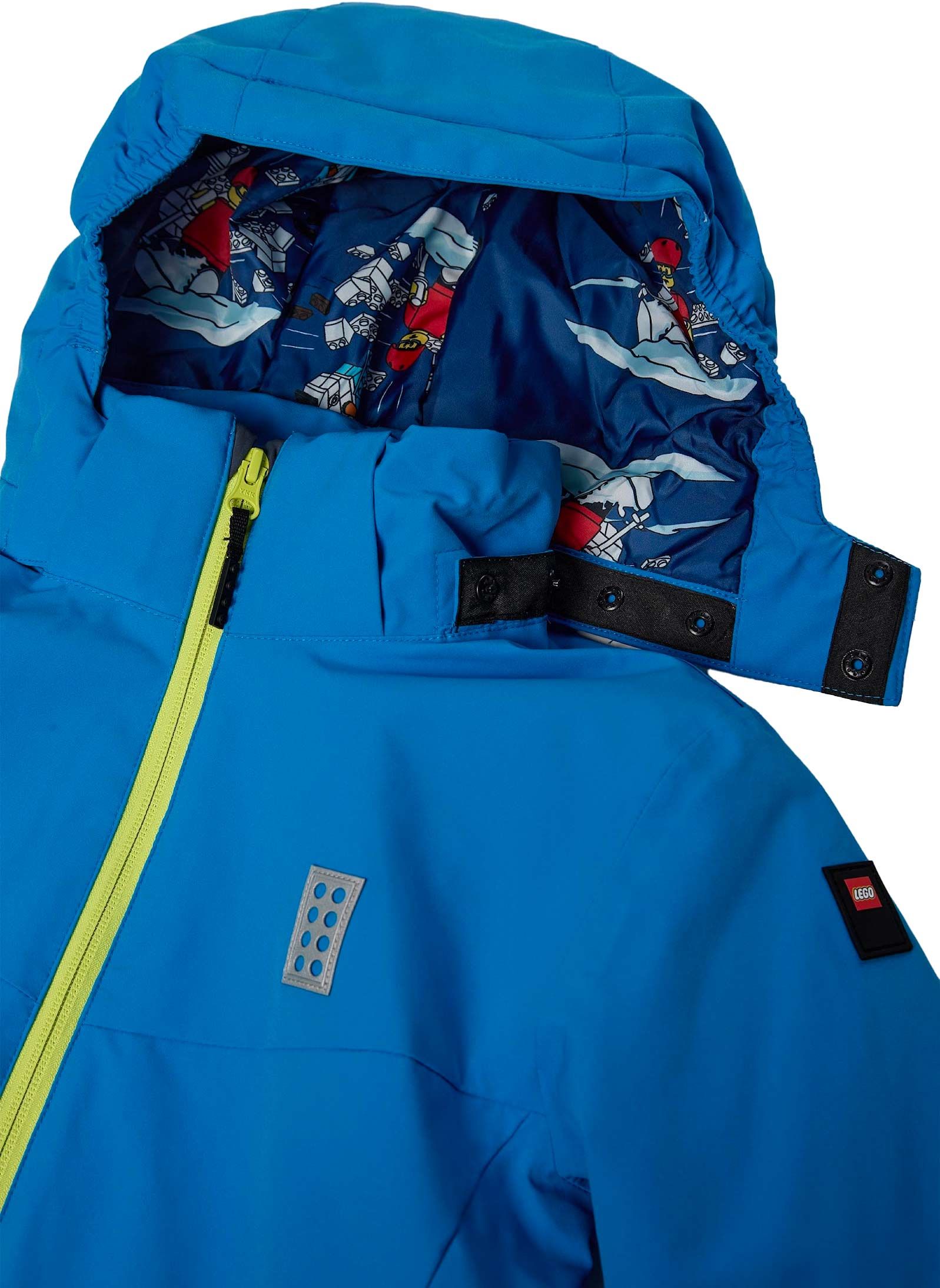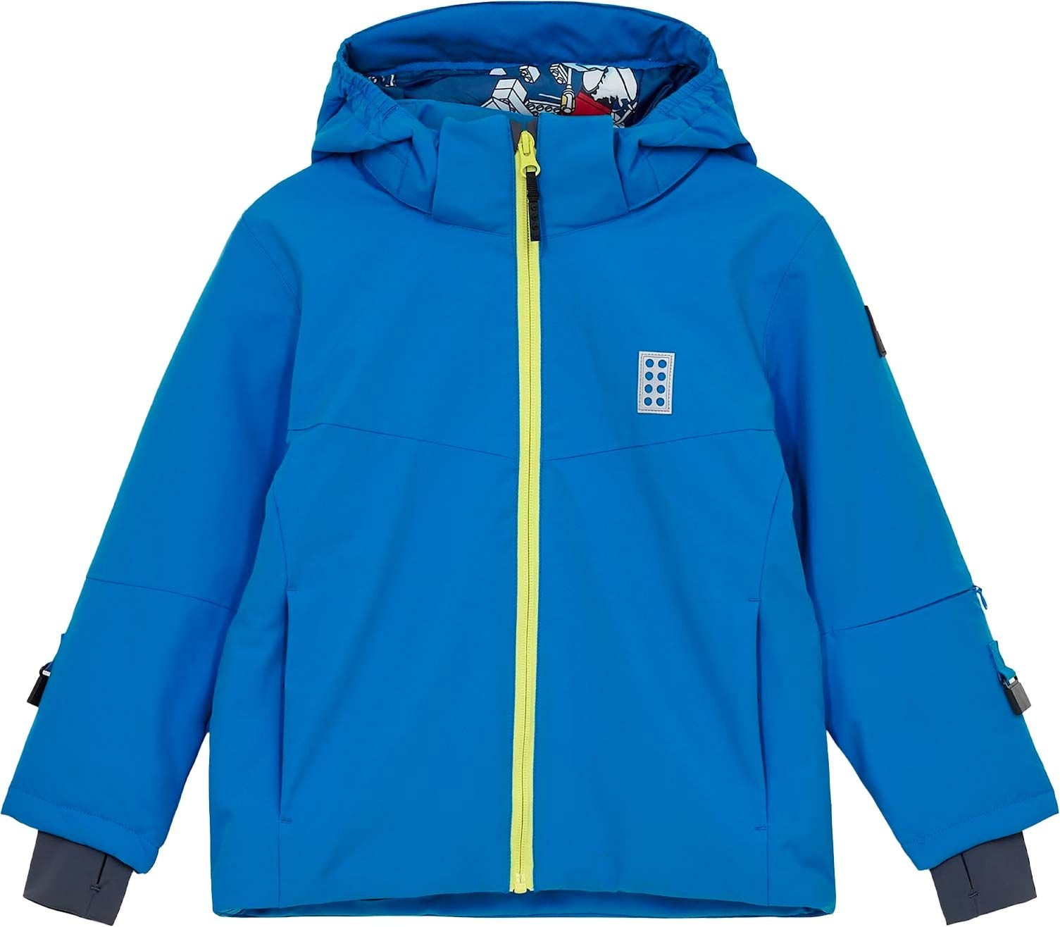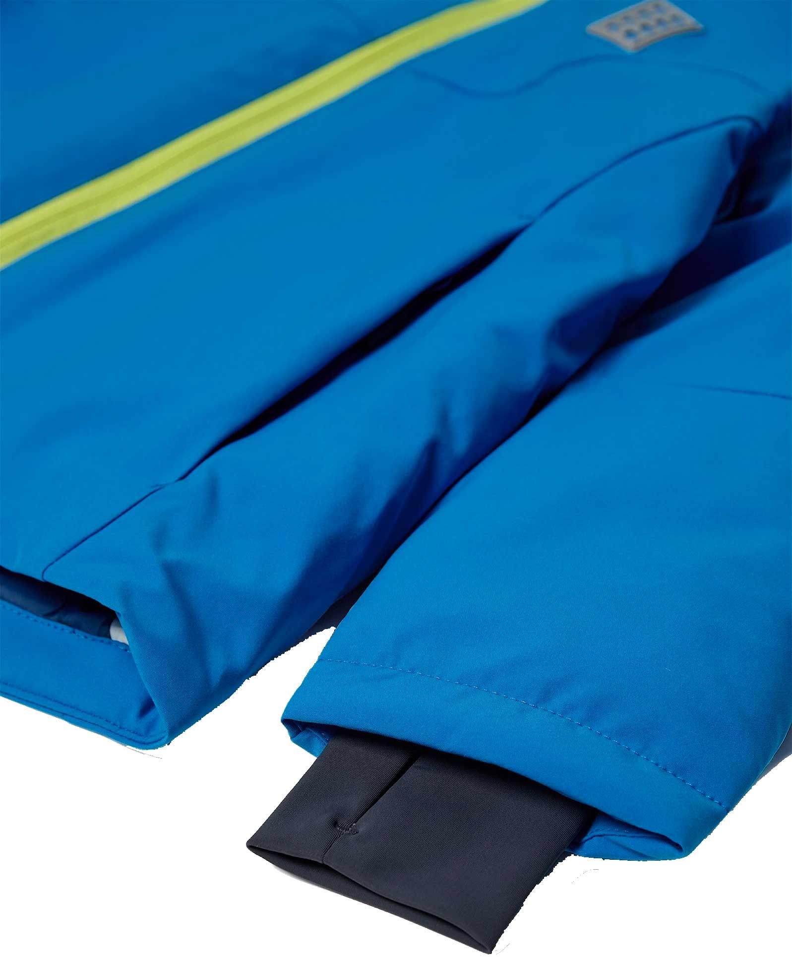 La veste de ski Lego Wear Jaz 802 Jacket Blue protège l’enfant de la neige par son tissu imperméable, coupe-vent et respirant, sa capuche sécurisée amovible, sa jupe pare-neige intégrée et ses poignets avec passe-pouces.