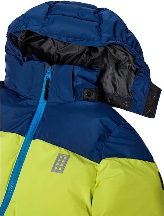 La veste de ski Lego Wear Jaz 805 Jacket Blue garde l’enfant au sec et visible : coupe-vent, imperméable coutures étanches, respirante, capuche sécurité amovible, jupe pare-neige et poche forfet manche.