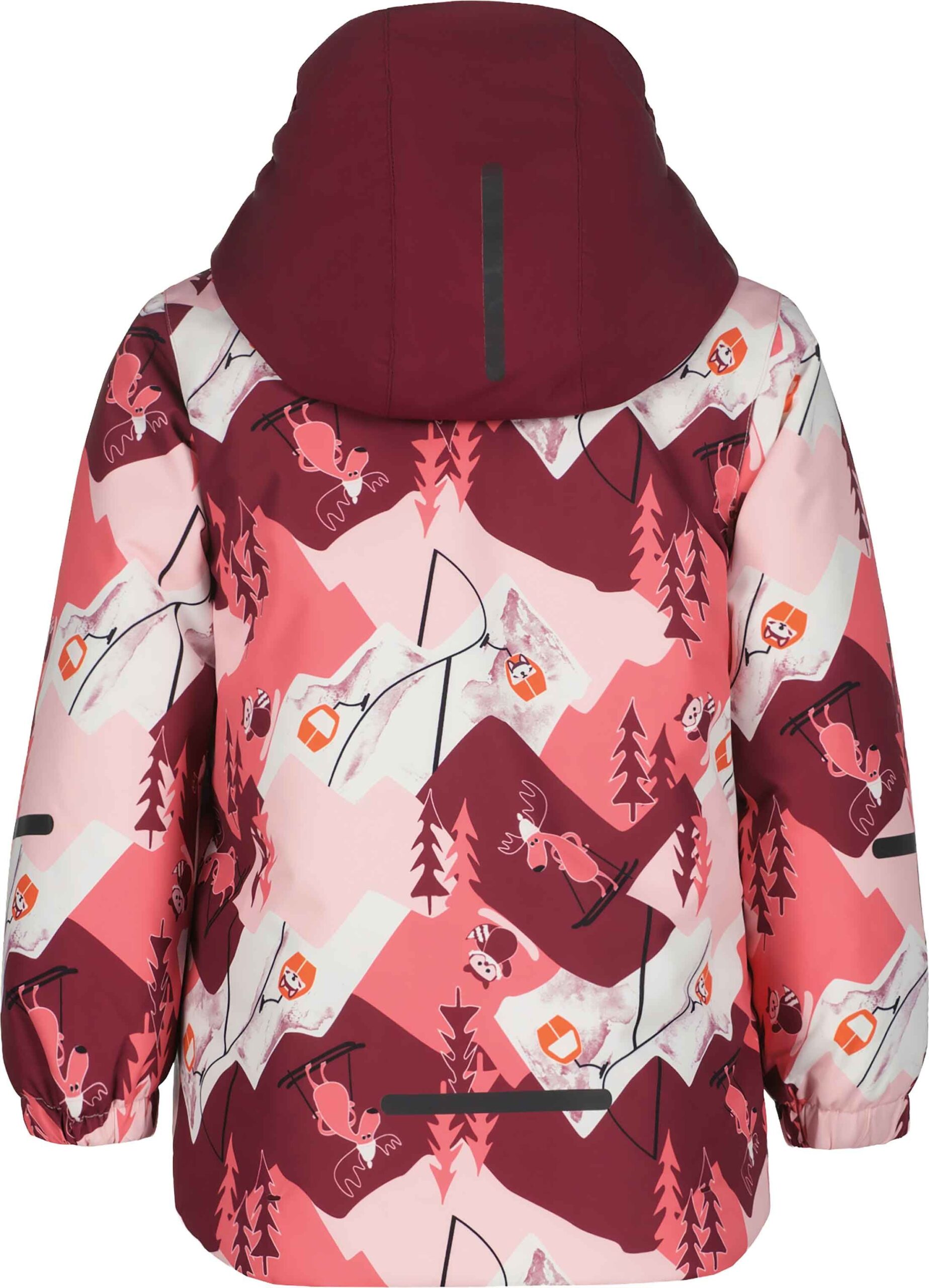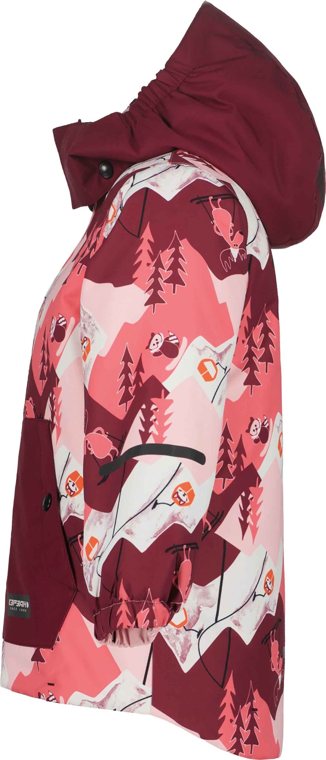 Veste de ski bébé Jena Rose d’Icepeak, 2 couches membranées imper-respirantes, coutues étanches, rembourrage léger, jupe pare-neige et capuche anti-étranglement amovible pour protéger du froid, du vent et de la neige.