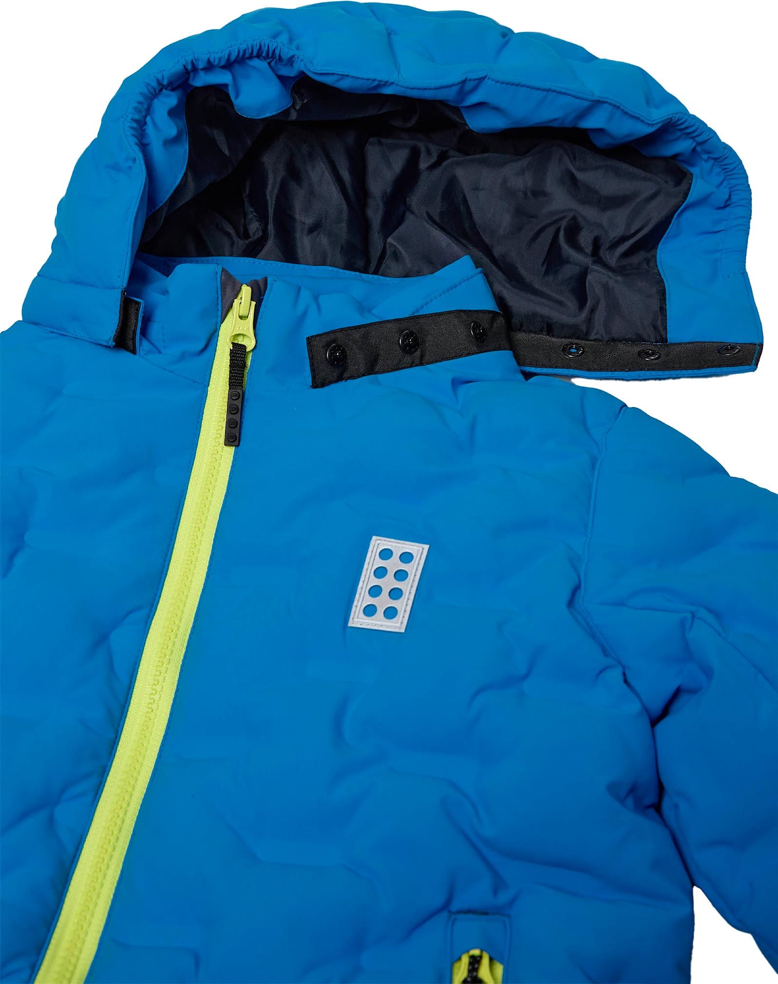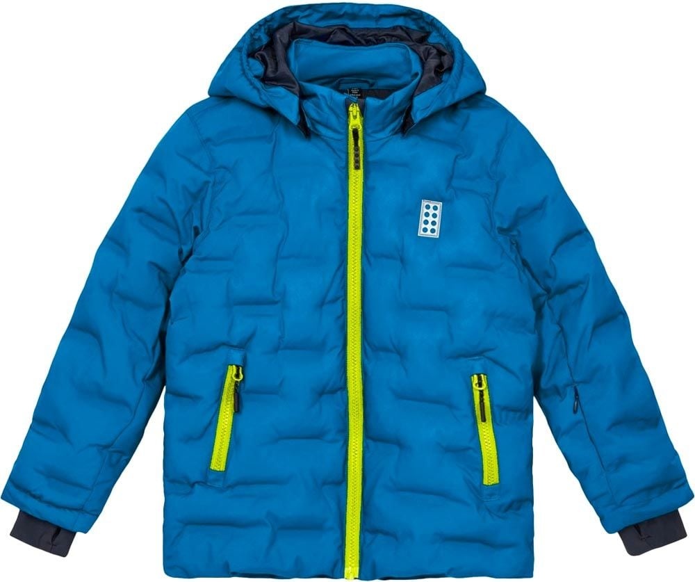 La veste de ski Lego Wear Jipe 706 Jacket Blue/Lime enfant déperlante, respirante et coupe-vent offre chaleur, confort et sécurité avec sa capuche amovible, sa jupe pare-neige et ses détails réfléchissants.