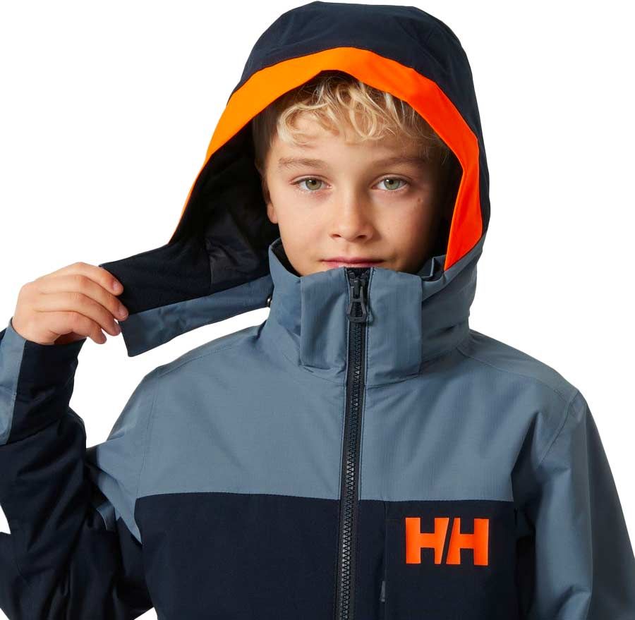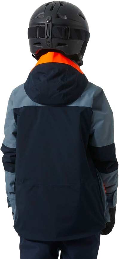 Veste de ski Helly Hansen Jr Summit 2.0 Jacket Navy enfant, 2 couches imperméable-respirante, coutures étanches, isolation polyester recyclé, Life Pocket™ et capuche amovible.