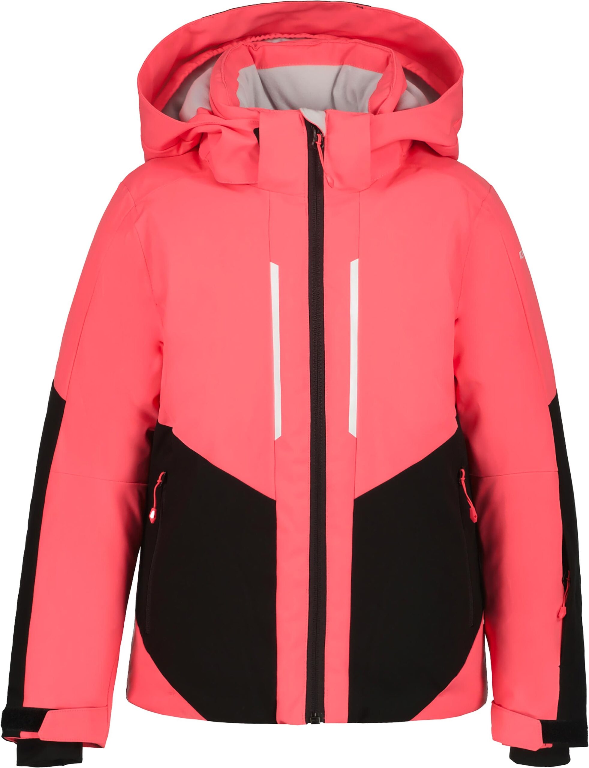 Veste de ski Icepeak Labette Pink enfant : coupe-vent, imper-respirante 2 couches, capuche amovible, jupe pare-neige, isolation chaude pour les journées neige.