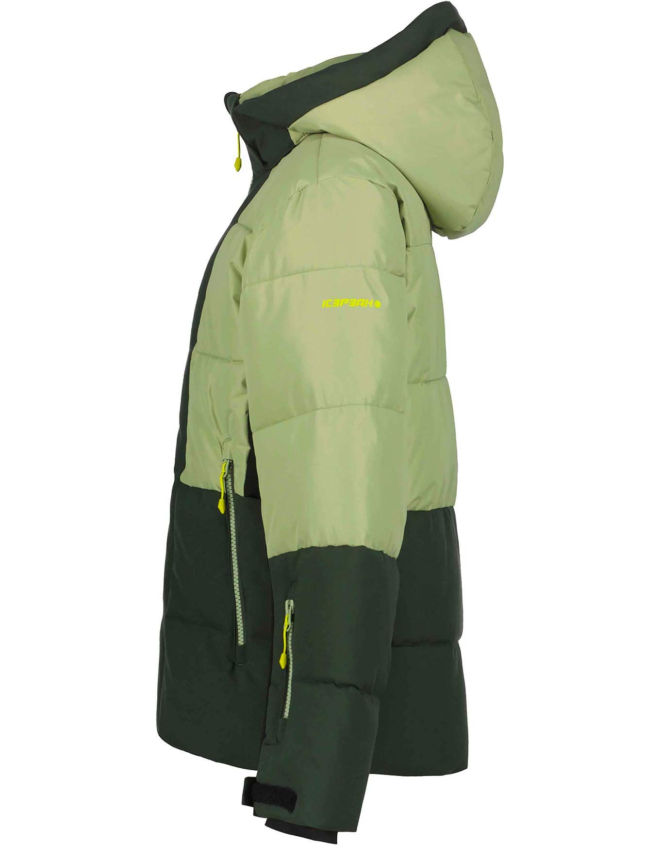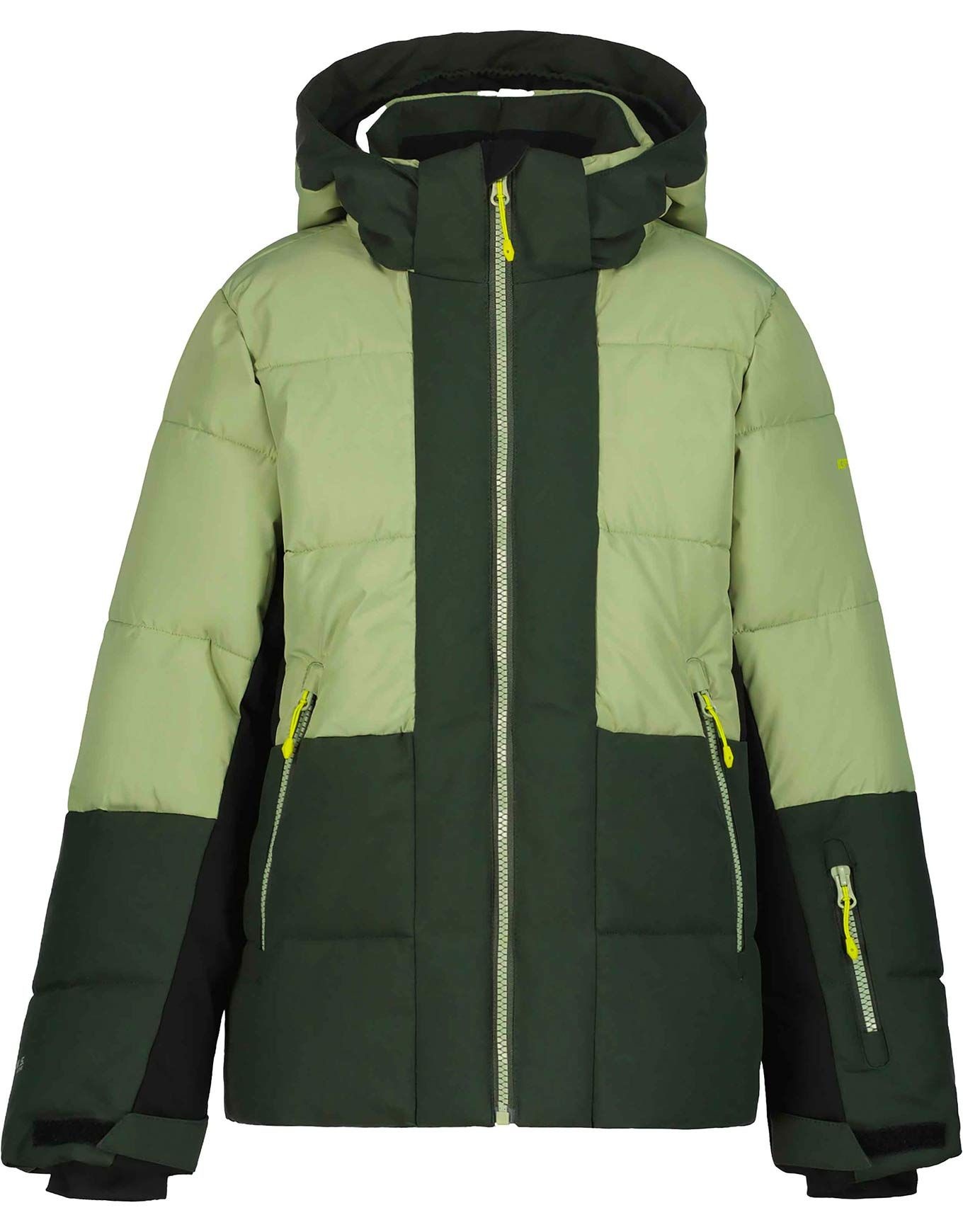 Veste de ski Icepeak Latta Asparagus enfant 2 couches, isolante, imperméable et respirante avec coudes préformés et jupe pare-neige pour rester au sec sur les pistes.
