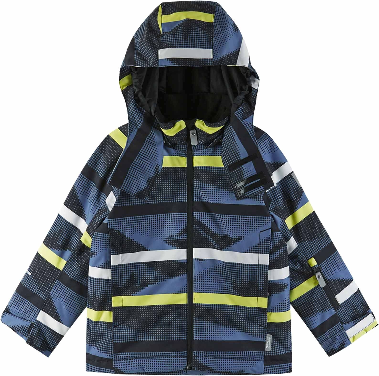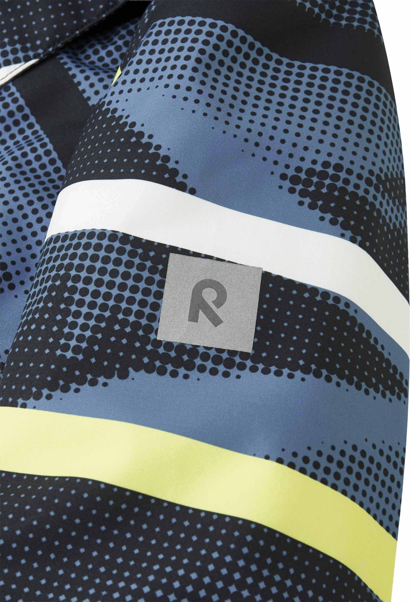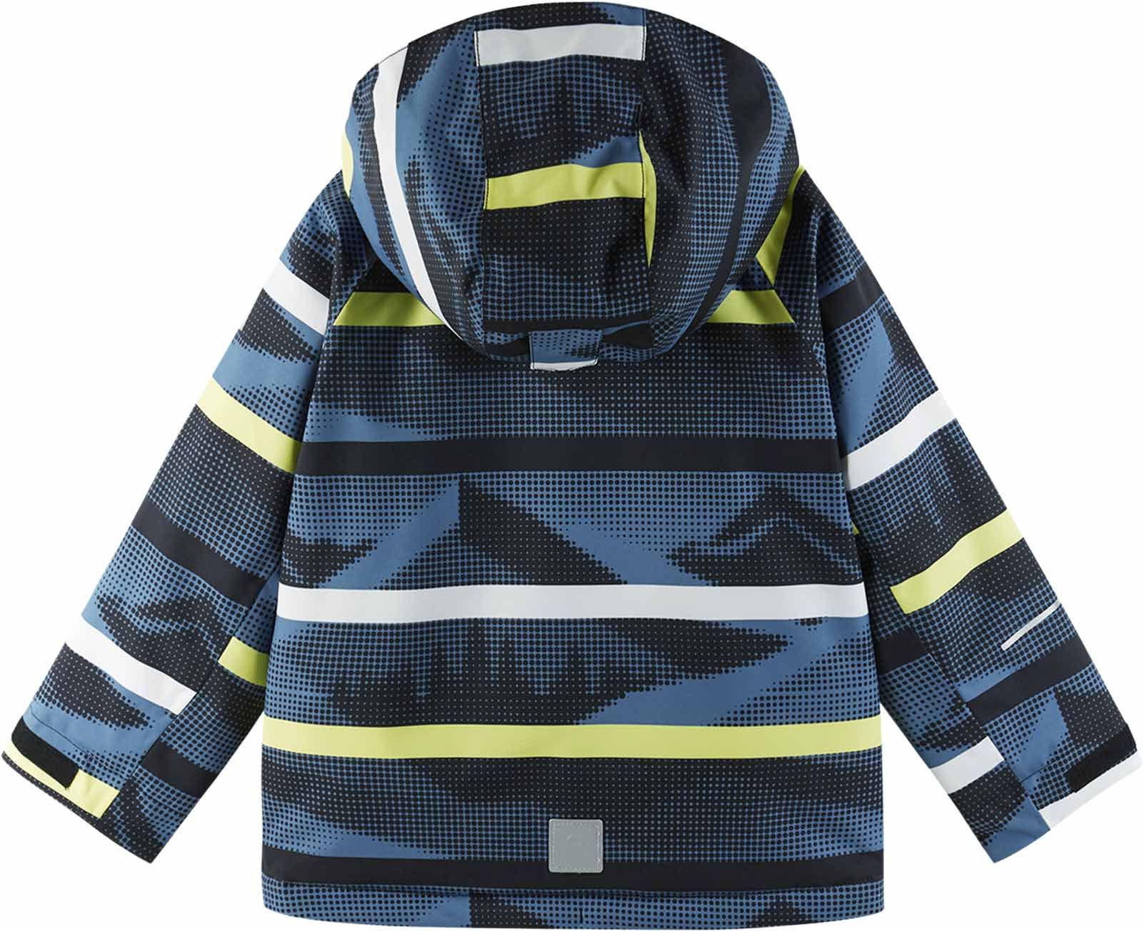Veste d’hiver Reima Palsi Blue Ocean pour enfant, déperlante, imperméable et respirante avec coutures scellées. Isolation polyester recyclé, capuche sécuritaire détachable, jupe pare-neige et poches fonctionnelles.