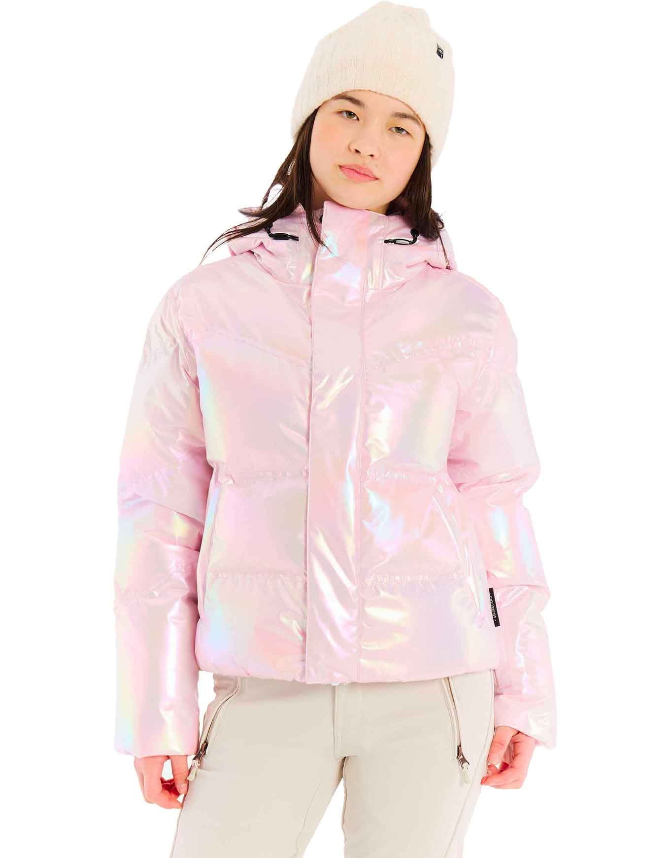 La veste de ski Protest Prtrena Jr Snowjacket Foxy Pink fille allie motif dégradé tendance et revêtement déperlant 10K pour protéger du froid et de la neige tout en assurant liberté de mouvement.
