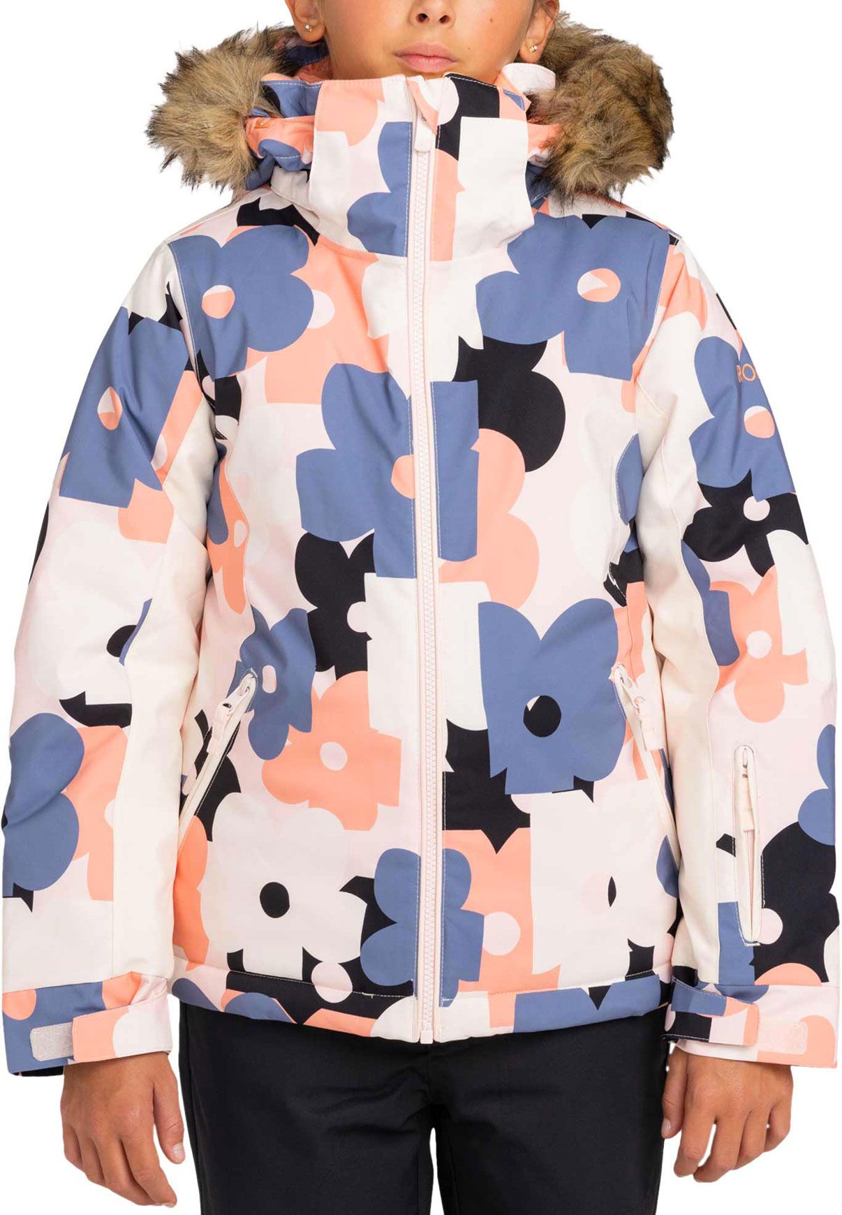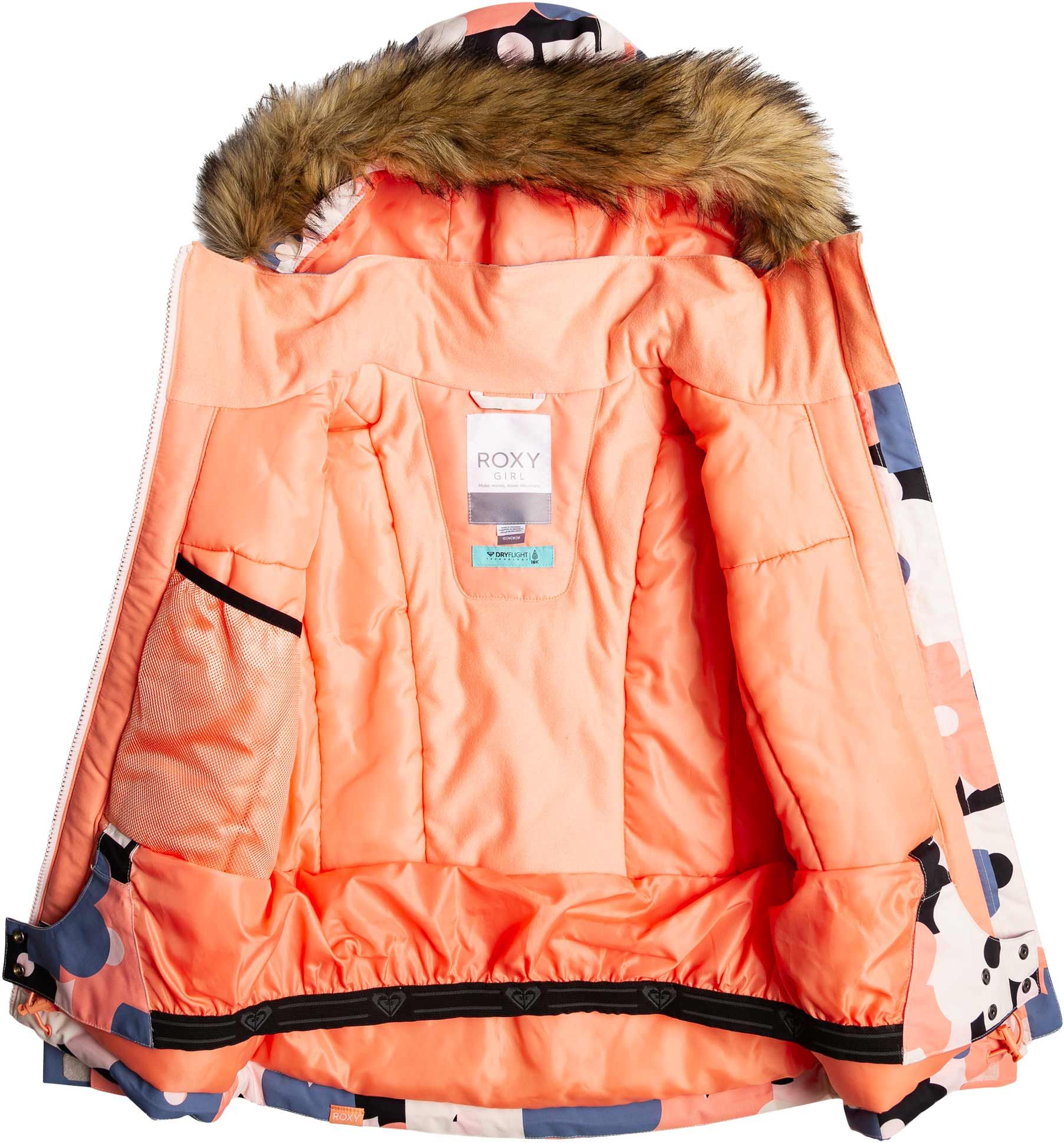 Veste de ski Roxy Pie Girl Jacket Pink Salt Prima fille, imperméable DryFlight®, isolation WarmFlight® x3, coutues étanches, capuche compatible casque, jupe pare-neige.