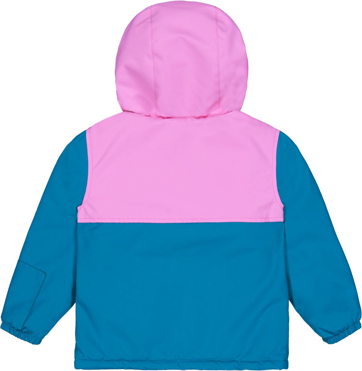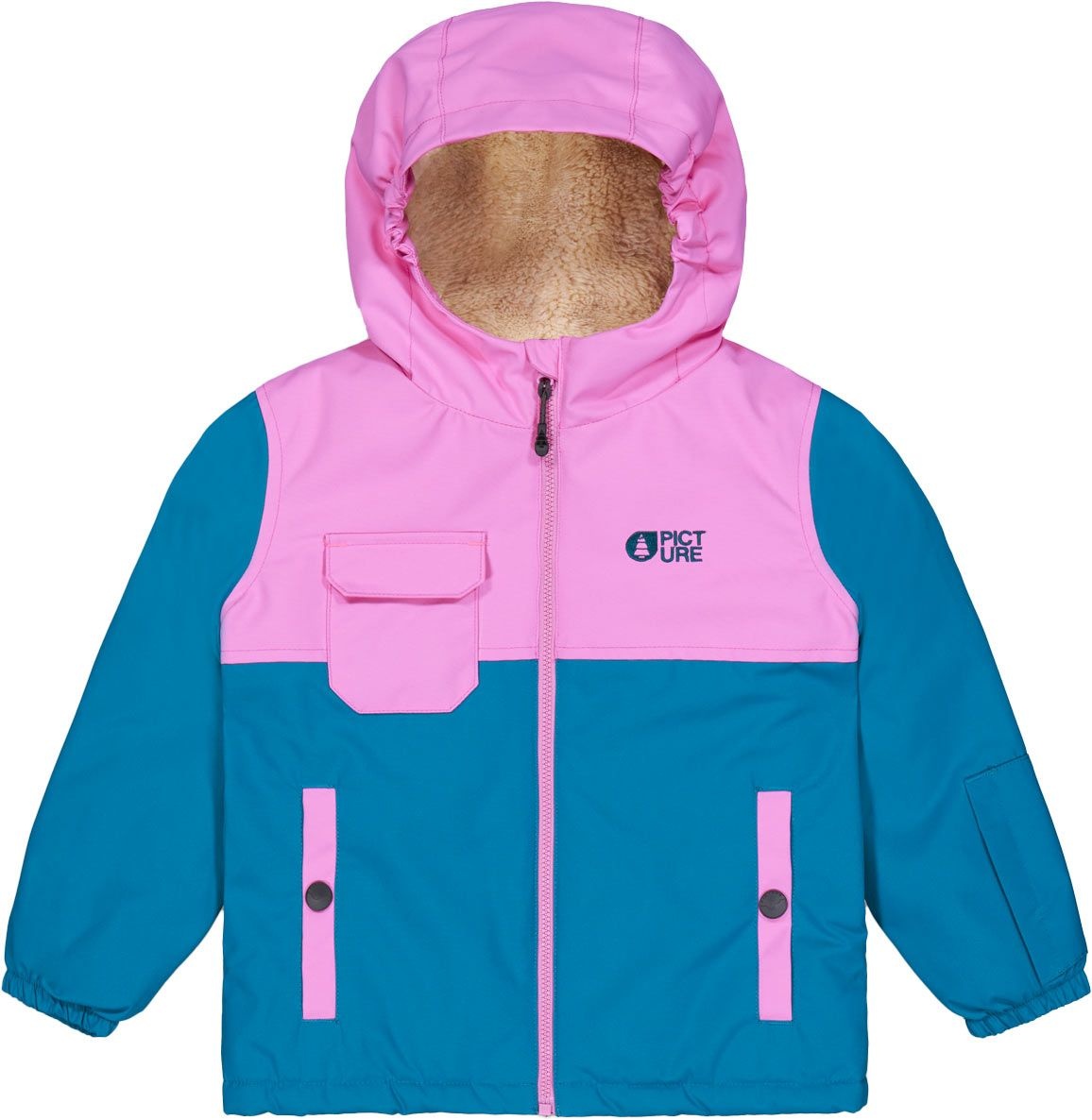 La veste Snowy Super Pink Picture Organic Clothing enfant allie membrane Dryplay 10K/10K, traitement déperlant sans PFC et isolation polyester pour imperméabilité, respirabilité et chaleur hivernale, tandis que le système Grow-with-me assure une coupe évolutive saison après saison.