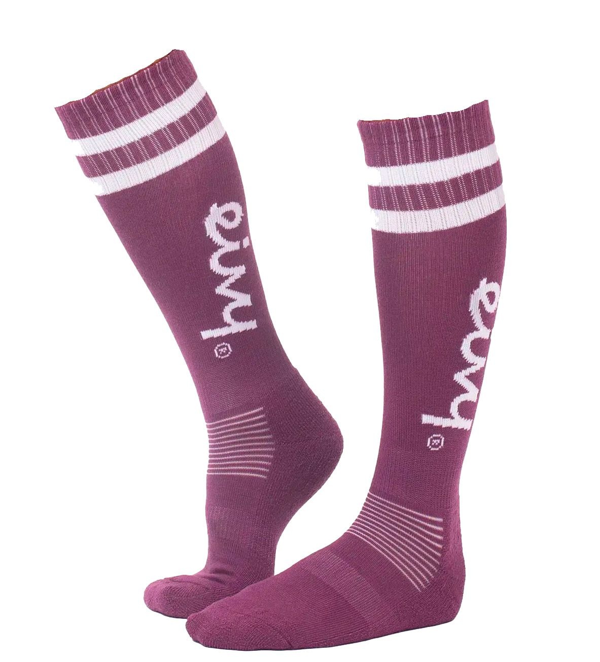 Eivy Cheerleader Wool Socks Pinkgundy : chaussettes de ski femme en laine thermorégulée, semelle plantaire rembourrée, zones flexibles et adhérence côtelée pour confort et maintien sur les pistes.