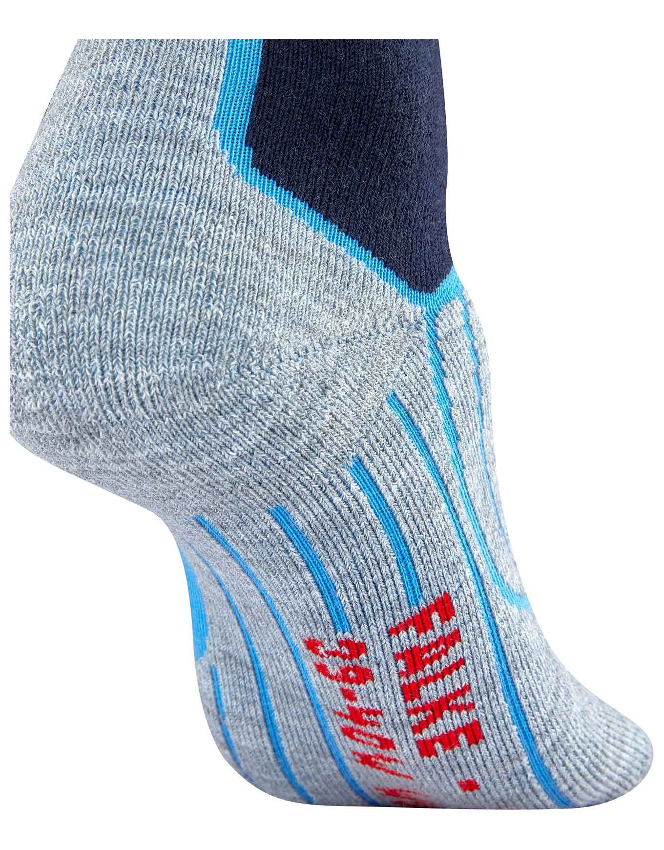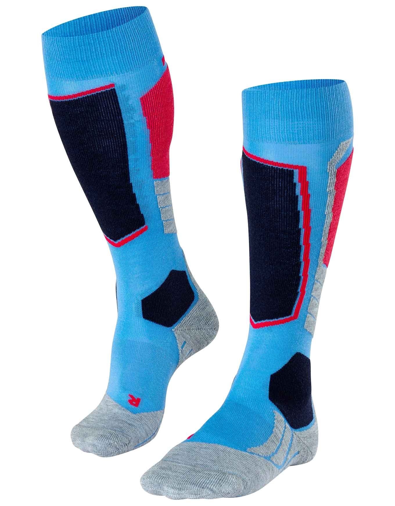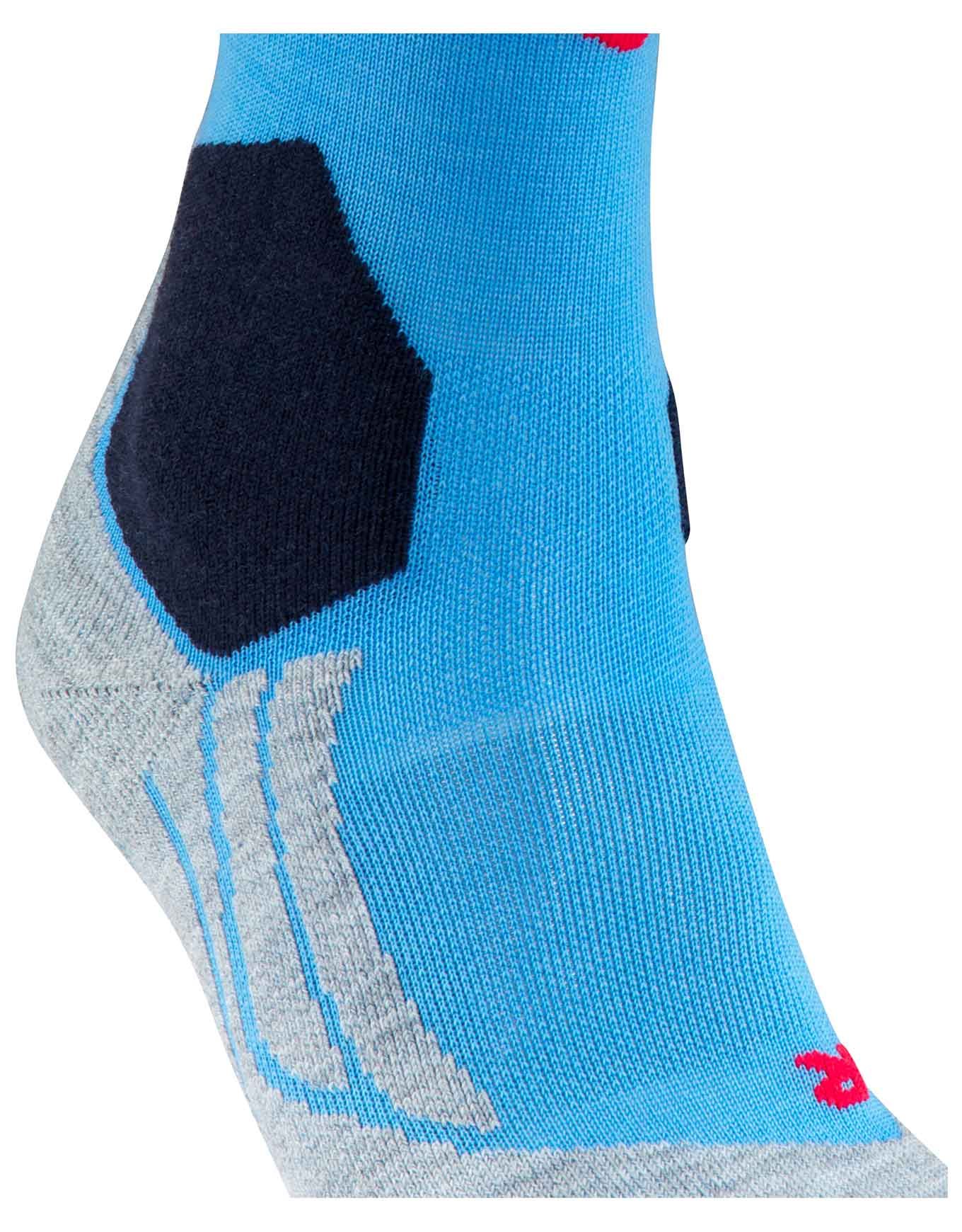 Chaussettes de ski Falke SK2 Intermediate Wool Blue Note femme : zones de renfort, forte proportion laine mérinos, isolation thermique, évacuation rapide de l’humidité et coupe ergonomique pour un confort prolongé sur les pistes.