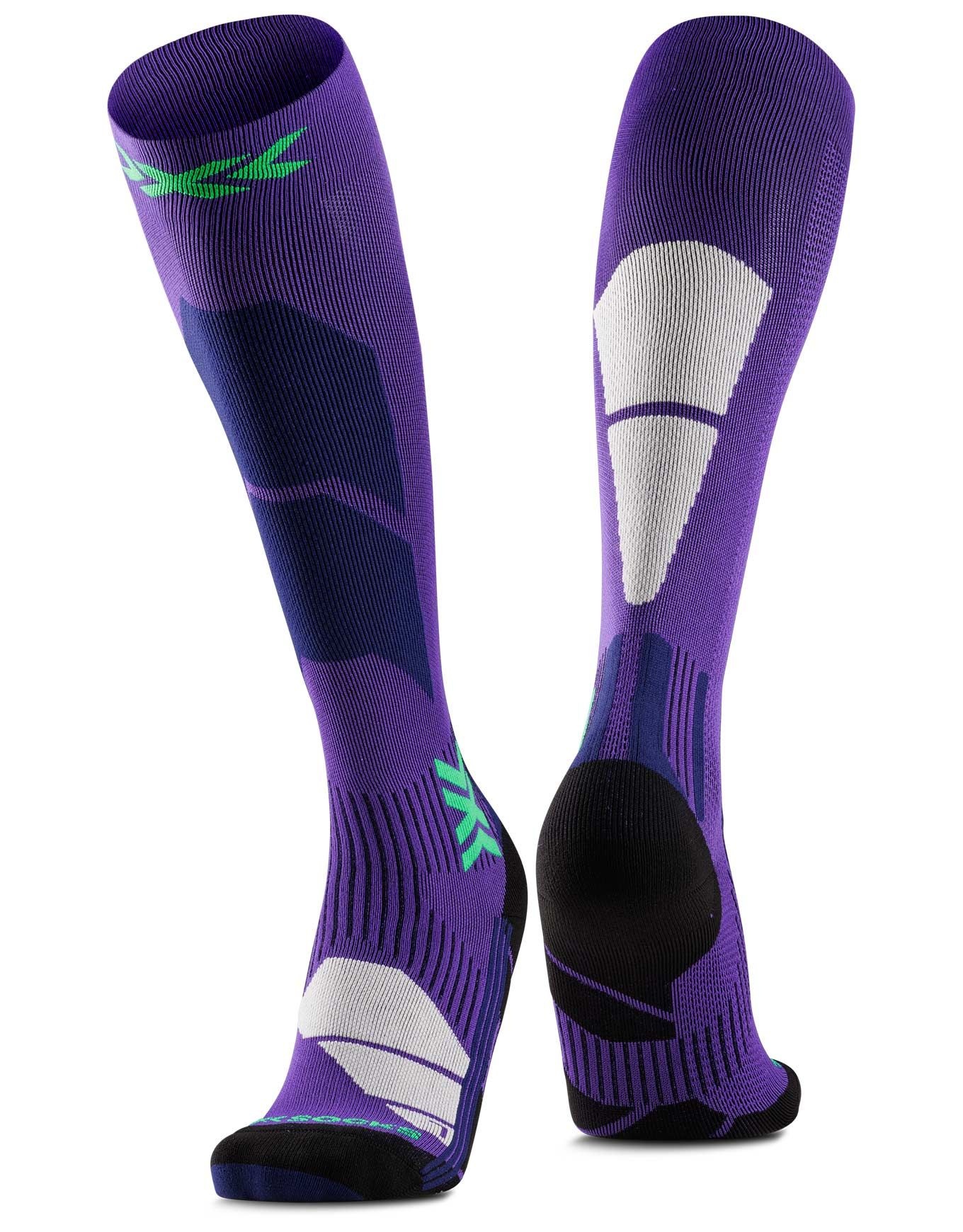 Les chaussettes de ski femme Ski Perform Otc Wmn Deep Purple/Light Sand signées X-Socks allient technicité et confort pour les journées prolongées sur la neige, par tous les temps. Confectionnées dans une maille épaisse et montante, elles enveloppent le pied et la jambe d’un soutien fiable tout en protégeant la peau des frottements. Un renfort spécifique et des coussinets ciblés protègent le tendon d’Achille des irritations. L’ensemble de la chaussette est amorti et une bande Suppronation® stabilise le pied en soutenant les zones les plus sollicitées. Douces et respirantes, elles limitent naturellement la formation des odeurs. Le canal AirConditioning Channel® garantit une ventilation active, une thermorégulation optimale et un pied durablement au sec. Découvrir les catégories associées Chaussettes de ski femme Vêtements techniques femme