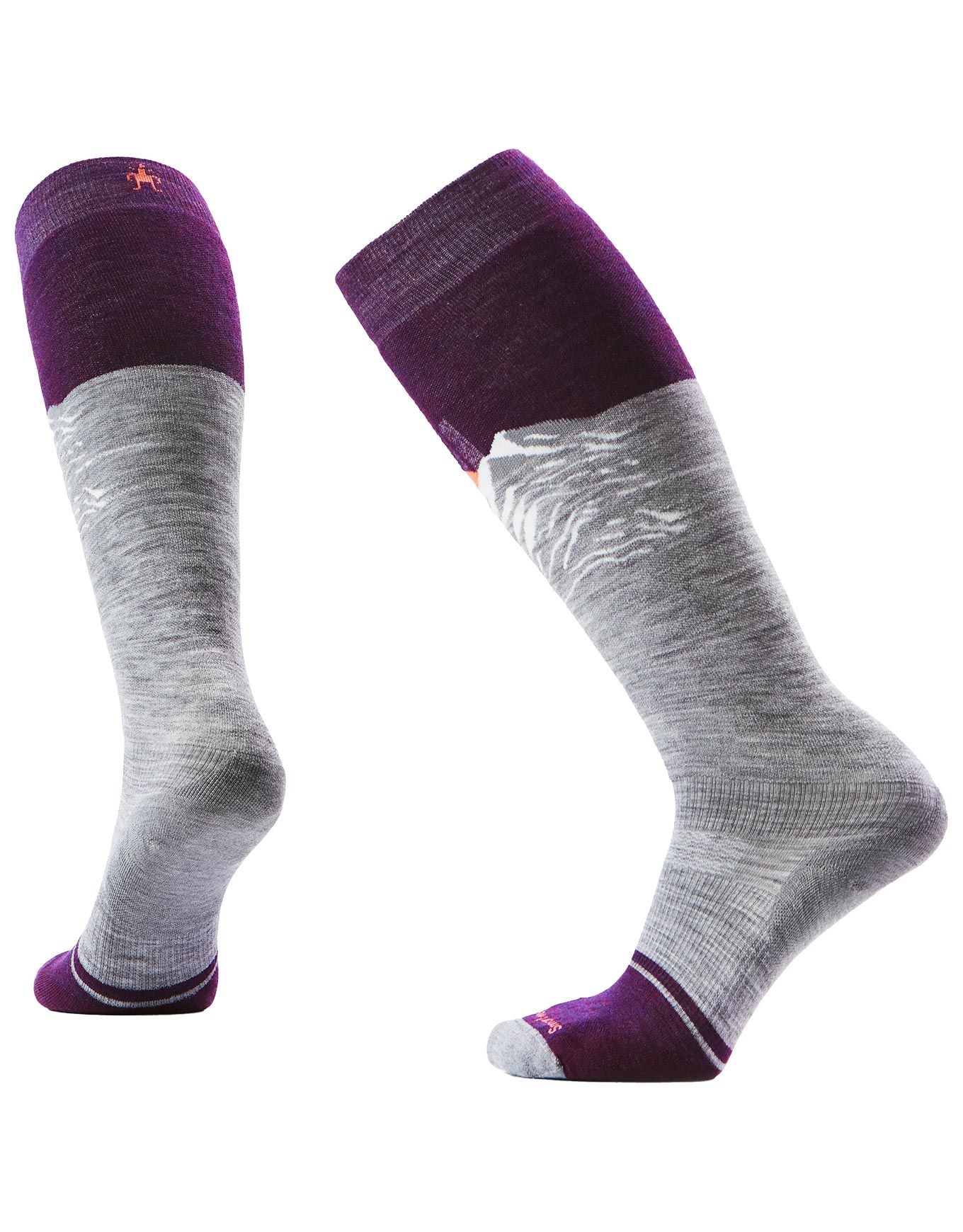 Chaussette de snowboard Smartwool Snowboard Targeted Cushion Valley Sunset OTC Light Gray femme en laine mérinos respirante, talon fin et coupe ajustée, technologies 4 Degree™ Elite Fit et Indestructawool™ pour maintien et durabilité.