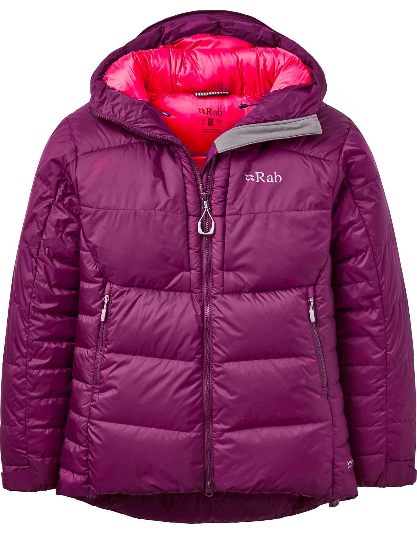 La doudoune ultra-chaude Positron Pro Hoody Mulberry pour femme de Rab est garnie de duvet d’oie européen 800 cuin et offre une protection totale contre le froid grâce à sa construction à caissons intégrale.