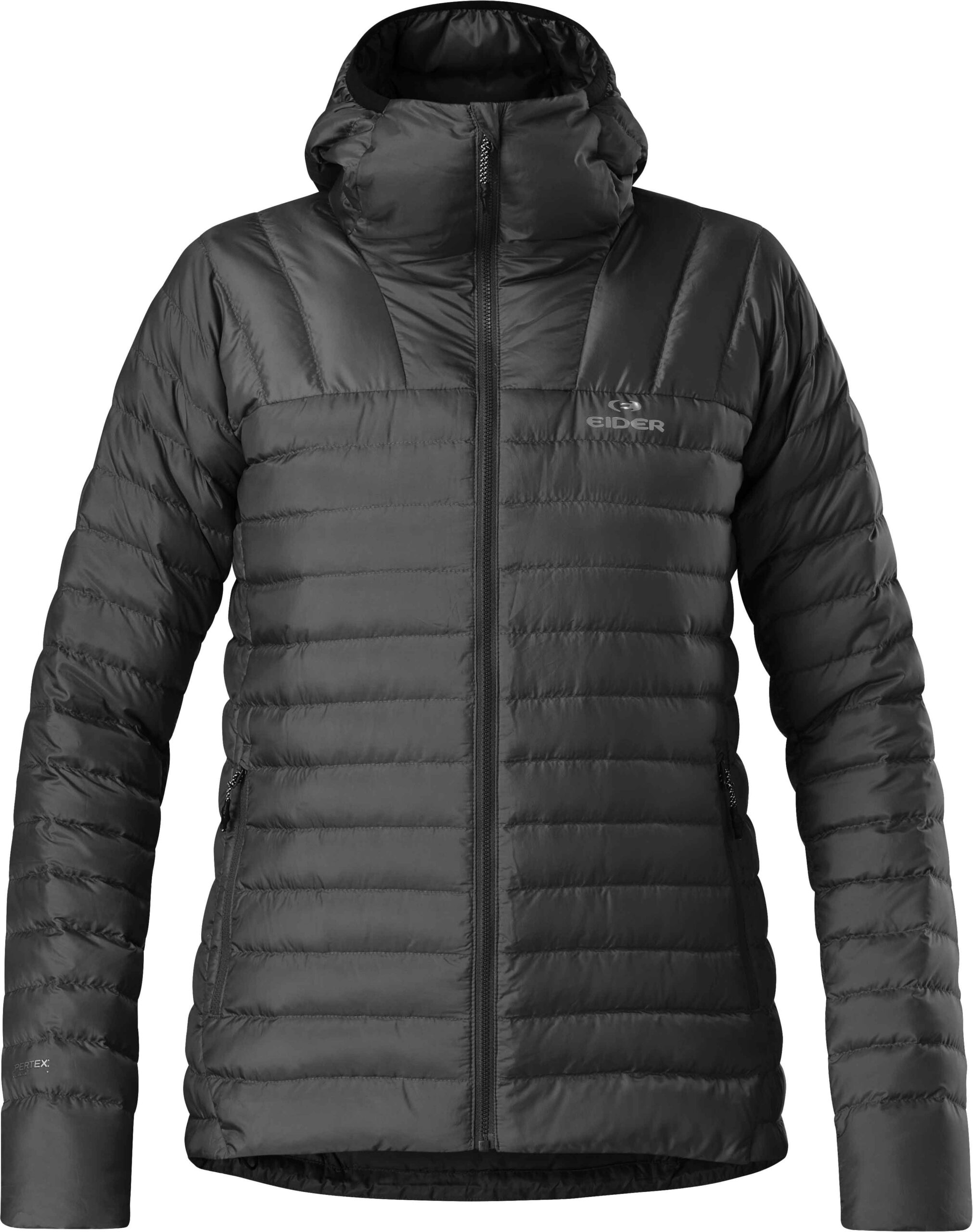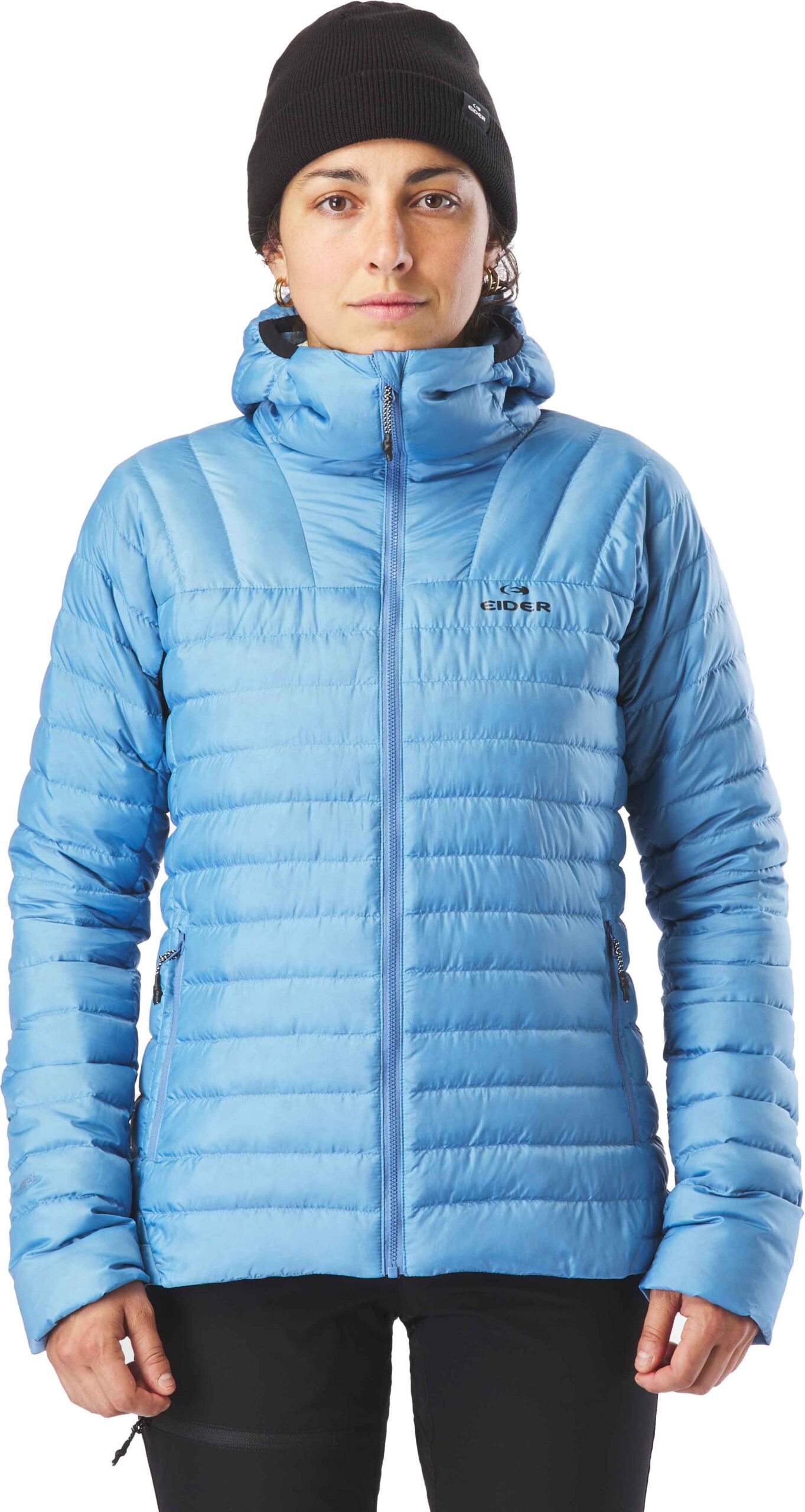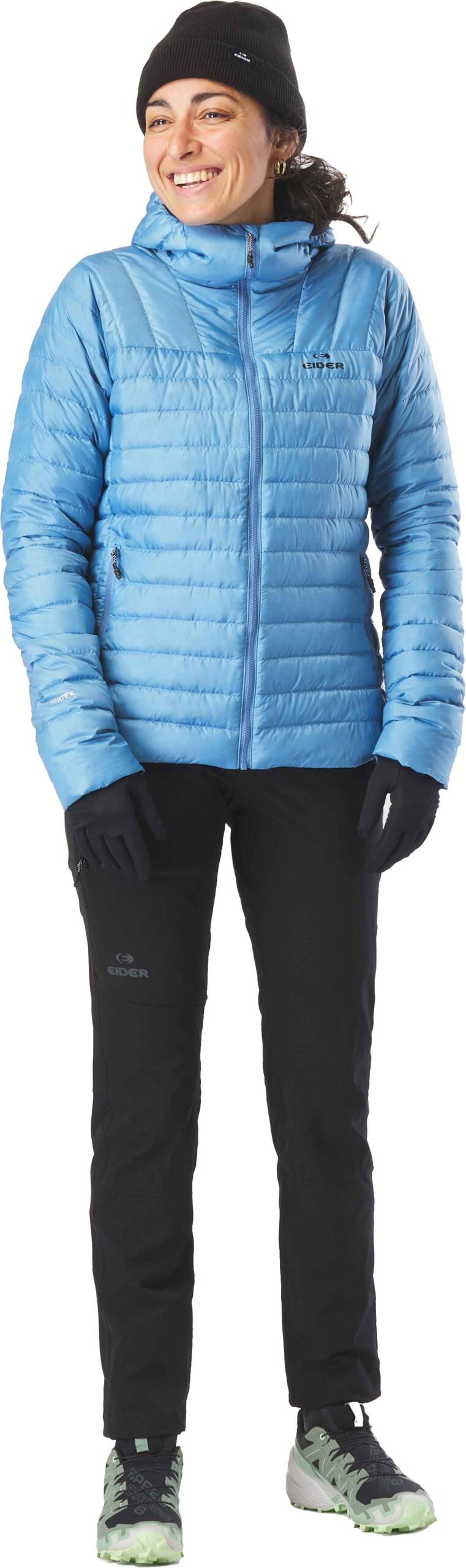Doudoune technique EIDER Buet Micro Down Hood Jkt femme, isolation duvet/plume dans tissu Pertex® Quantum léger et compressible, traitement DWR, lycra sous les bras pour liberté de mouvement, capuche et poignets élastiqués.