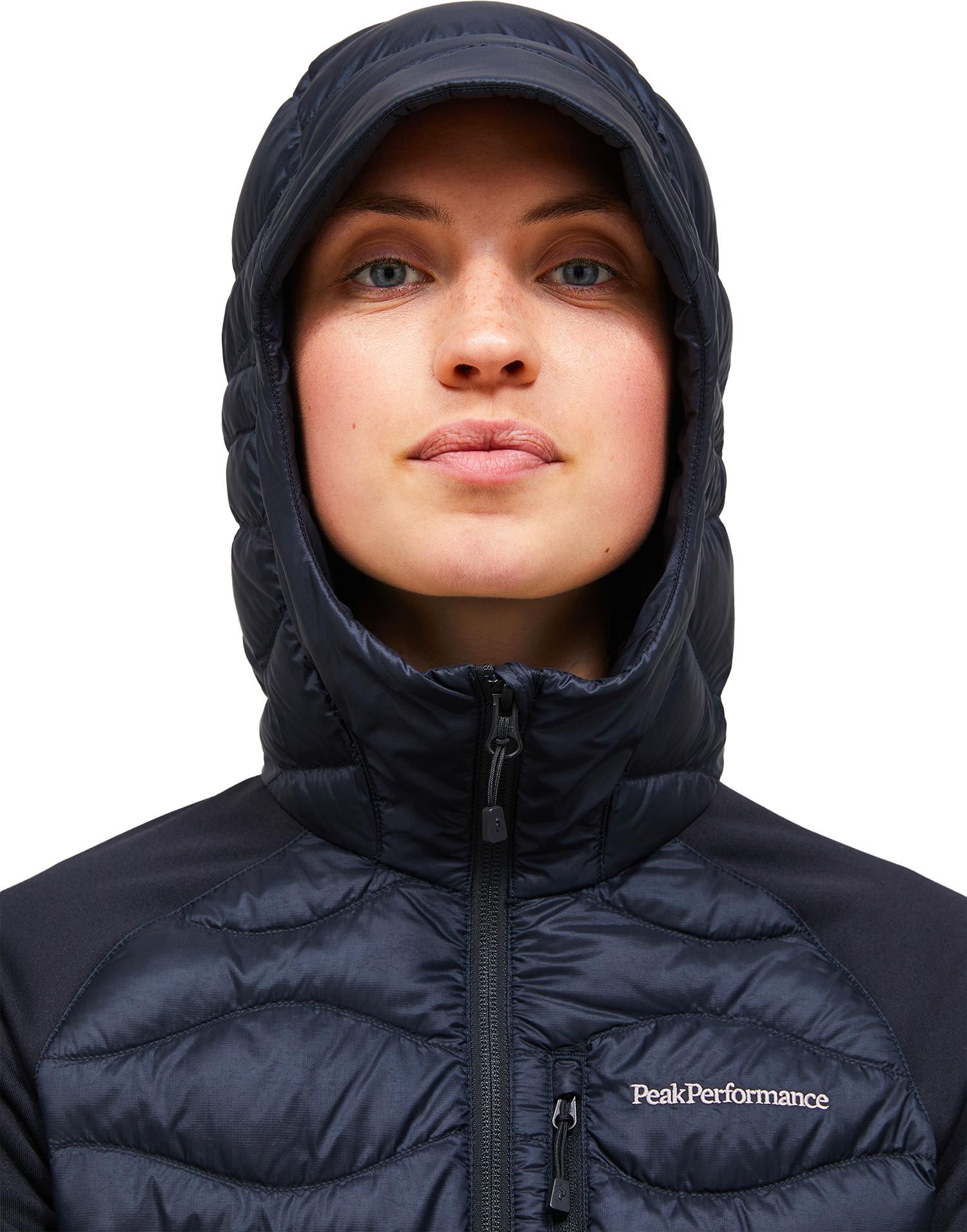 Doudoune Peak Performance Helium Hybrid Down Hood Jacket femme : chaude, légère et compressible, en duvet de canard avec tissu extérieur coupe-vent déperlant, poches mains et fermeture YKK résistante à l’eau.