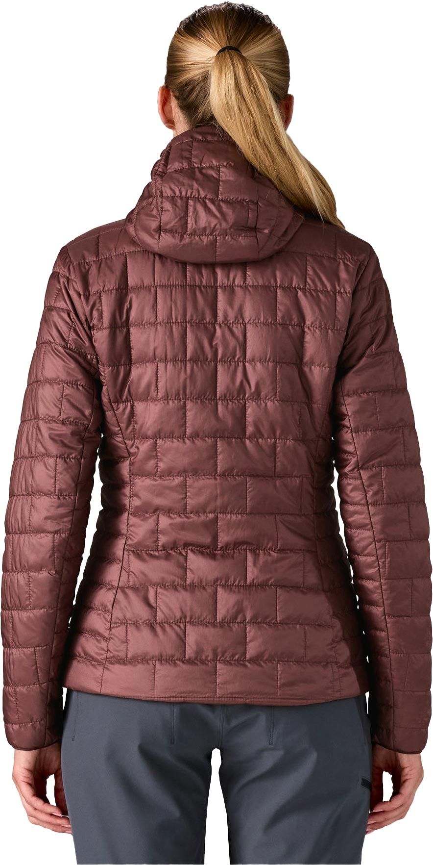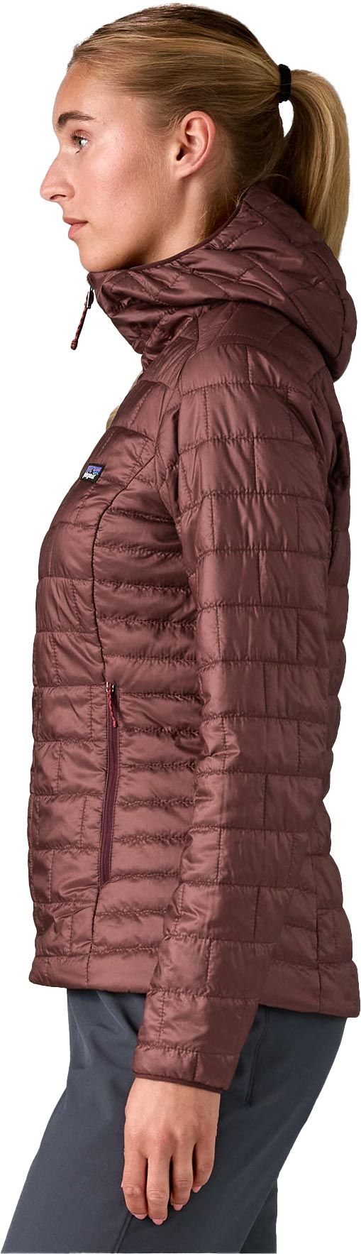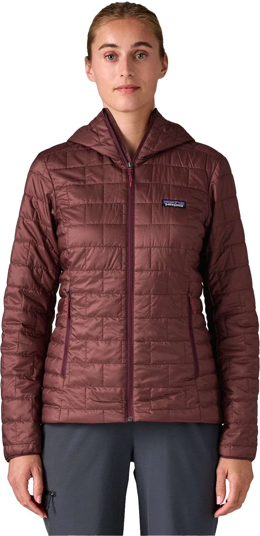 La doudoune Patagonia Nano Puff Hoody Dark Ruby femme allie isolation PrimaLoft® Gold Eco recyclée, coupe-vent et déperlance dans un duvet synthétique compressible qui garde la chaleur même humide.