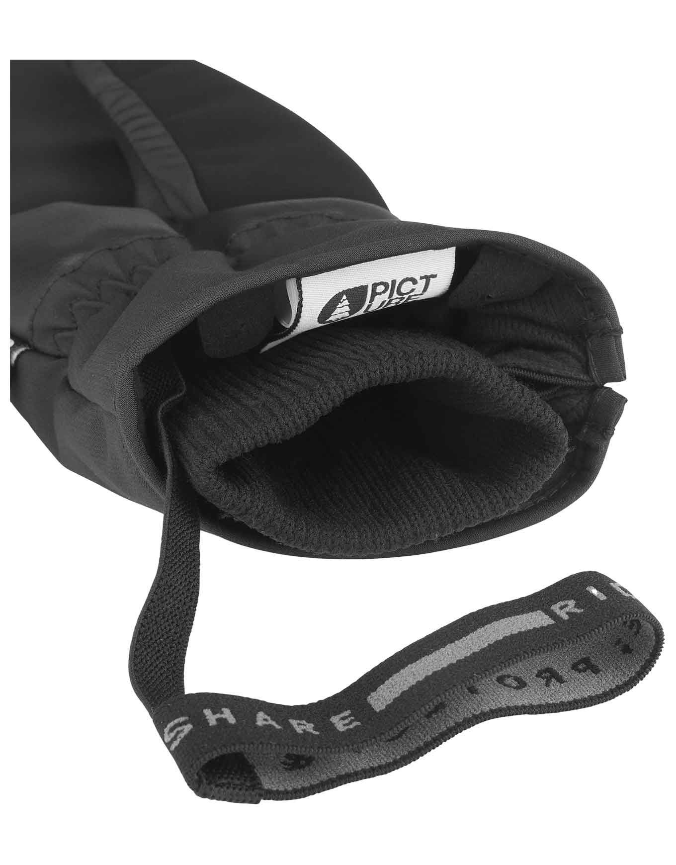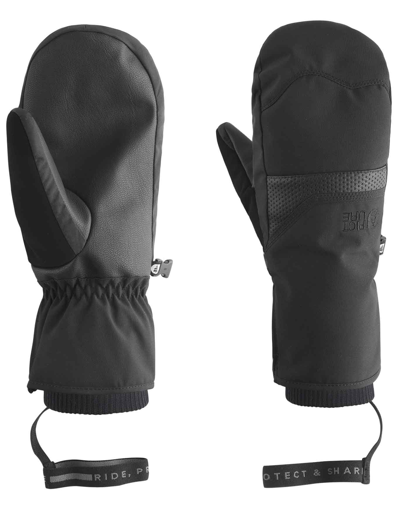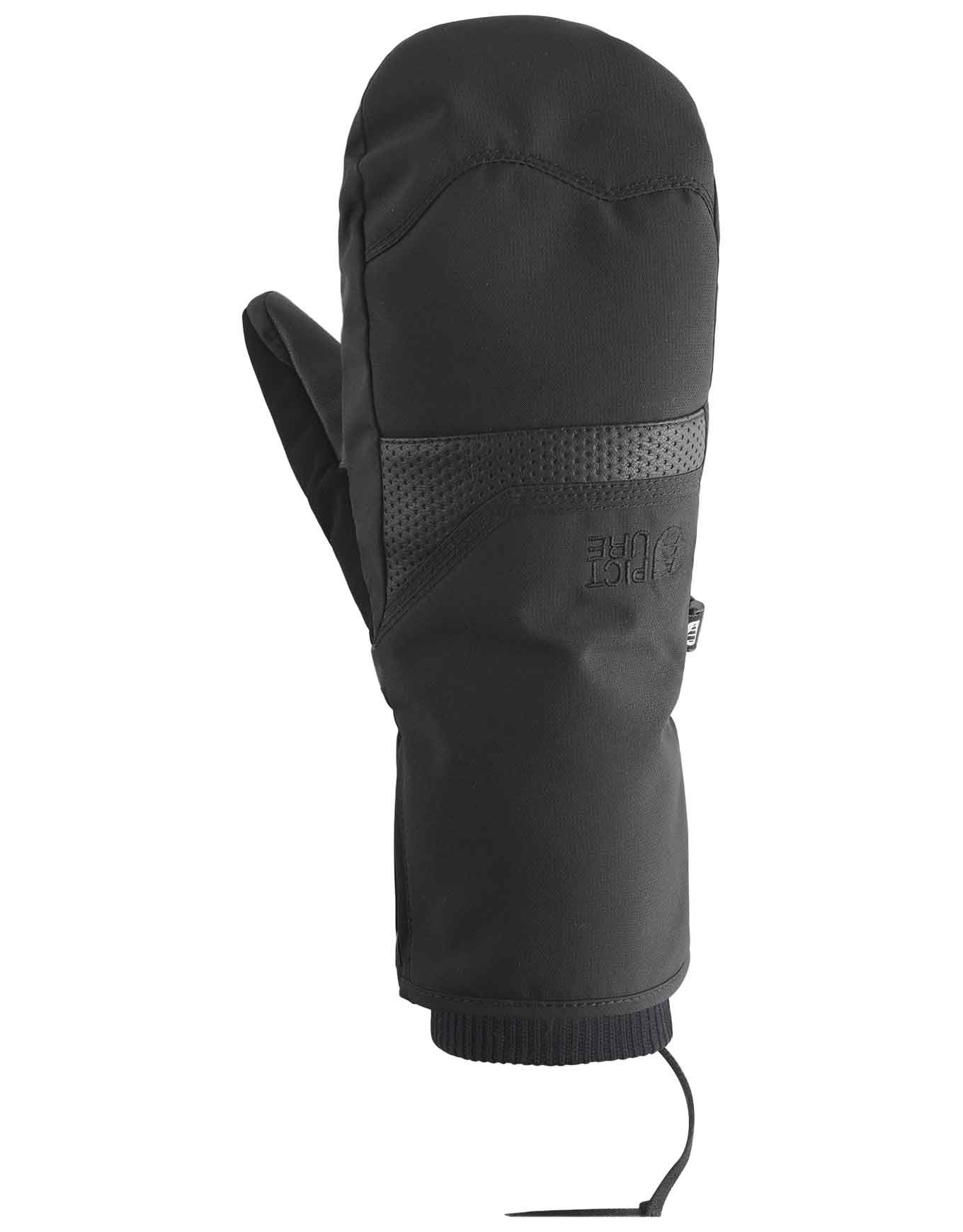 Moufles Kali Black Picture Organic Clothing : isolation Thermal STD, membrane Dryplay 10K/10K, doublure polaire et cuir de paume pour chaleur et dextérité au ski.