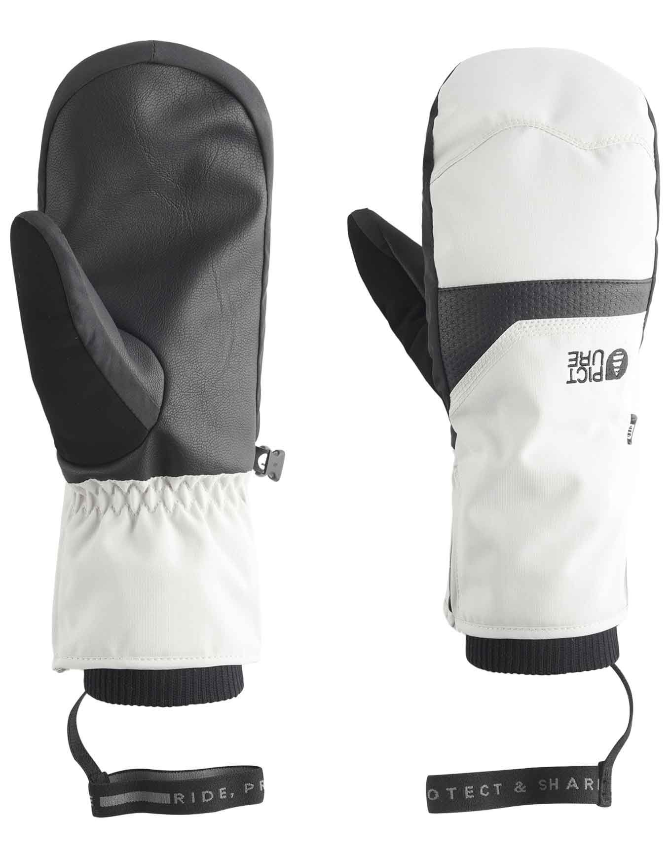 Moufles Picture Organic Clothing Kali Vapor Grey femme : membrane Dryplay 10K/10K, isolation Thermal STD, doublure polaire, cuir à la paume, traitement Teflon Ecoelite™ sans PFC, poignets côtelés fermables.