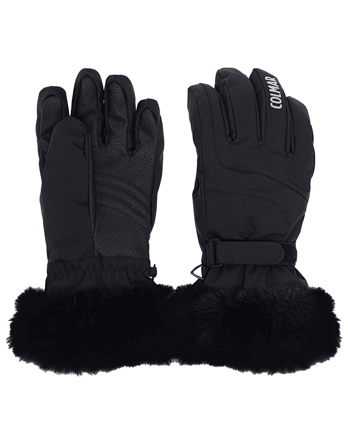 Gant de ski Colmar Ladies Gloves Fur Black pour femme en nylon irisé, membrane respirante imperméable, paume cuir synthétique adhérent, sangle réglable.