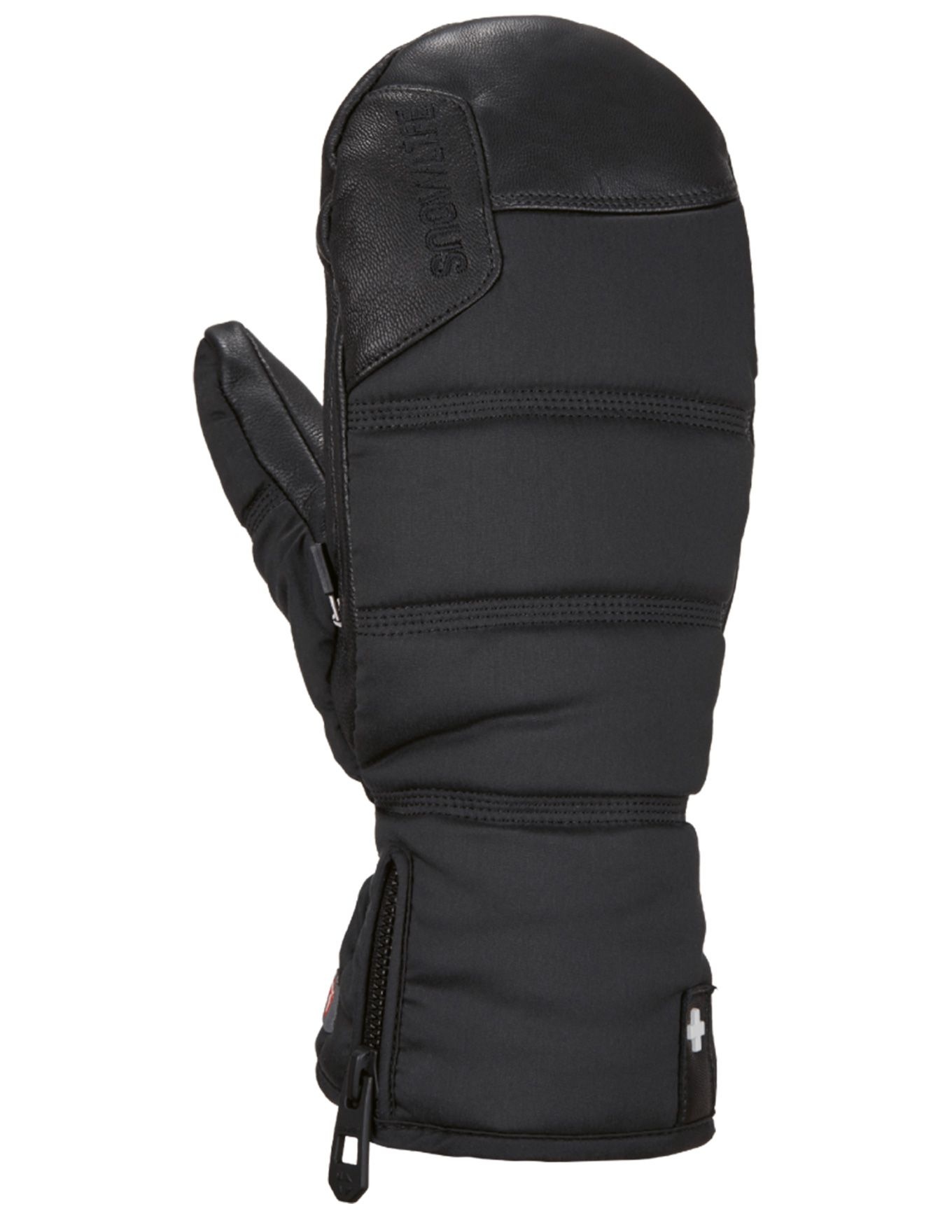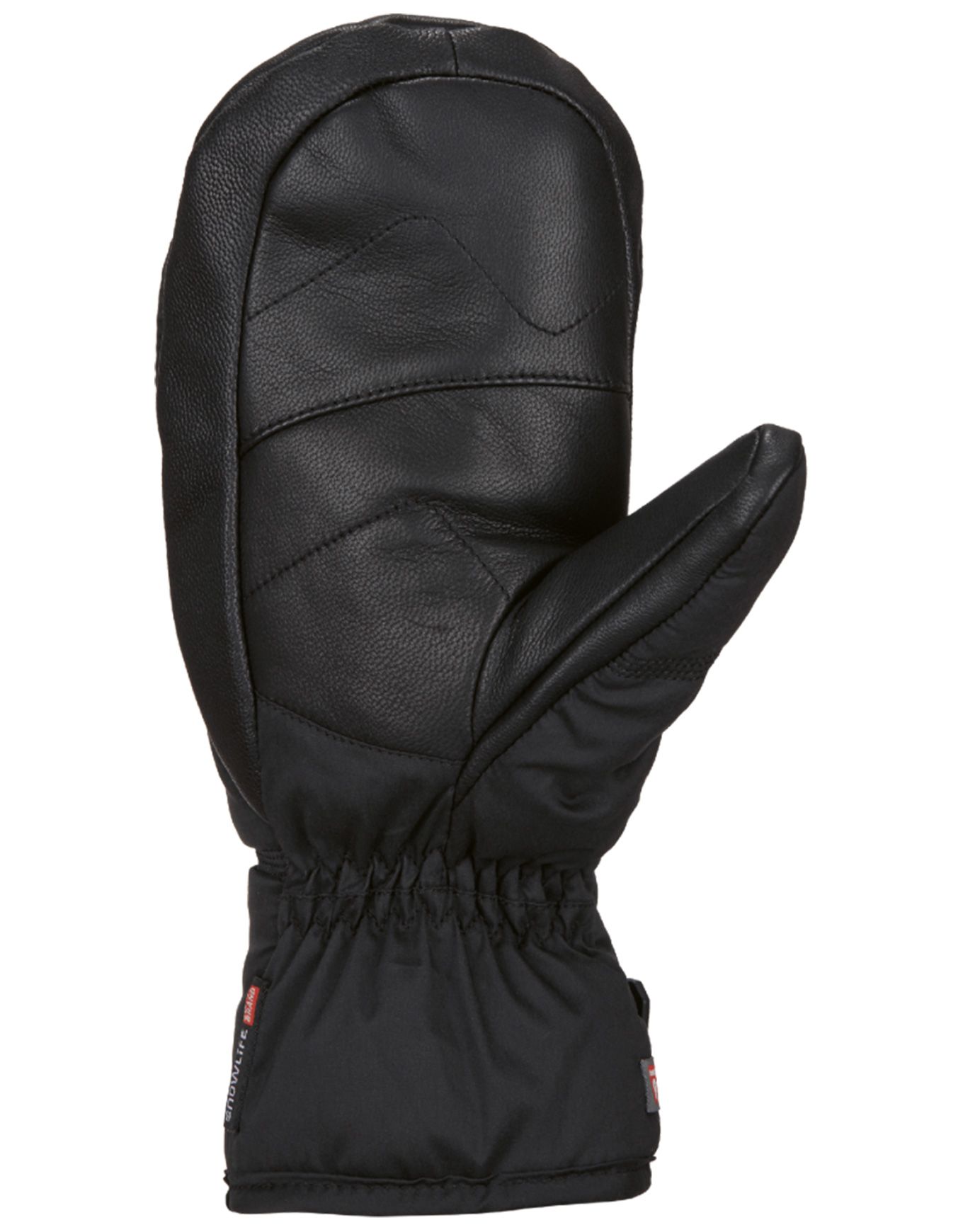 Moufles chauffantes Snowlife Lady Super Soft Heated Mitten Black en cuir véritable et fibres déperlantes, dotées de la technologie Heat tech, PrimaLoft® Gold recyclé et coussins chauffants interchangeables pour un confort thermique ajusté au ski féminin.