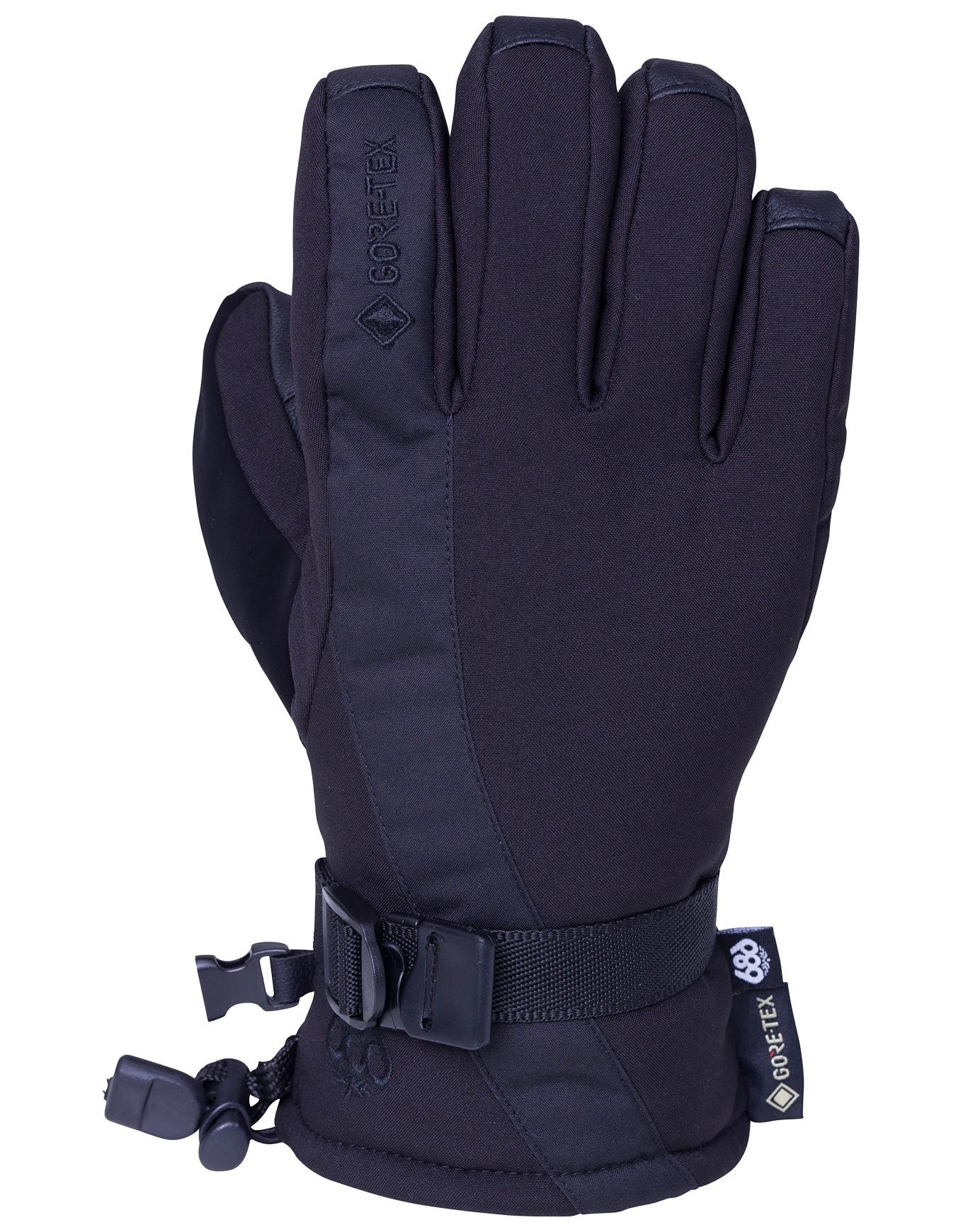 Gants de ski femme 686 Gore-Tex Linear Glove Black : membrane GORE-TEX imperméable-respirante, isolation thermique en fibres de verre, paume DuraGrain™ résistante, tissu Movement Fit™ stretch et doigt SoundTouch™ compatible écran tactile.