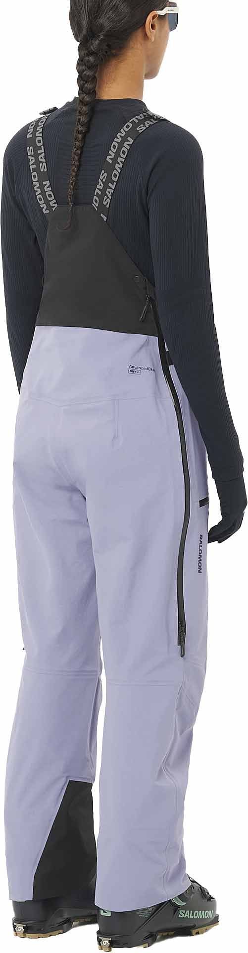 Salopette de ski femme Salomon Absolute Bib Blue Granite/Deep Black, imperméable et respirante avec membrane 3 couches, isolation thermique, technologie AdvancedSkin Dry+ et construction Motion Fit pour liberté de mouvement.