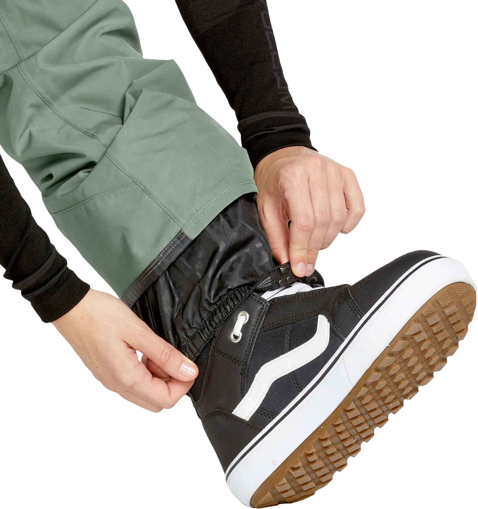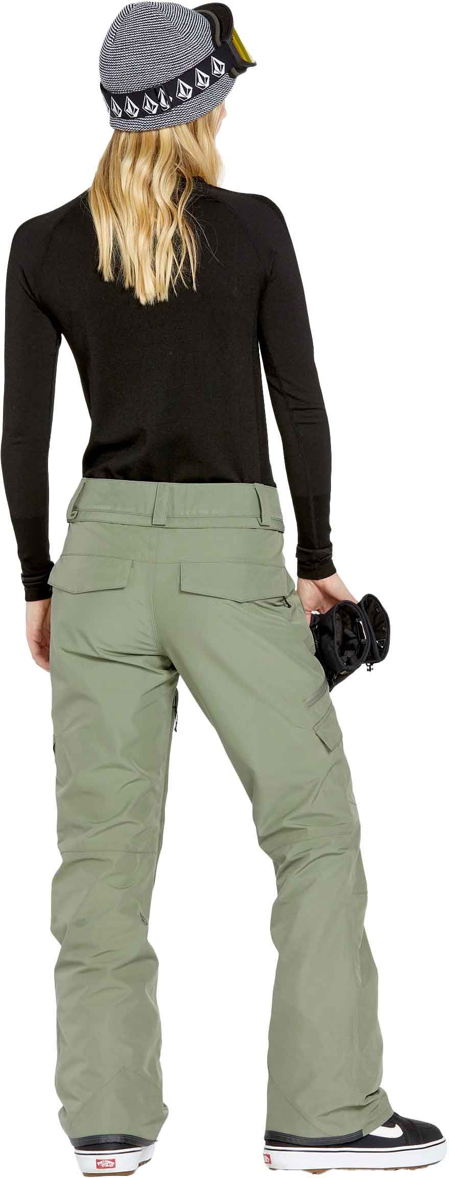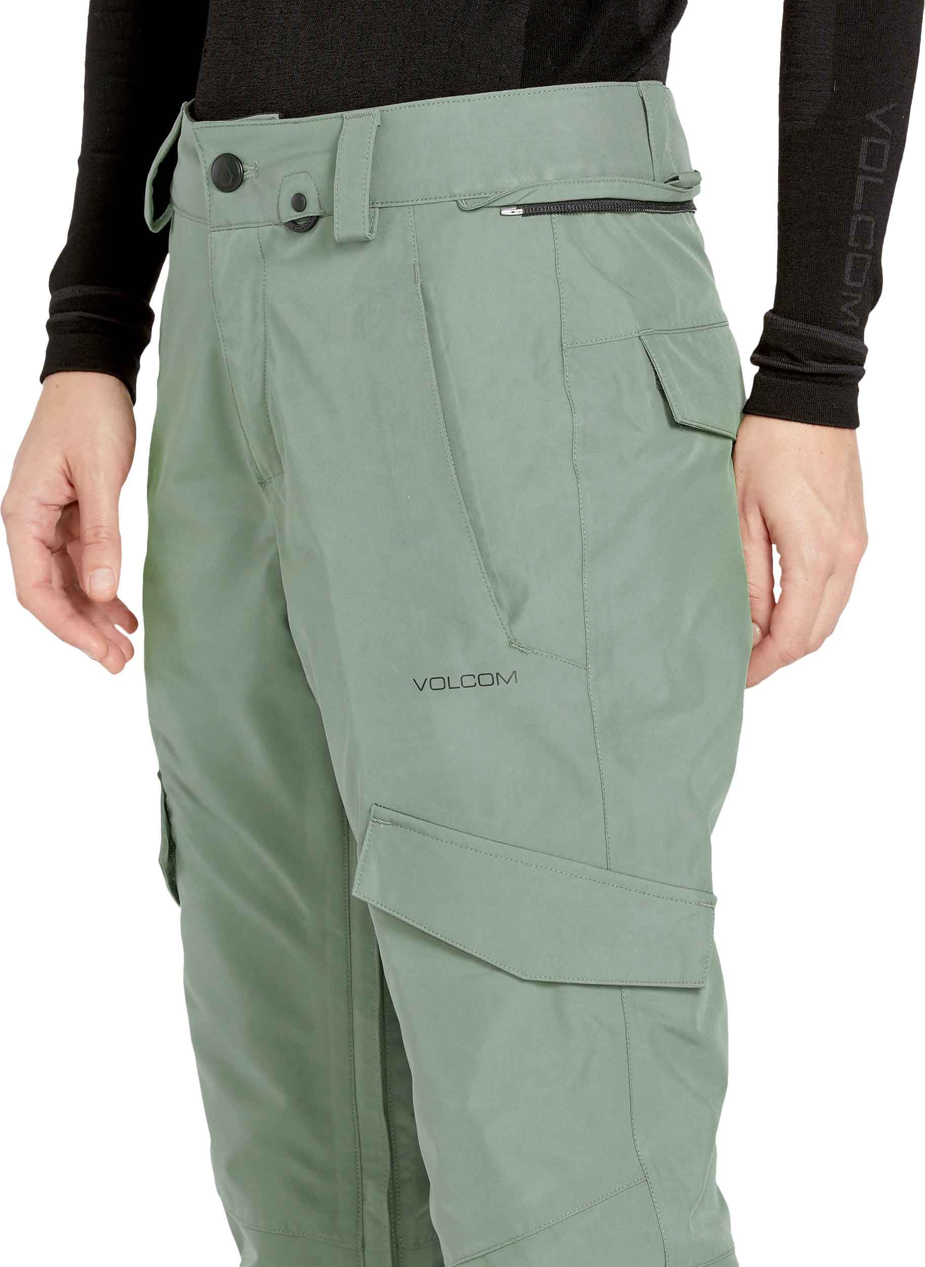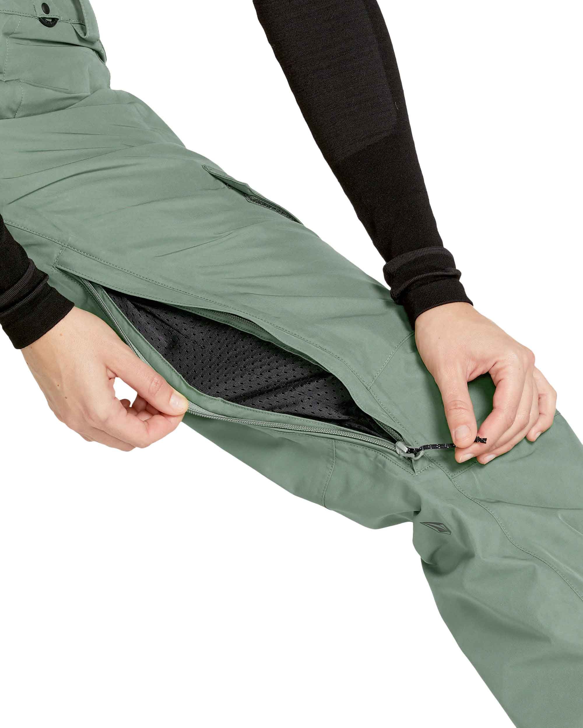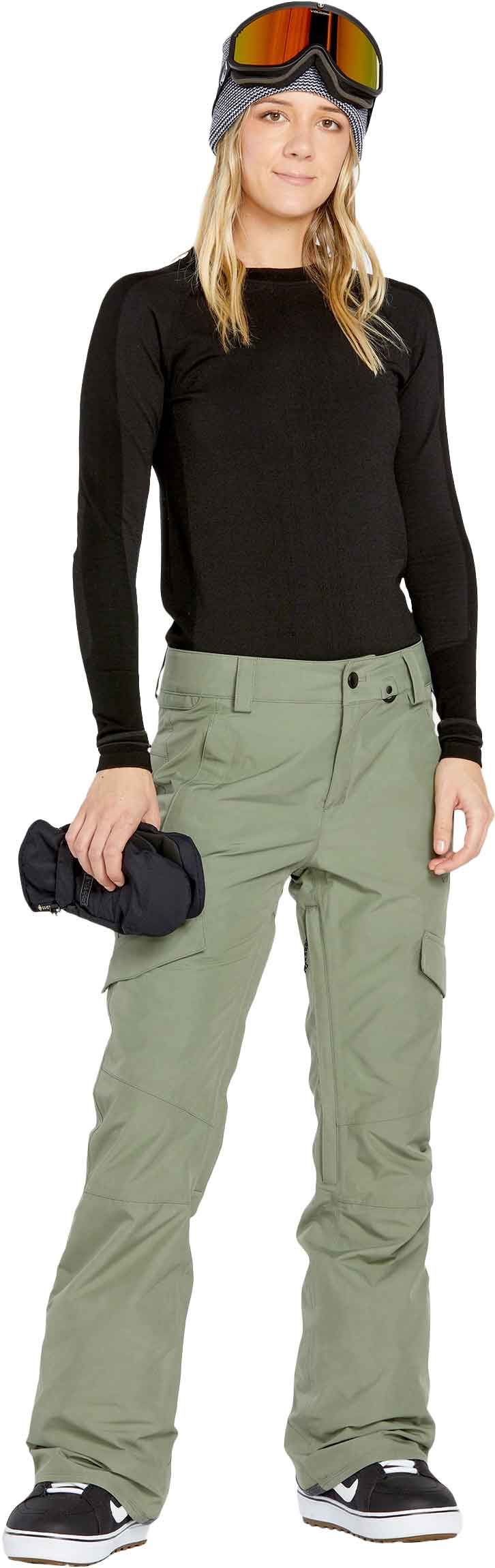 Pantalon de snowboard Volcom Aston Gore-Tex femme Linchen Green, coupe slim, membrane GORE-TEX imperméable et respirante. Aérations mesh, ourlets renforcés, guêtres, Zip Tech®, nombreuses poches.