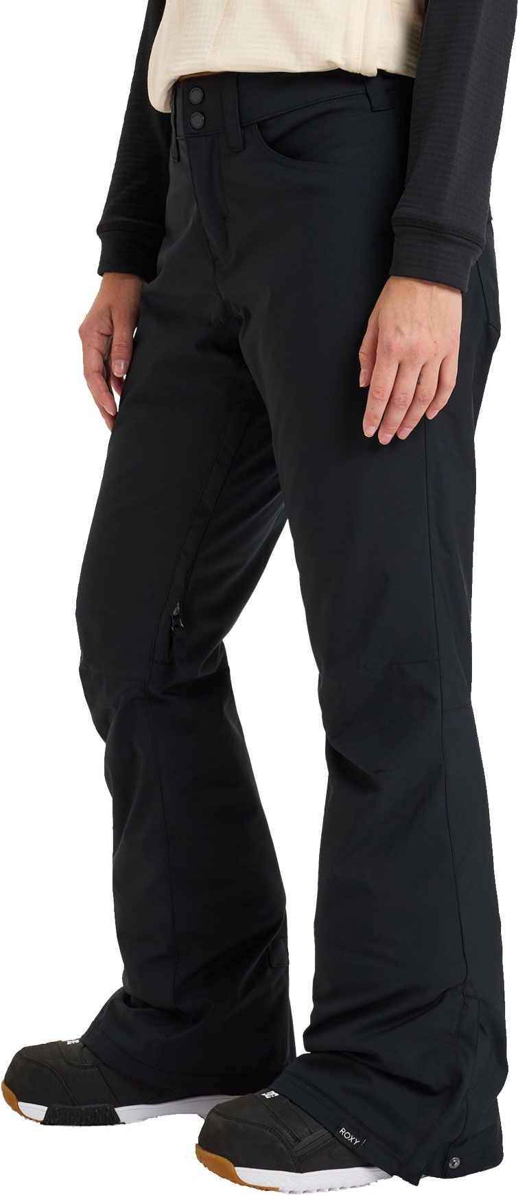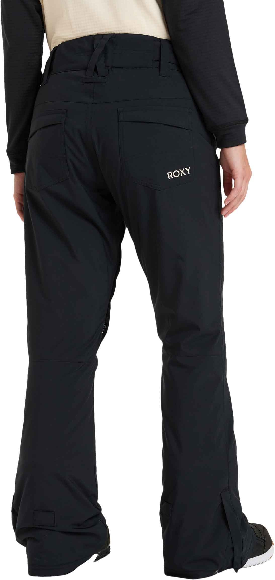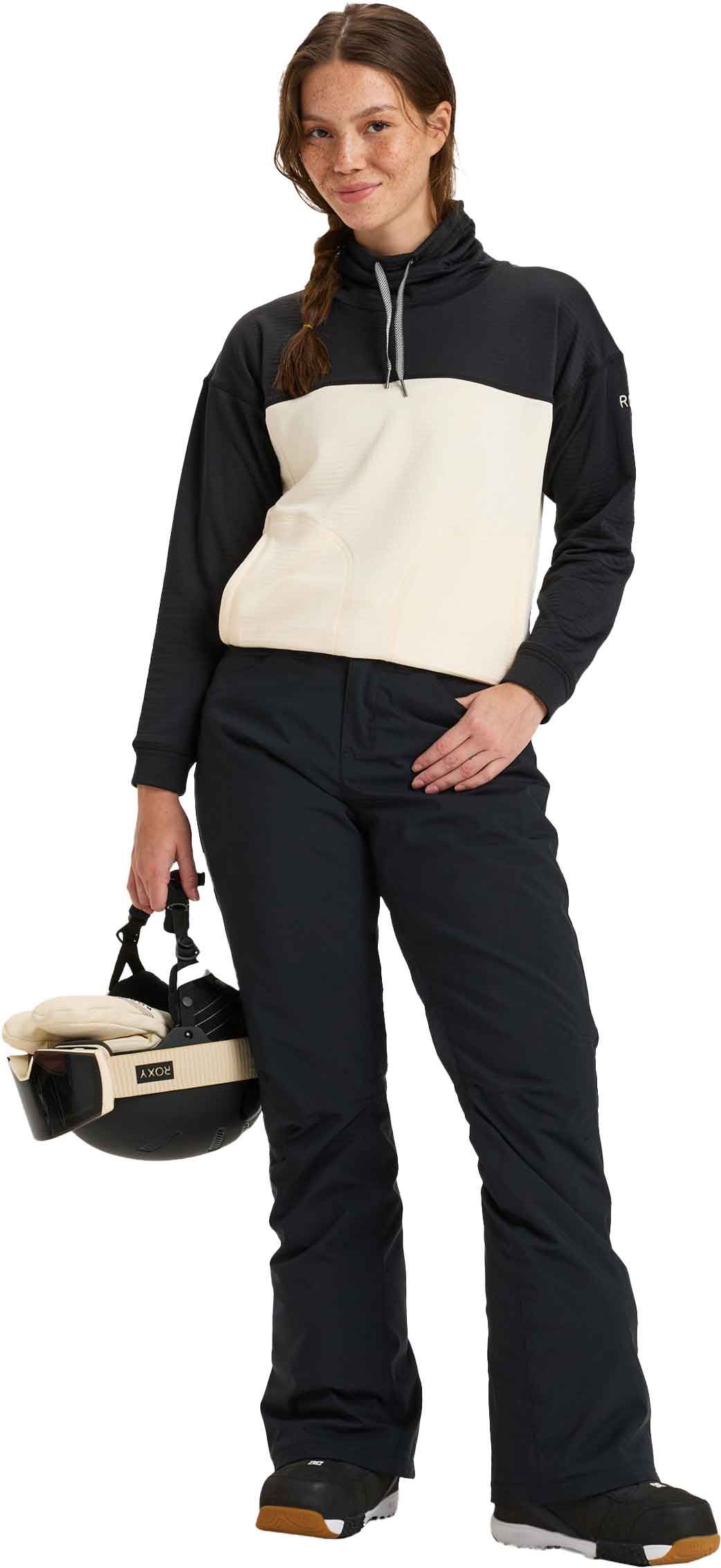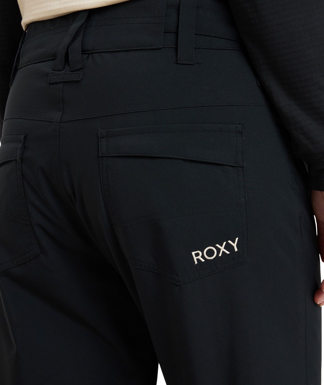 Pantalon de ski Roxy Backyard True Black femme, imperméable et respirant avec membrane DryFlight®, isolation WarmFlight®, taille réglable et guêtres pare-neige pour une journée au sec et au chaud sur les pistes.