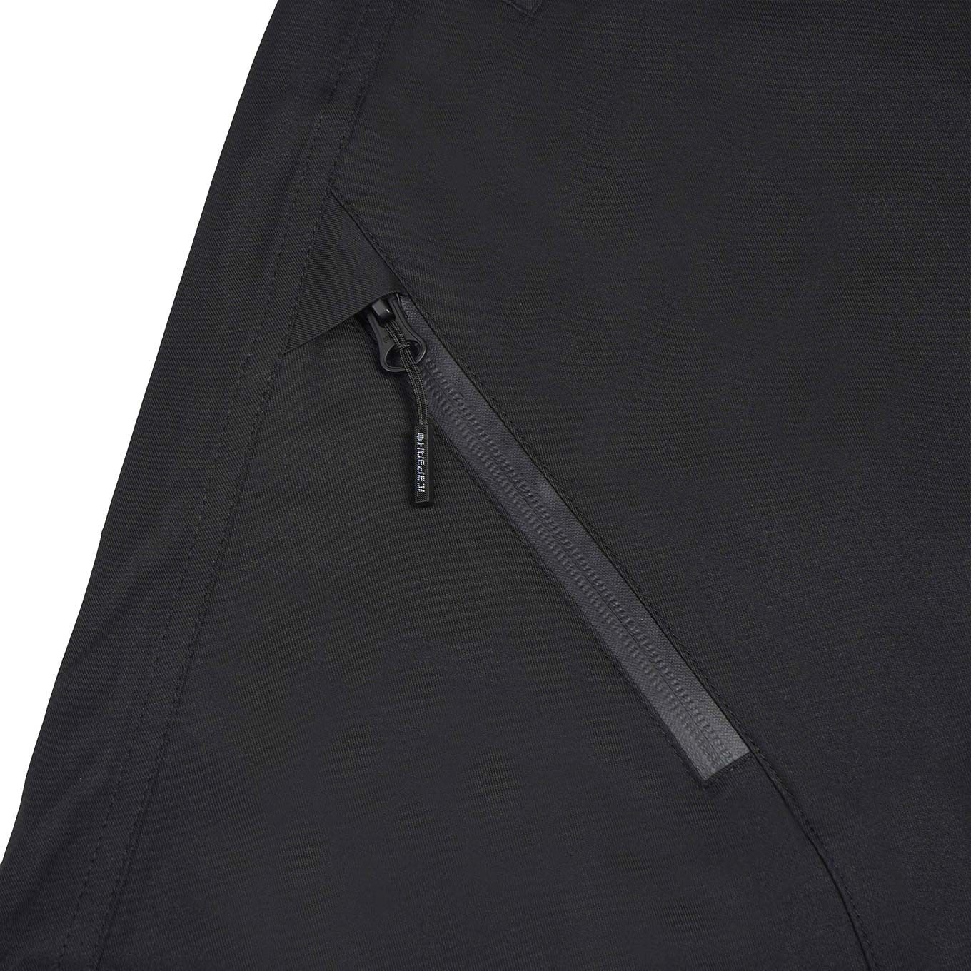 L’étanchéité totale est assurée par des guêtres pare-neige situées en bas des jambes, qui scellent parfaitement l’interface avec les chaussures. La sécurité des objets personnels — téléphone, forfait et petits accessoires — est garantie par des poches mains zippées ainsi qu’une poche cuisse également équipée de fermeture éclair.