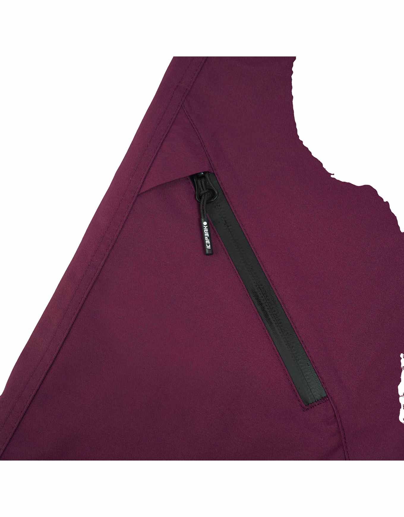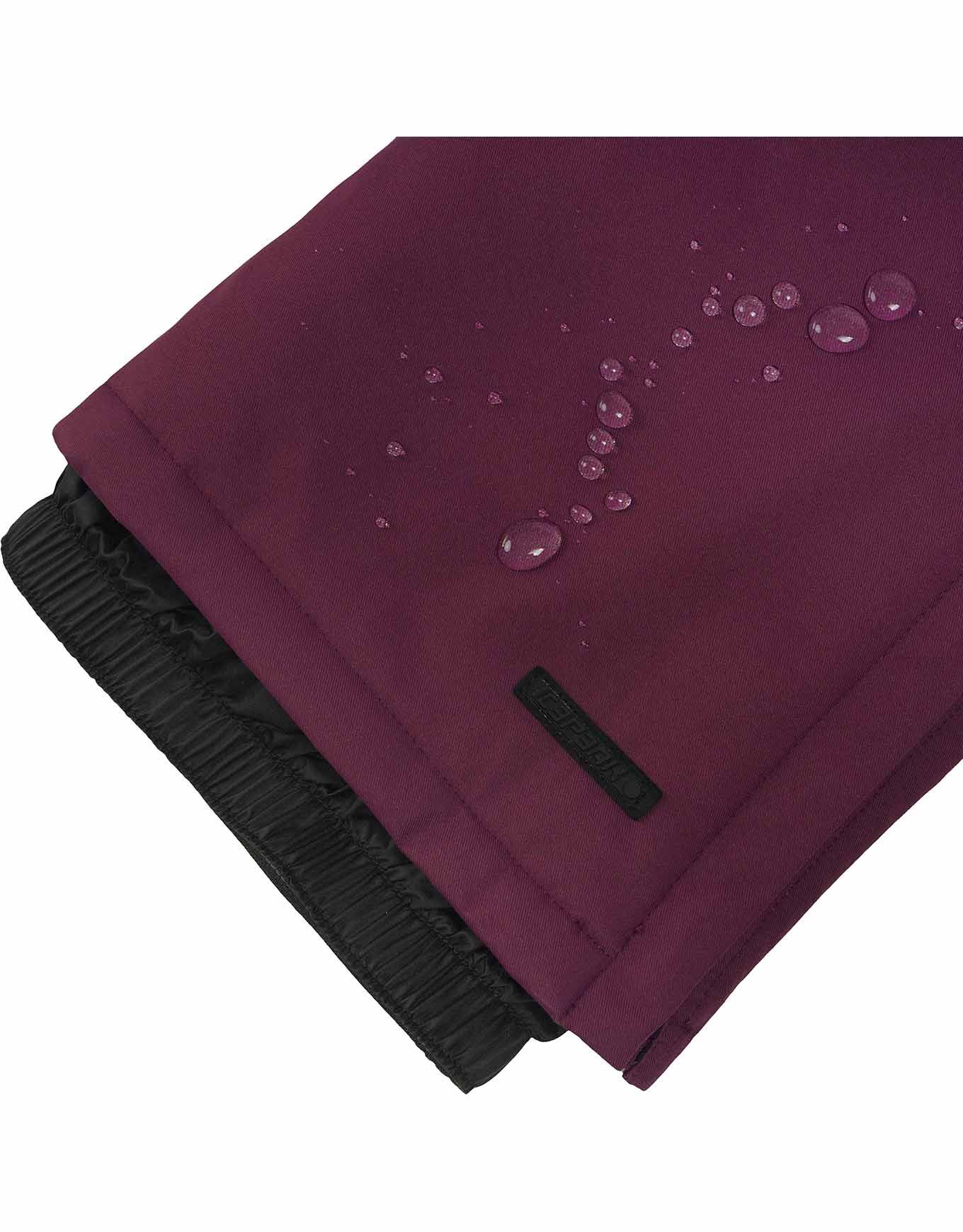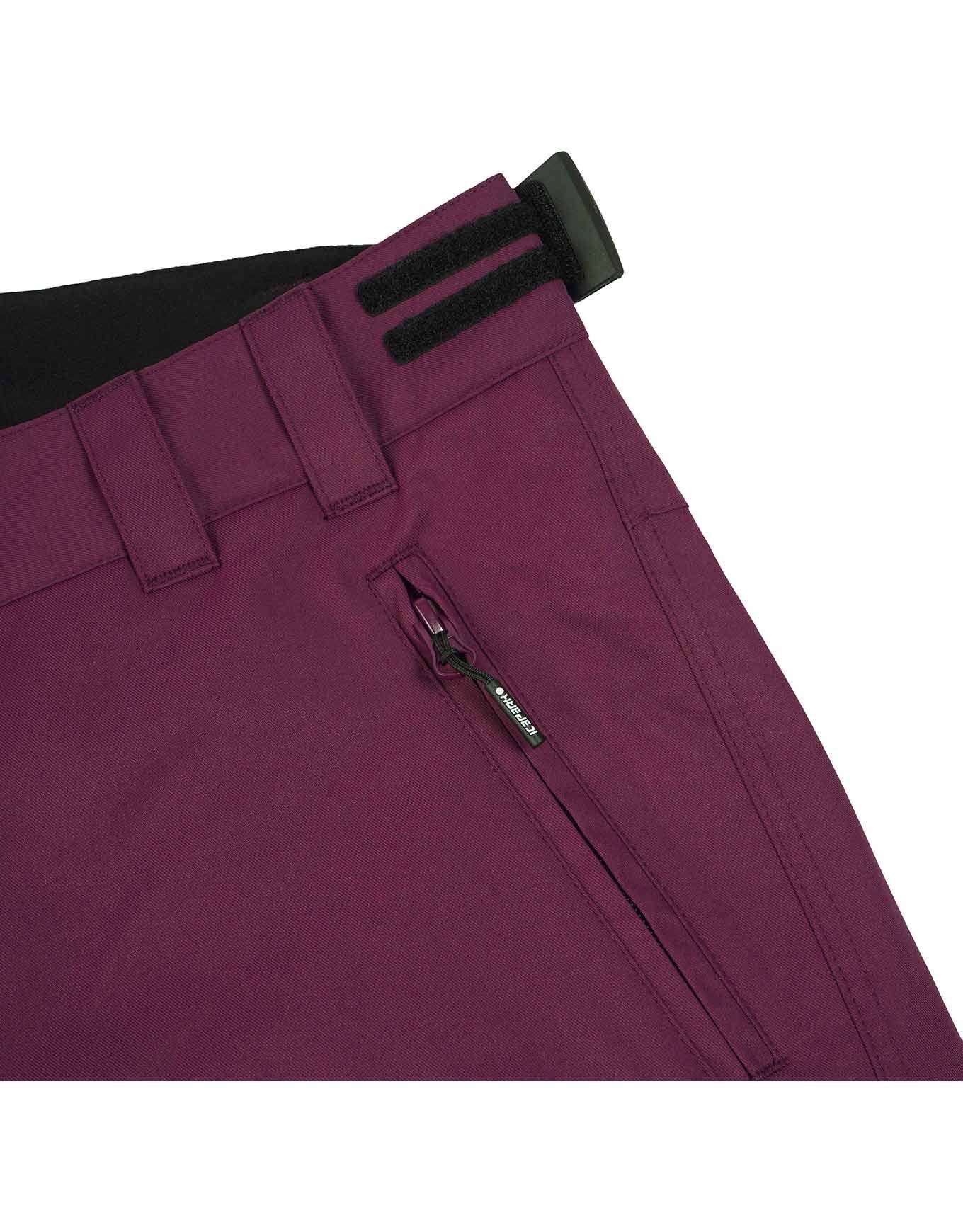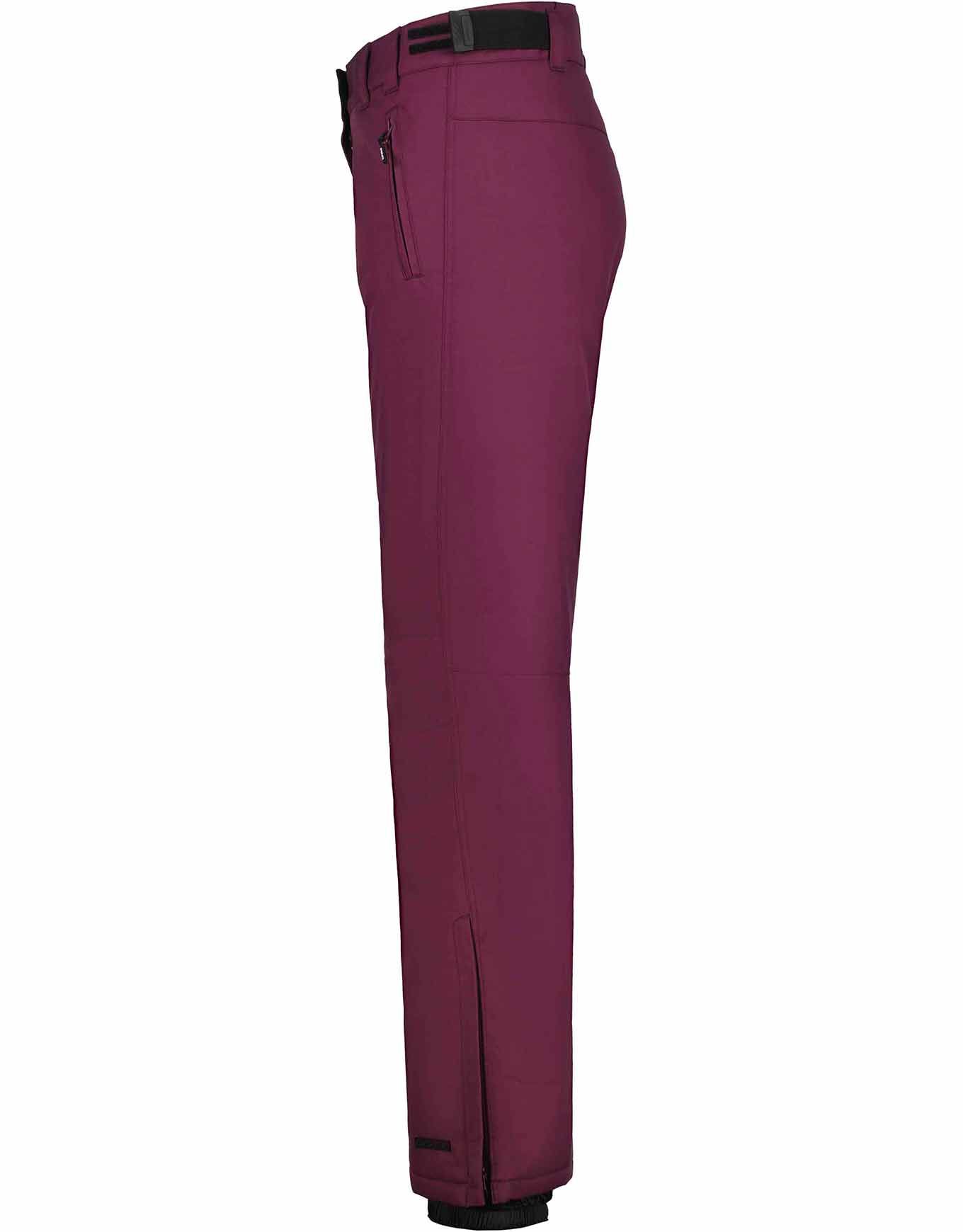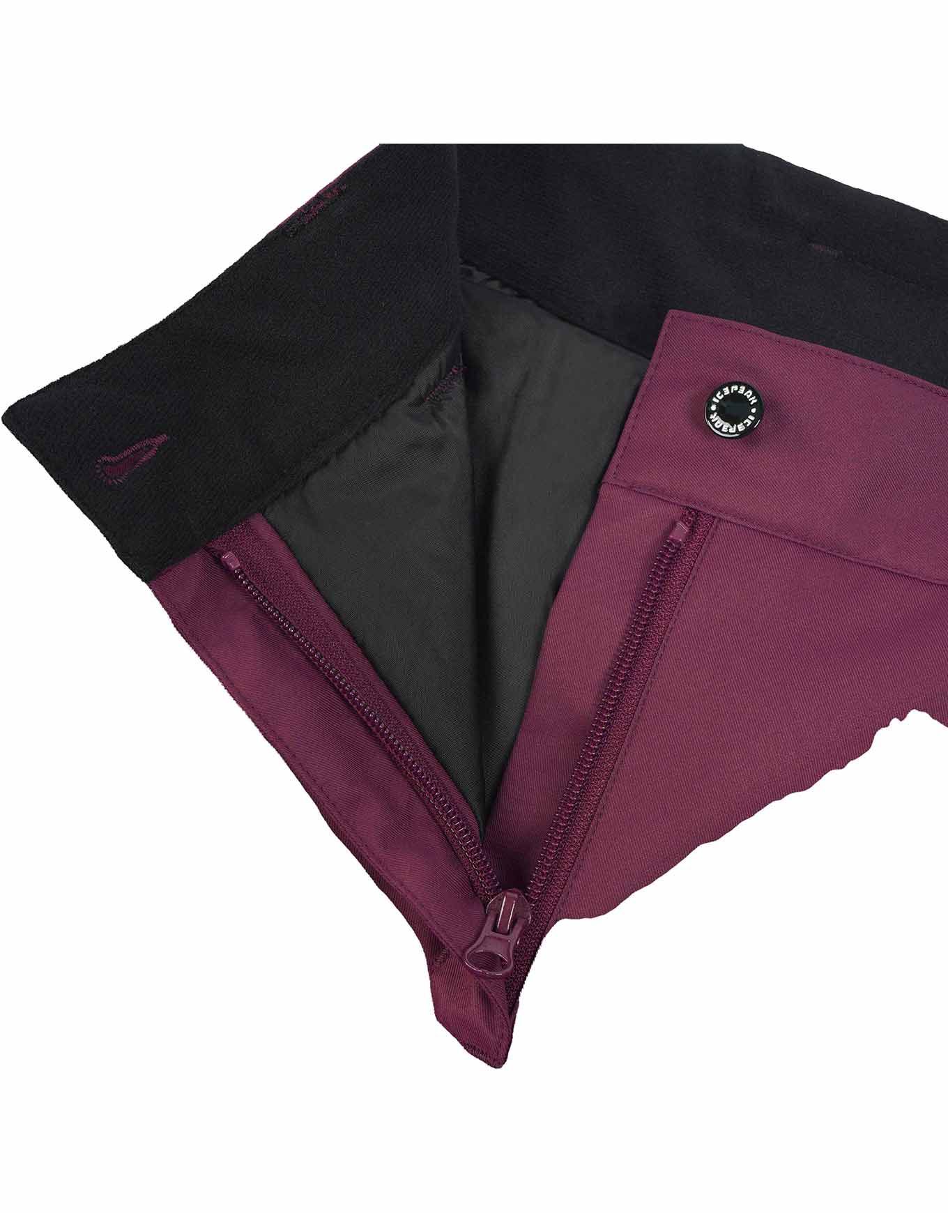 Pantalon de ski Curlew Plum femme d’Icepeak, imperméable et respirant avec coutures scellées, taille montante et guêtres pare-neige pour une protection optimale contre le froid et l’humidité.