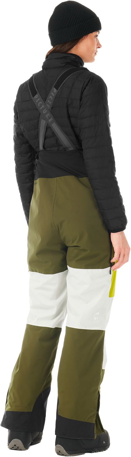 Salopette de ski Picture Organic Clothing Elwy Bib Black femme, hardshell 2 couches en polyester circulaire, membrane Dryplay 20K/20K, respirante, imperméable, coutures étanches, ventilations zippées, bretelles réglables.