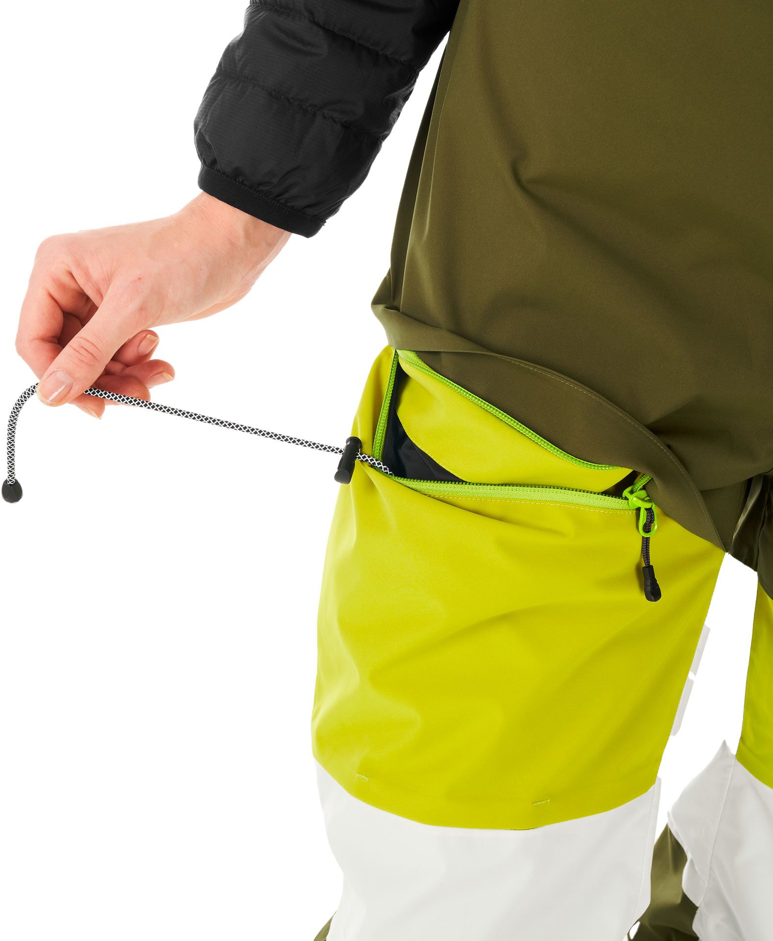Une membrane Dryplay 20K/20K, un traitement déperlant Teflon Ecoelite™ sans PFC et des coutures étanches sont intégrés à cette salopette imperméable et respirante, offrant une barrière fiable contre la pluie et la neige. La ventilation au niveau du dos est facilitée par des panneaux arrière en lycra.