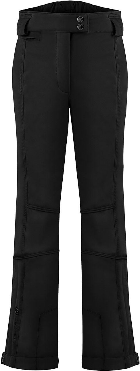 Poivre Blanc Eva Stretch Ski Pants est un pantalon de ski slim noir pour femme en tissu 4-way stretch, imperméable et respirant, avec isolation 190 g, genoux préformés et guêtres pare-neige intégrées.