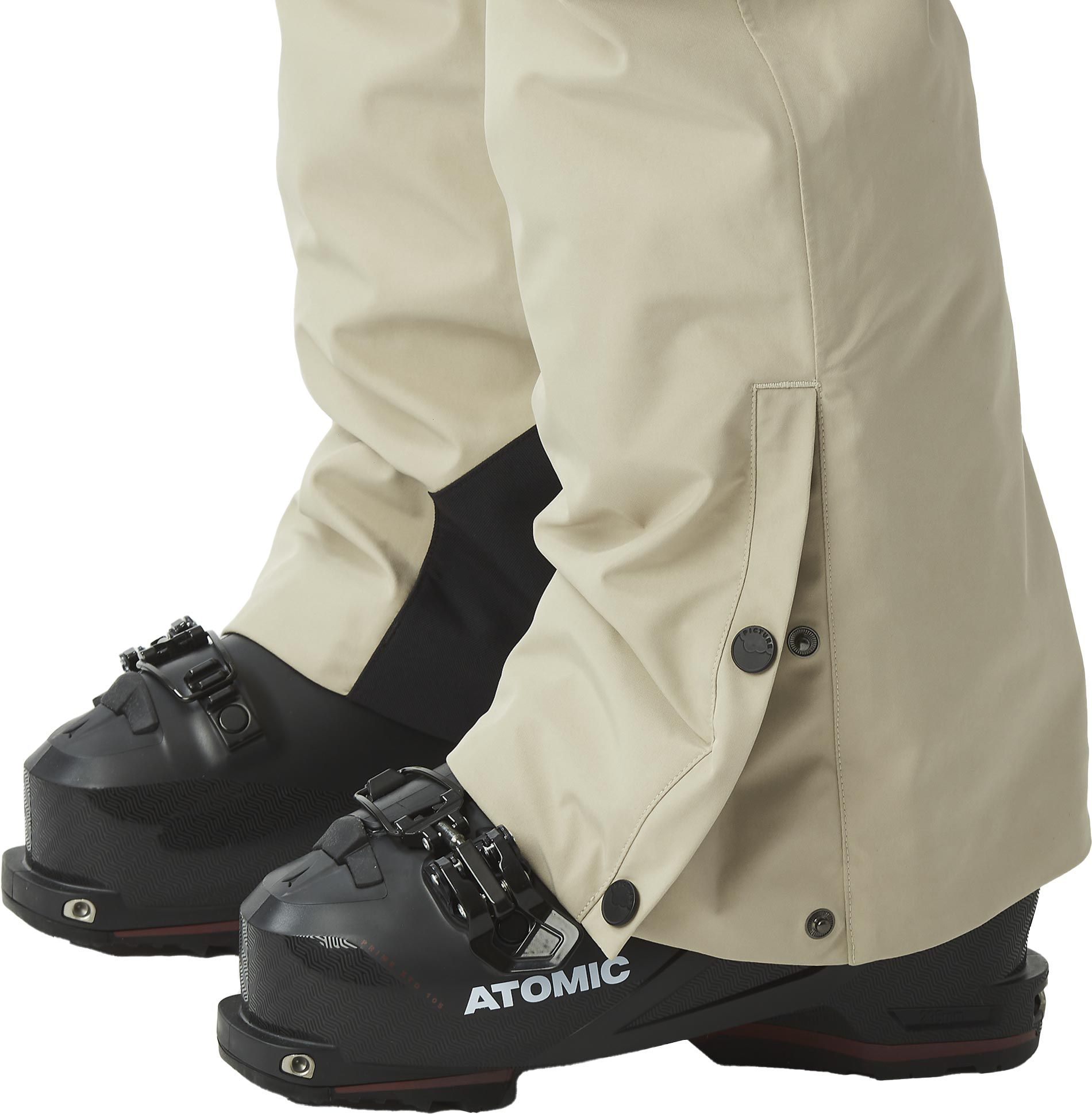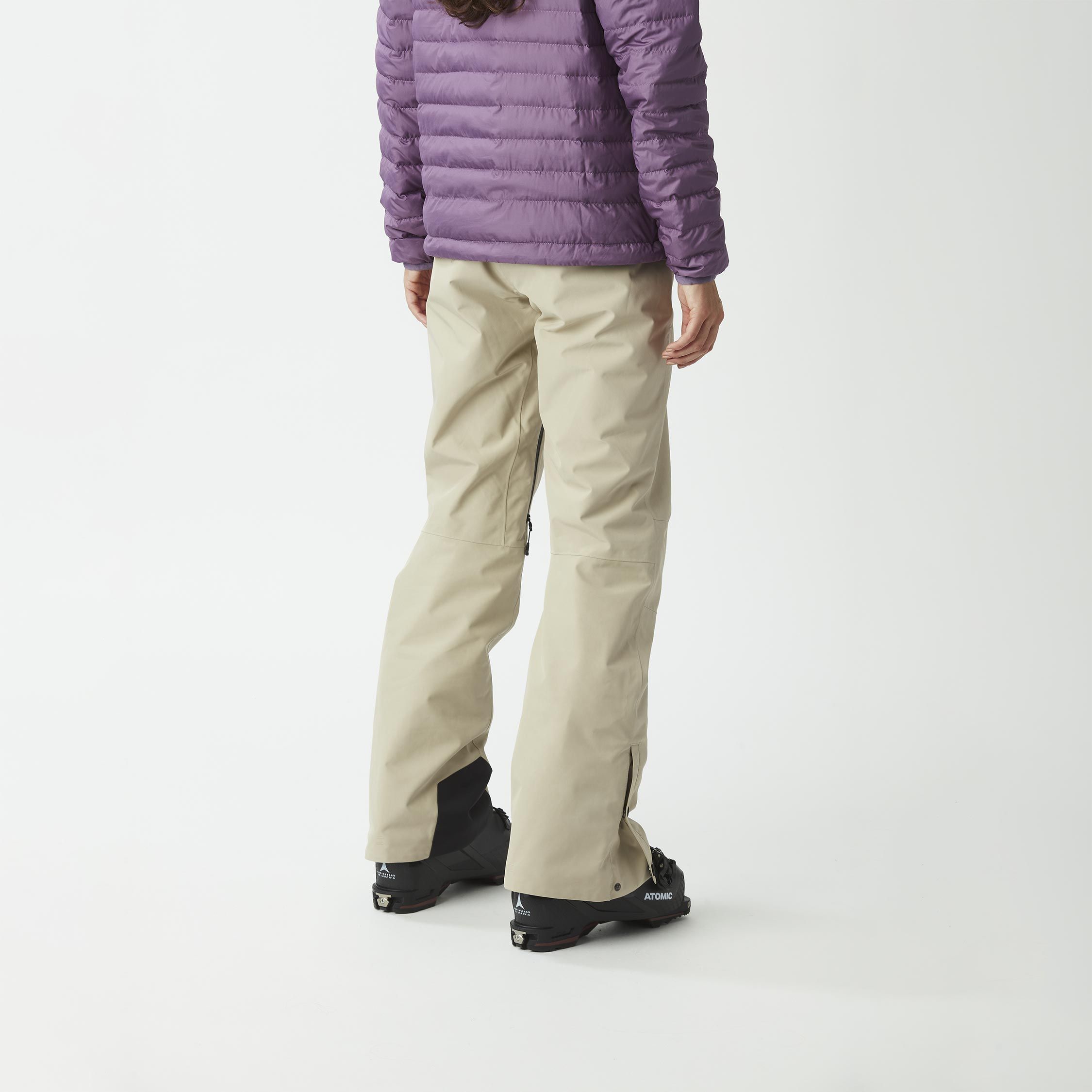 Pantalon de ski femme Picture Organic Clothing Exa GTX Pants Pure Cashmere en GORE-TEX 2L, isolation Thermal STD, membrane respirante, coutures scellées, ventilations zippées et guêtres pare-neige.