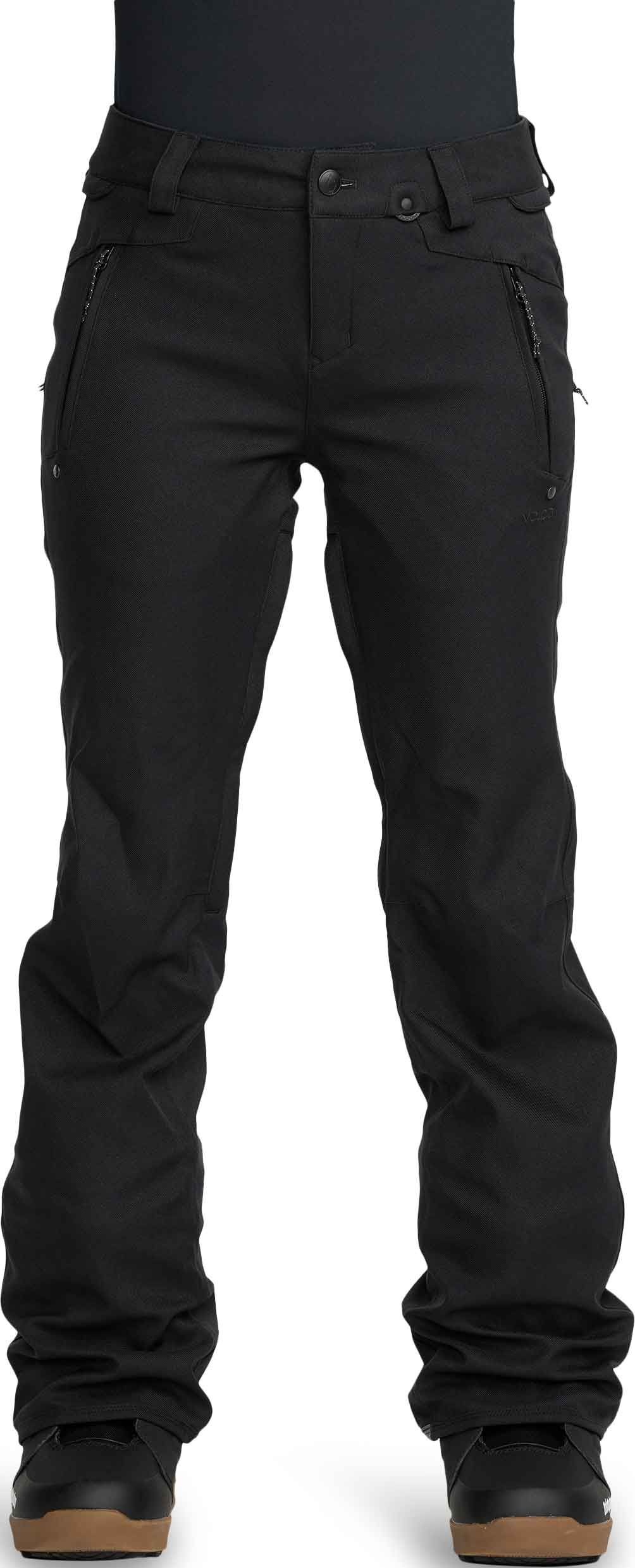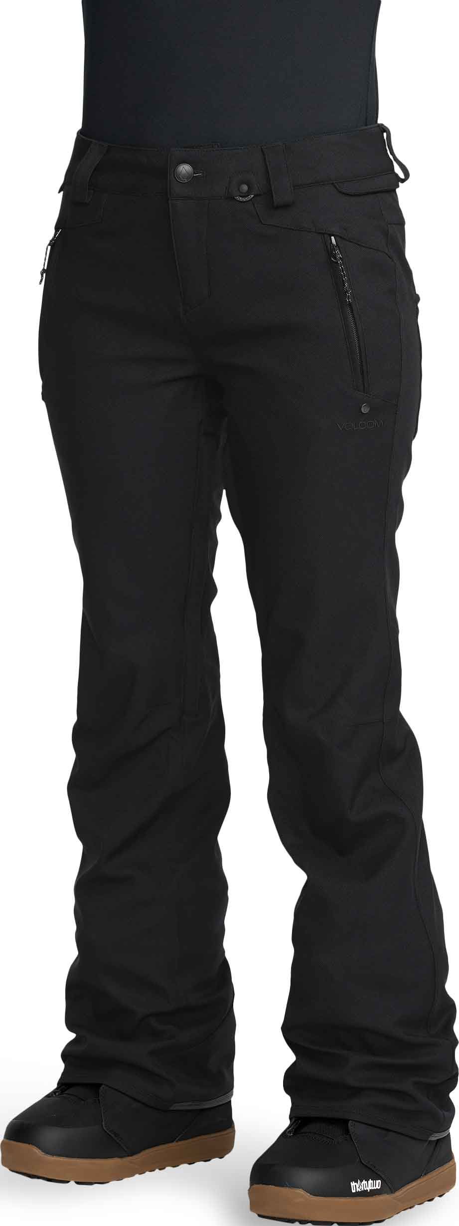 Pantalon de snow femme Volcom Genus Stretch Pant Black, coupe slim, membrane V-Science imperméable, doublure respirante, système Zip Tech® pour une protection complète contre le froid et la neige.