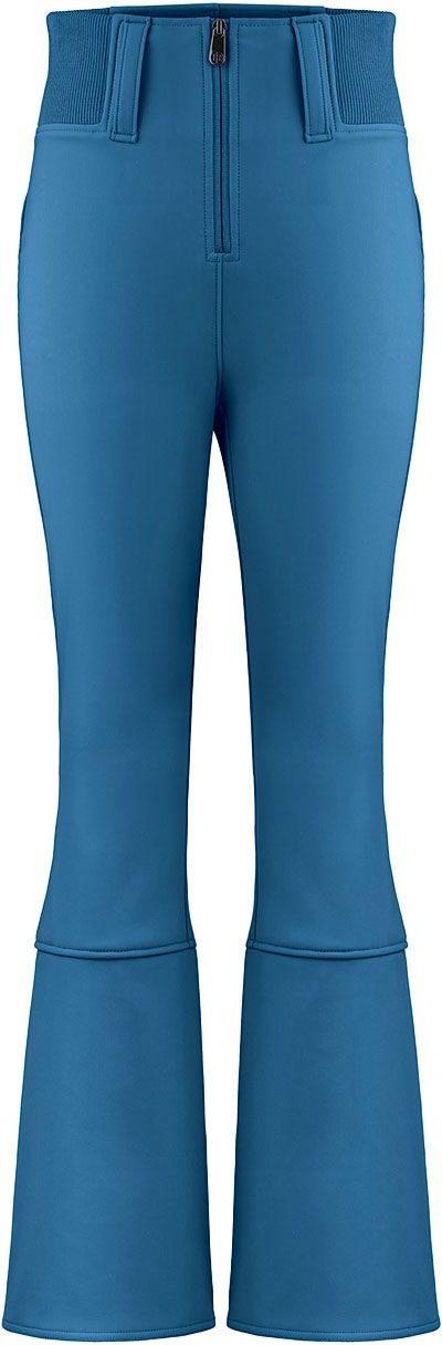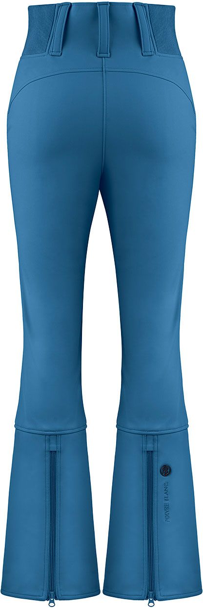 Poivre Blanc Glory Softshell Pants Twilight Blue : pantalon de ski femme stretch 2 couches, membrane imperméable-respirante, isolation 190 g, taille haute et guêtres pare-neige intégrées.