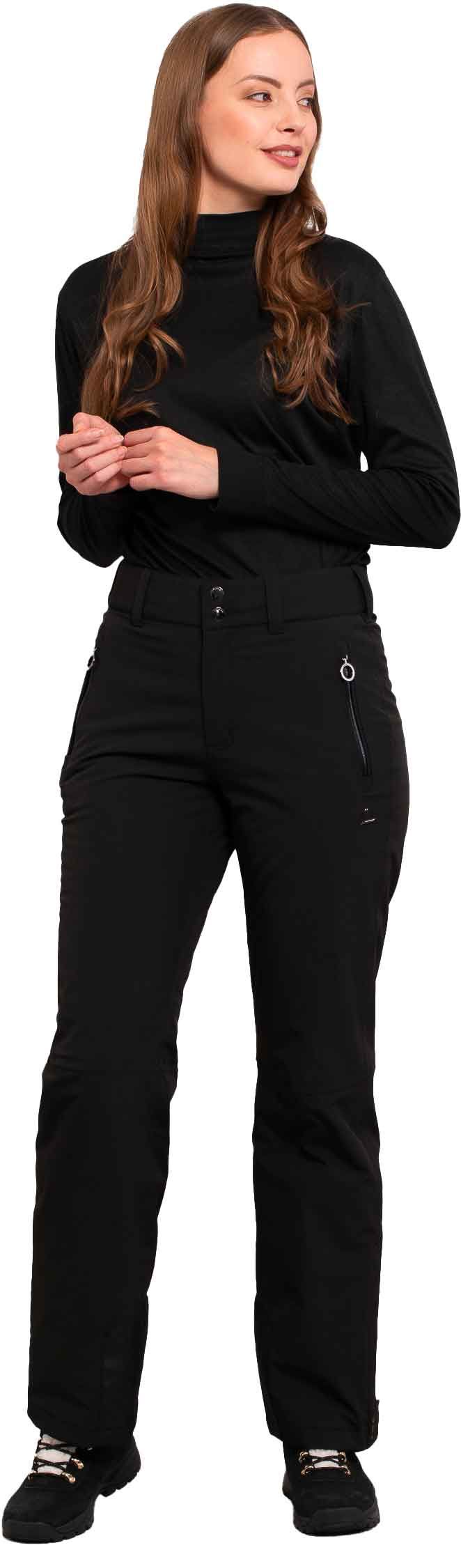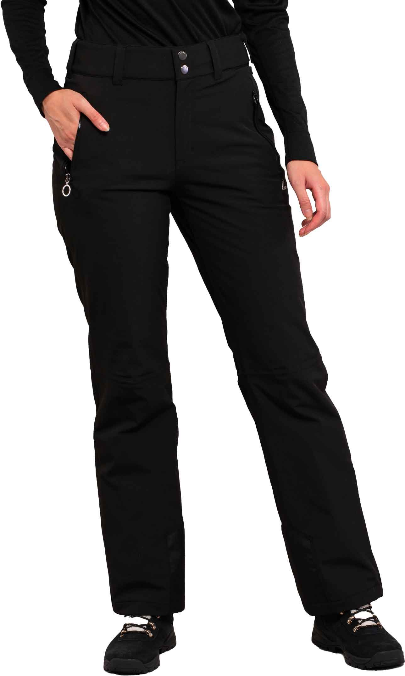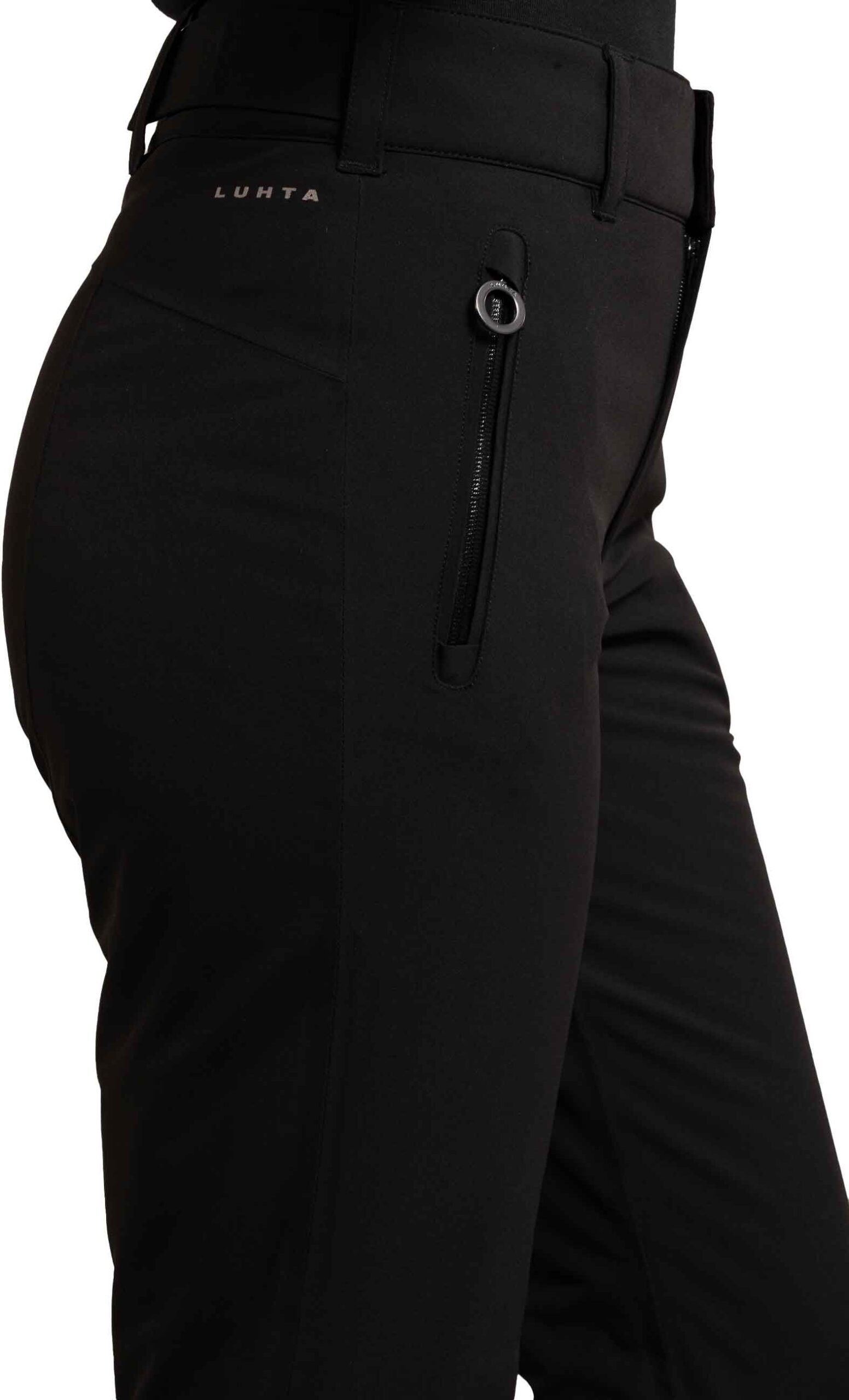 Pantalon de ski Luhta Jero Noir pour femme, extensible et imperméable avec isolation légère, coutures étanches, taille réglable et genoux articulés pour liberté de mouvement.
