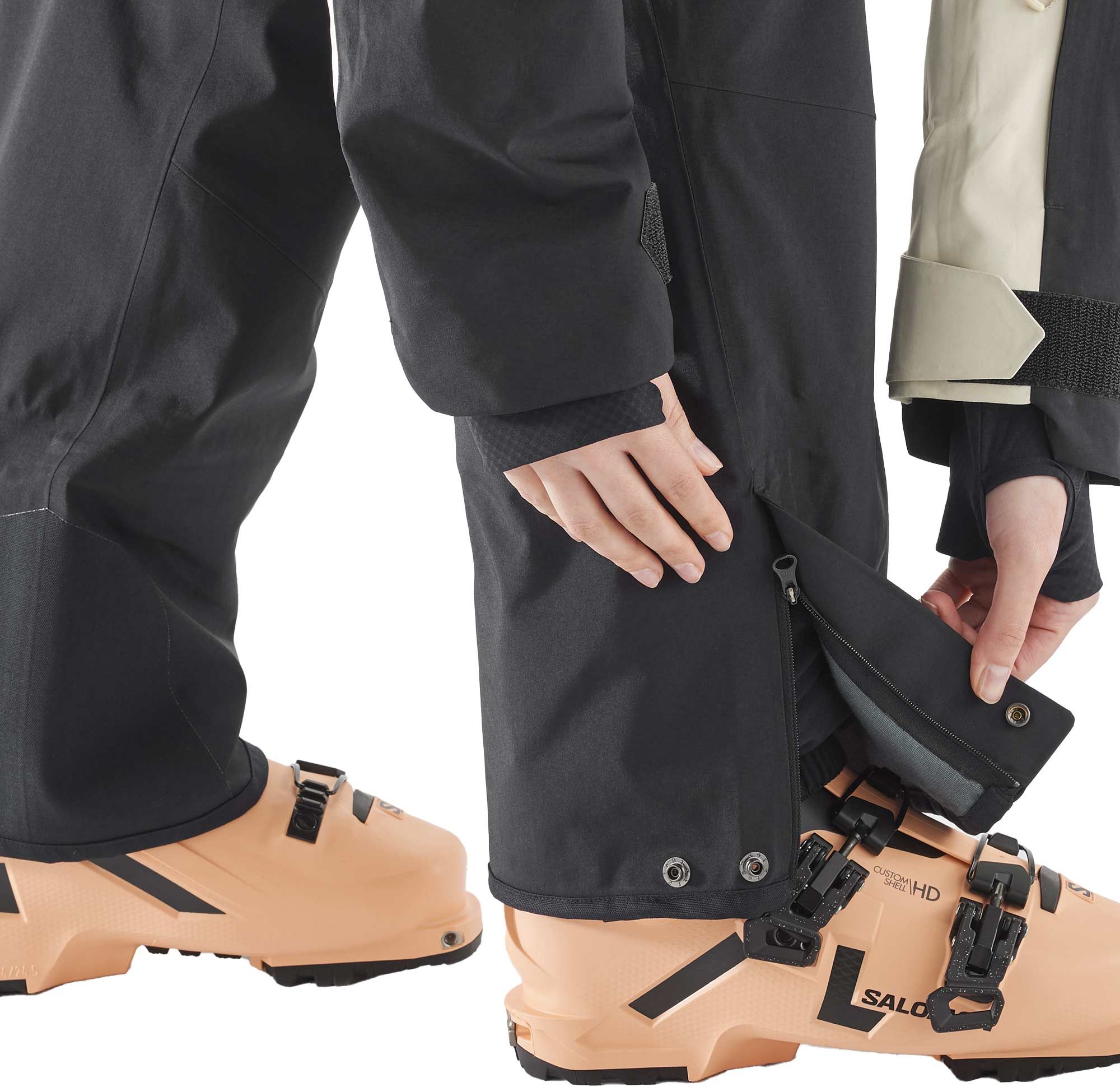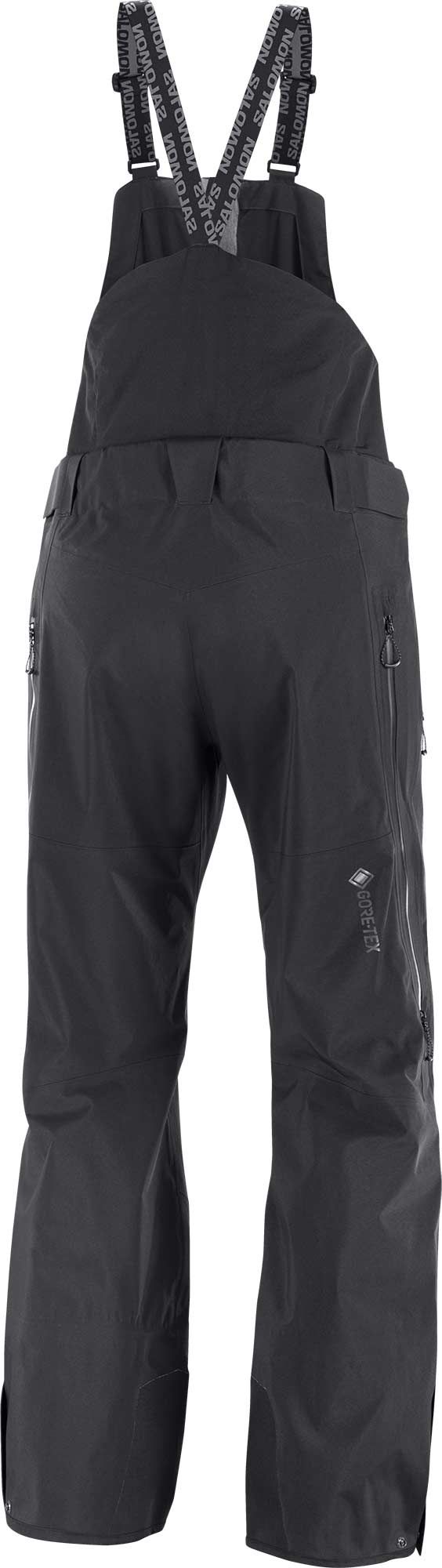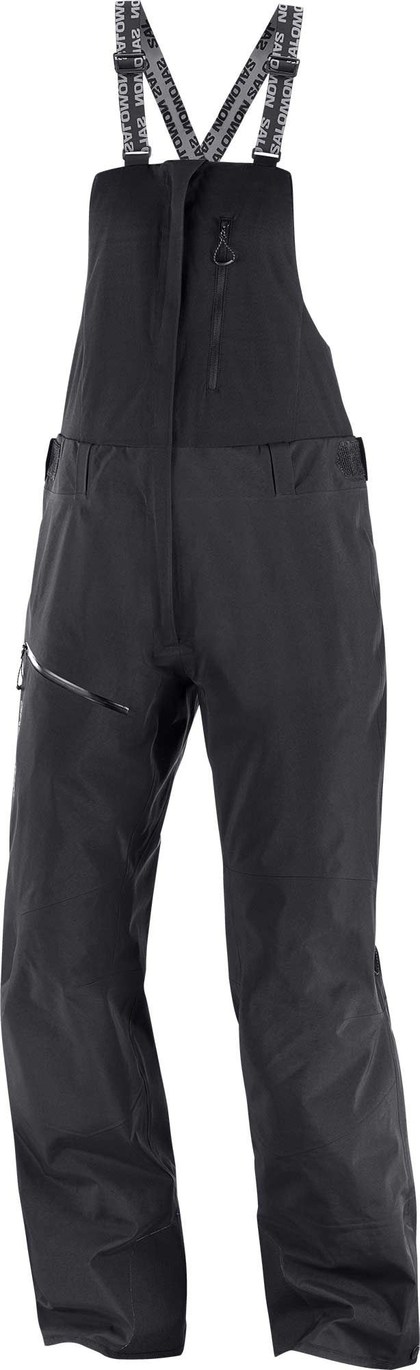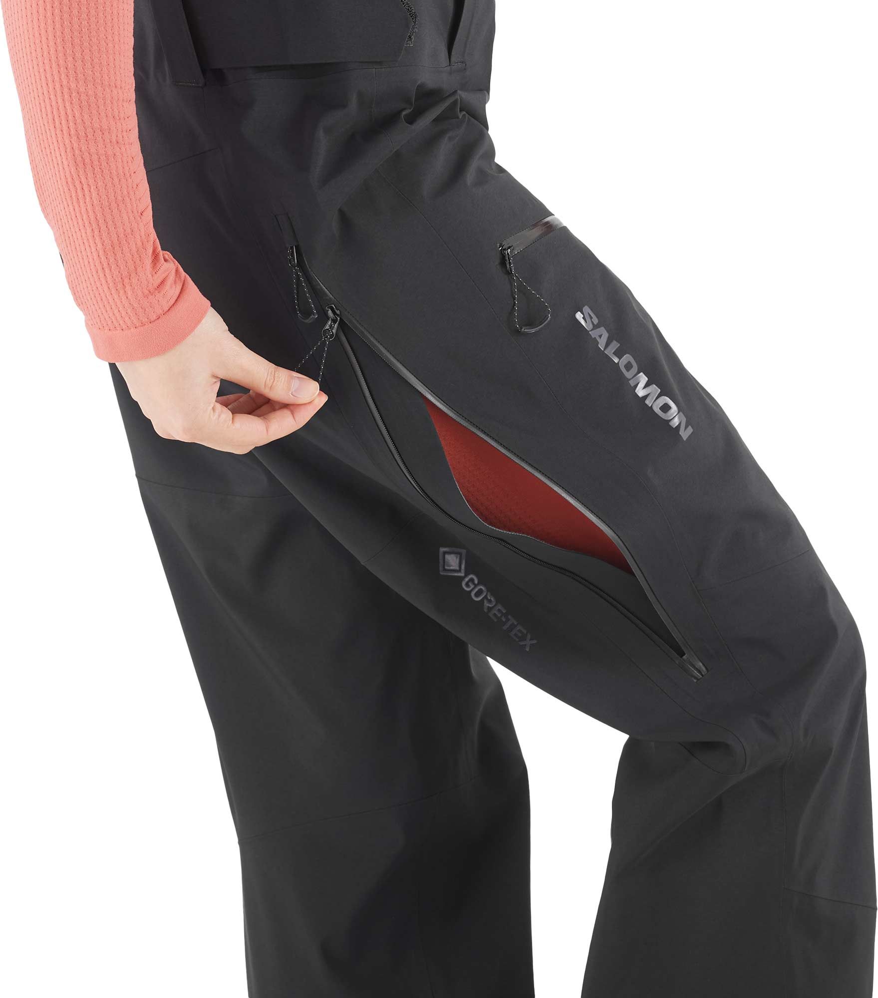 Salomon Moon Patrol Bib Deep Black : salopette ski femme en GORE-TEX ePE 3 couches respirant, coupe Regular avec ventilation latérale, plastron ajustable, guêtres intégrées et bas en Cordura®, conçue pour all-mountain et freeride.