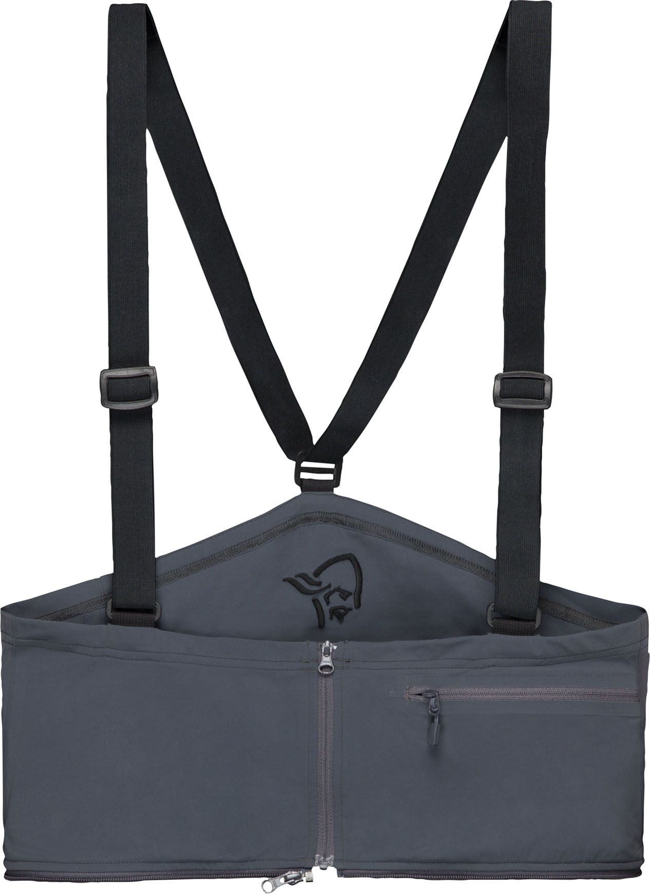 Le Mountaineering Bib Ebony pour femme de la marque Norrona est un plastron amovible, apportant protection et maintien du pantalon en action.