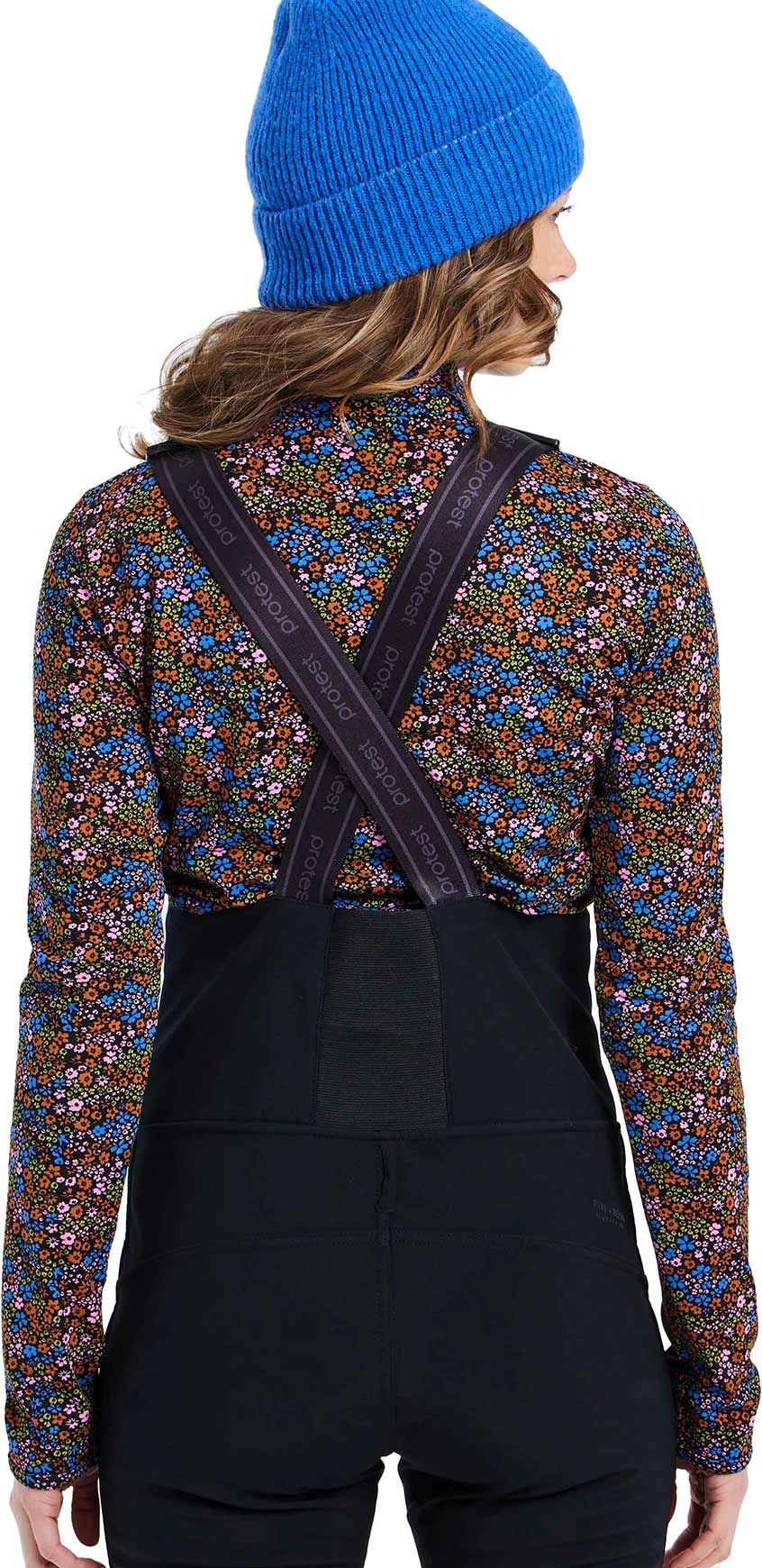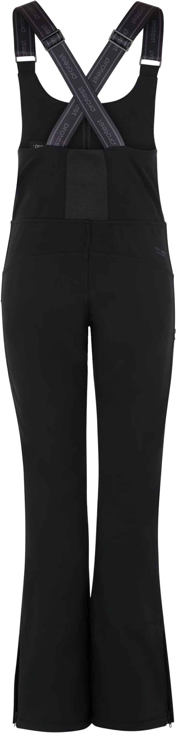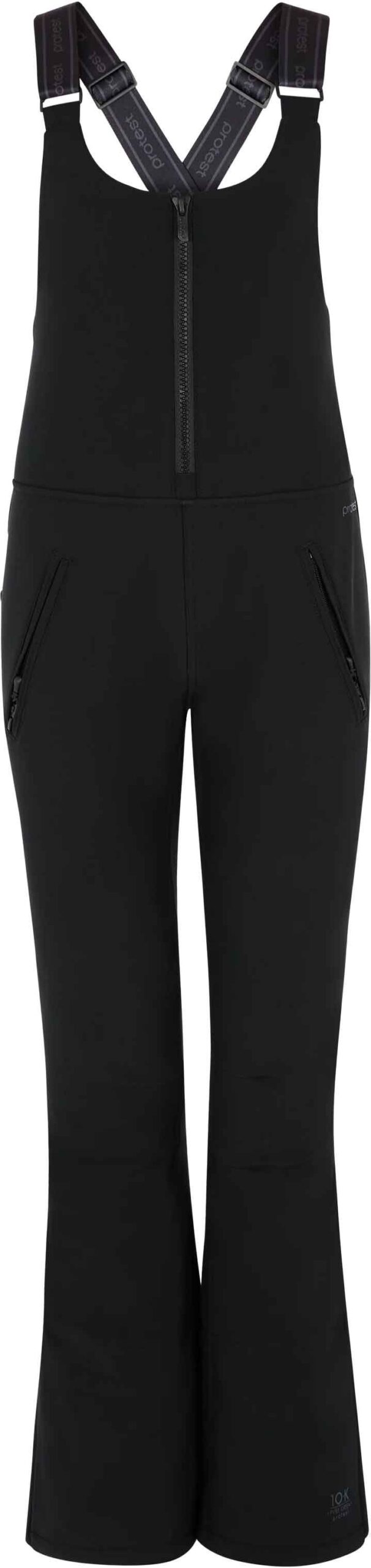 Salopette de ski Protest Prtholymoly True Black pour femme, série Geotech : softshell coupe-vent, hydrofuge, chaud, sans PFC, poches zippées, renforts intérieur jambes, coupe ergonomique.