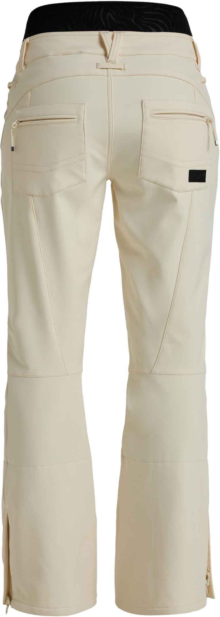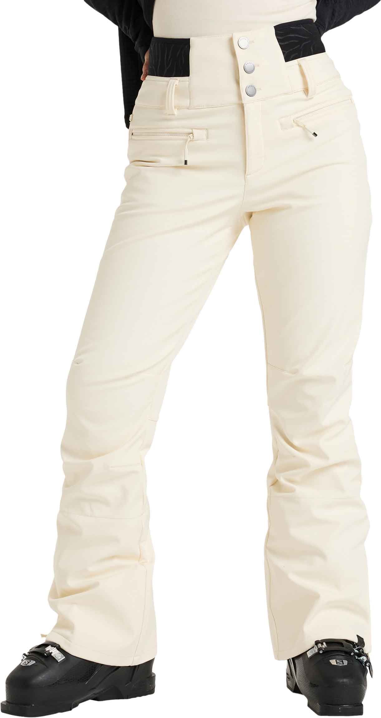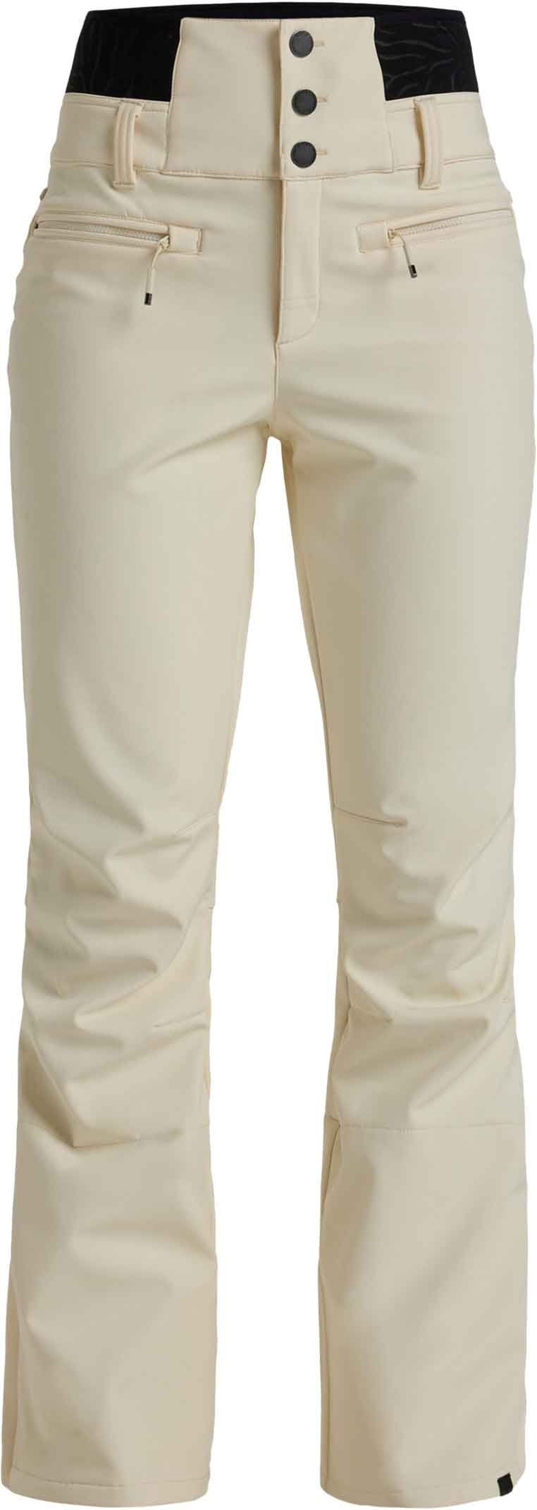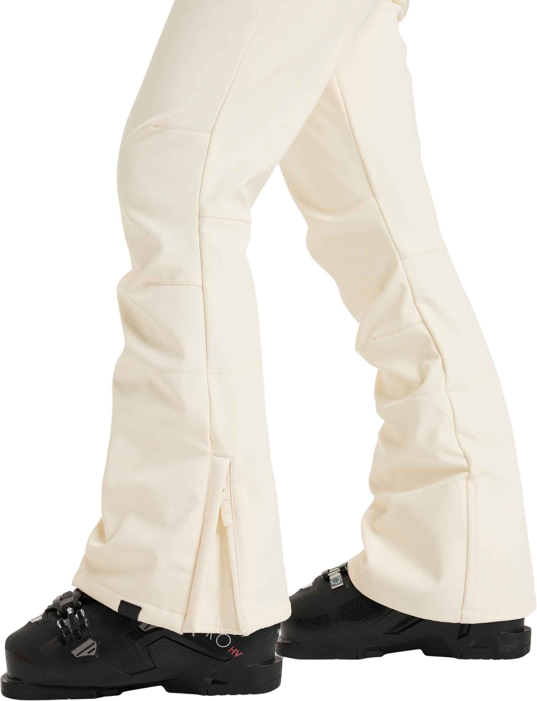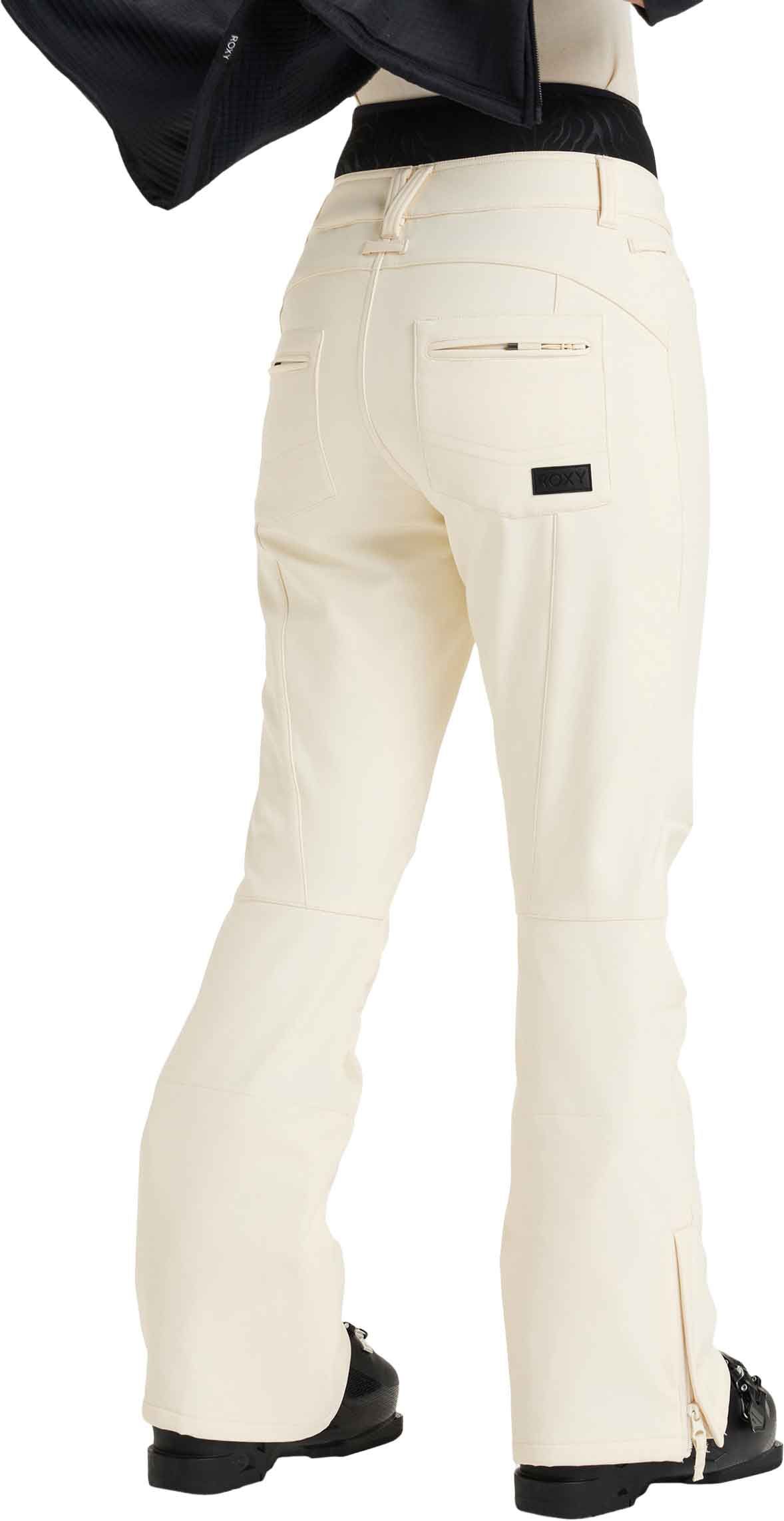 Pantalon de ski Roxy Rising High Buttercream femme en softshell stretch, imperméable et respirant avec membrane DryFlight®, taille réglable et guêtres pare-neige pour un confort optimal sur les pistes.