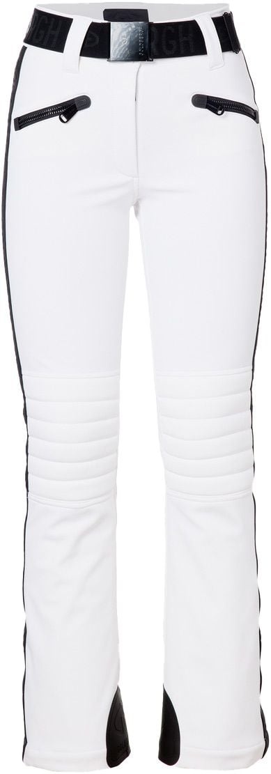 Pantalon de ski Goldbergh Slalom Ski Pant White femme, coupe slim, tissu extensible imperméable et respirant, genoux matelassés, guêtres pare-neige et 4 poches zippées.