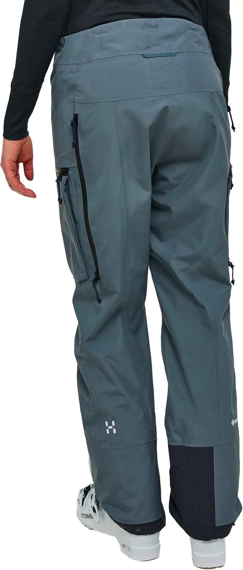 Pantalon de ski freeride femme Haglöfs Vassi GTX Steel Blue en GORE-TEX 3 couches, respirant, imperméable, taille haute ajustable, ventilations zippées, guêtres réglées, poches, réflecteur RECCO®.