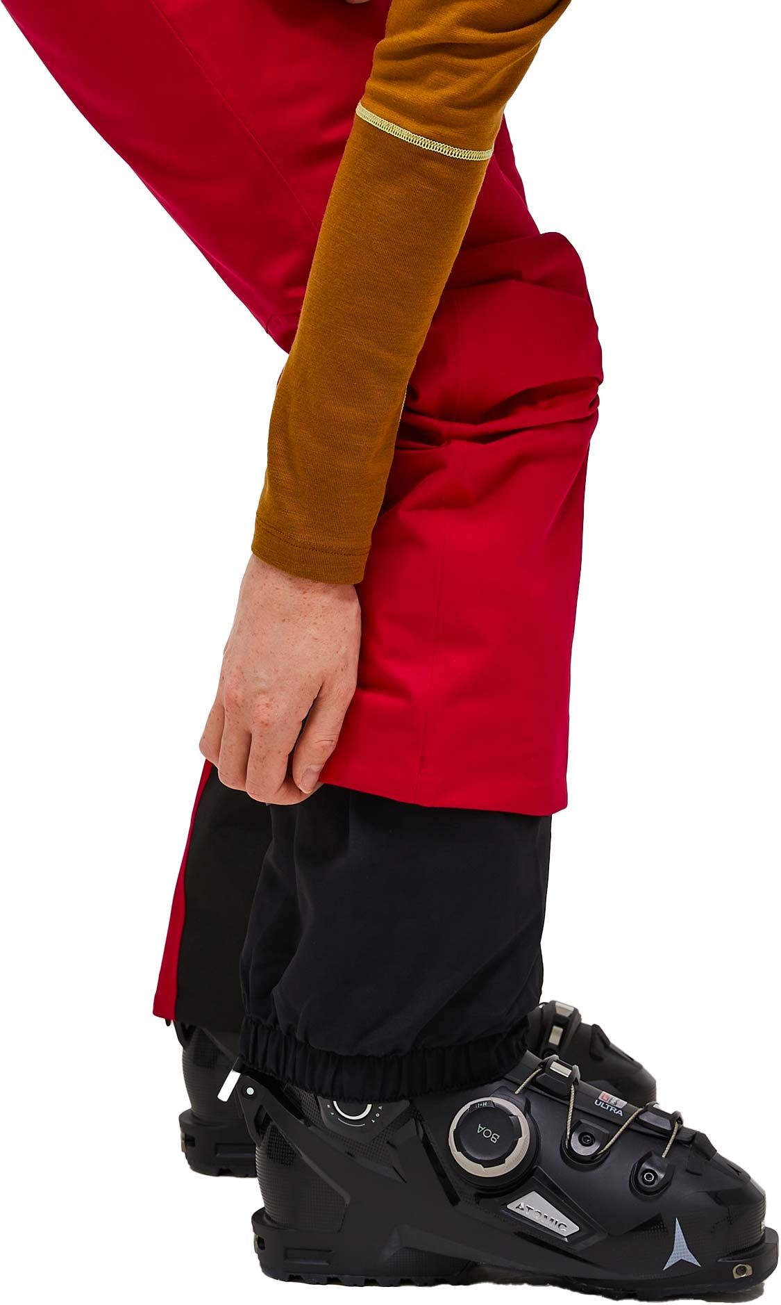 Un renfort en Cordura® au bas des jambes garantit la robustesse du vêtement. Côté fonctionnalité, on trouve des poches zippées pour les mains, des passants de ceinture permettant de fixer une jupe pare-neige de veste de ski, ainsi qu’une boucle de suspension interne.
