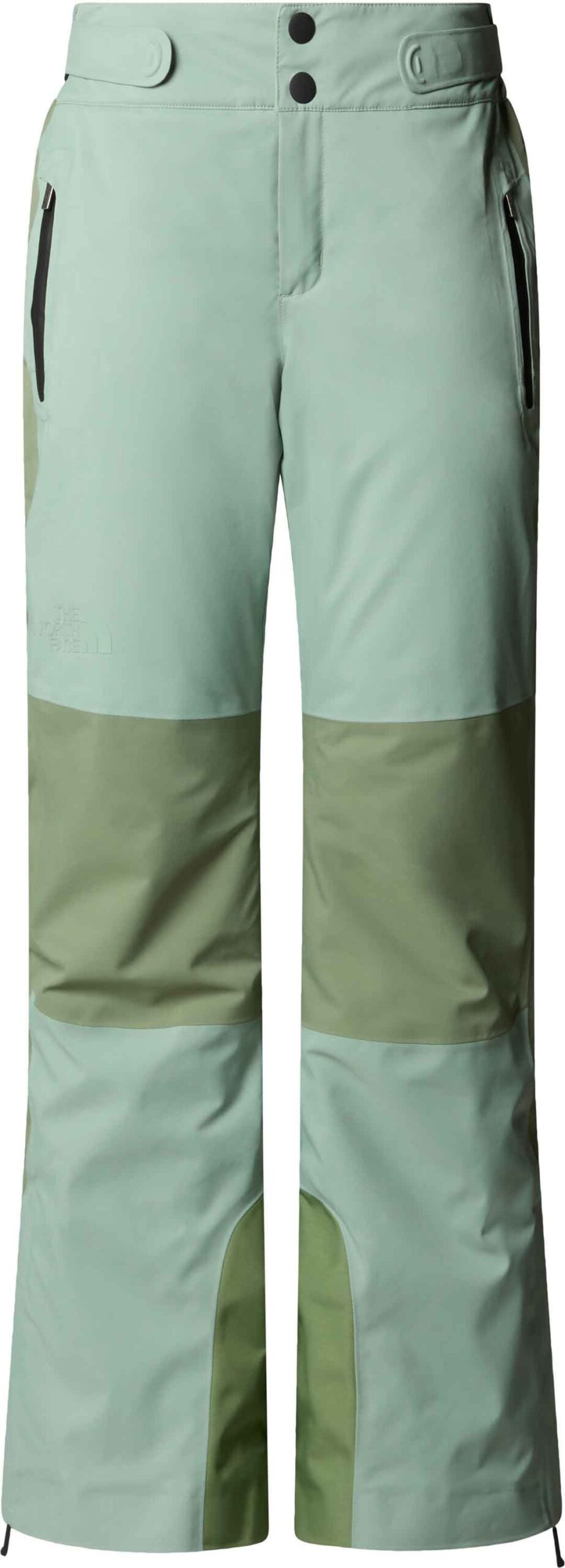 The North Face Lenado Pant Slate Moss Bark Mist est un pantalon de ski femme imperméable DryVent™ et isolant Heatseeker™ Eco Advanced offrant liberté de mouvement par genoux articulés et élasthanne.