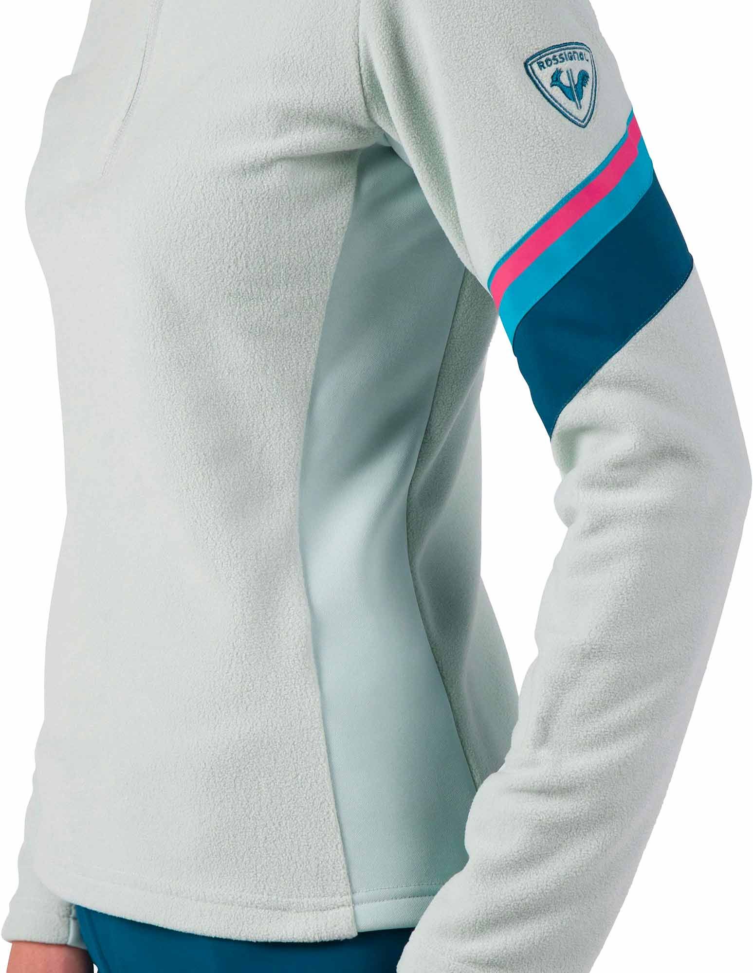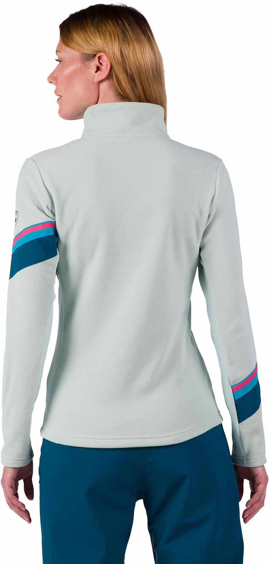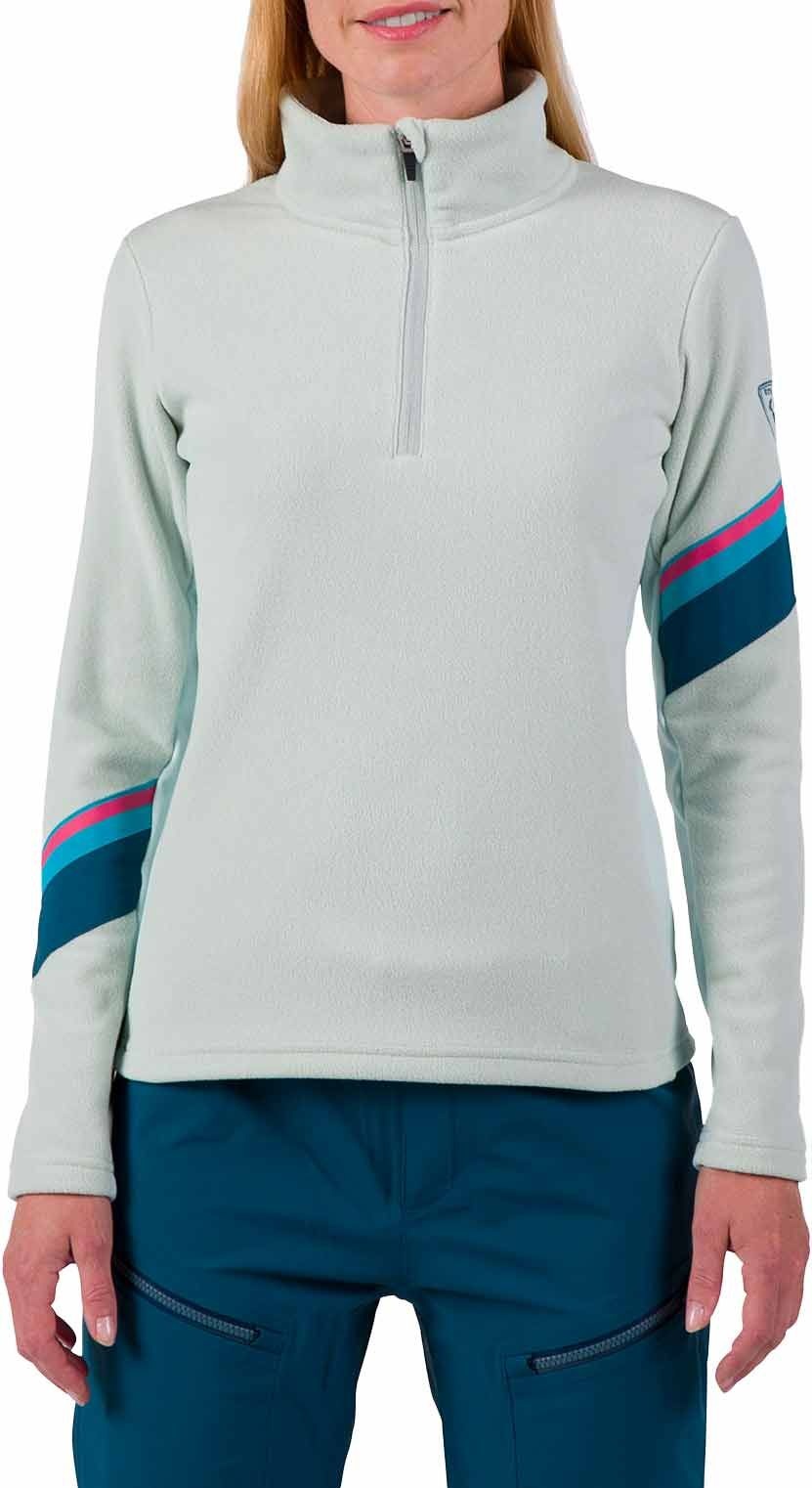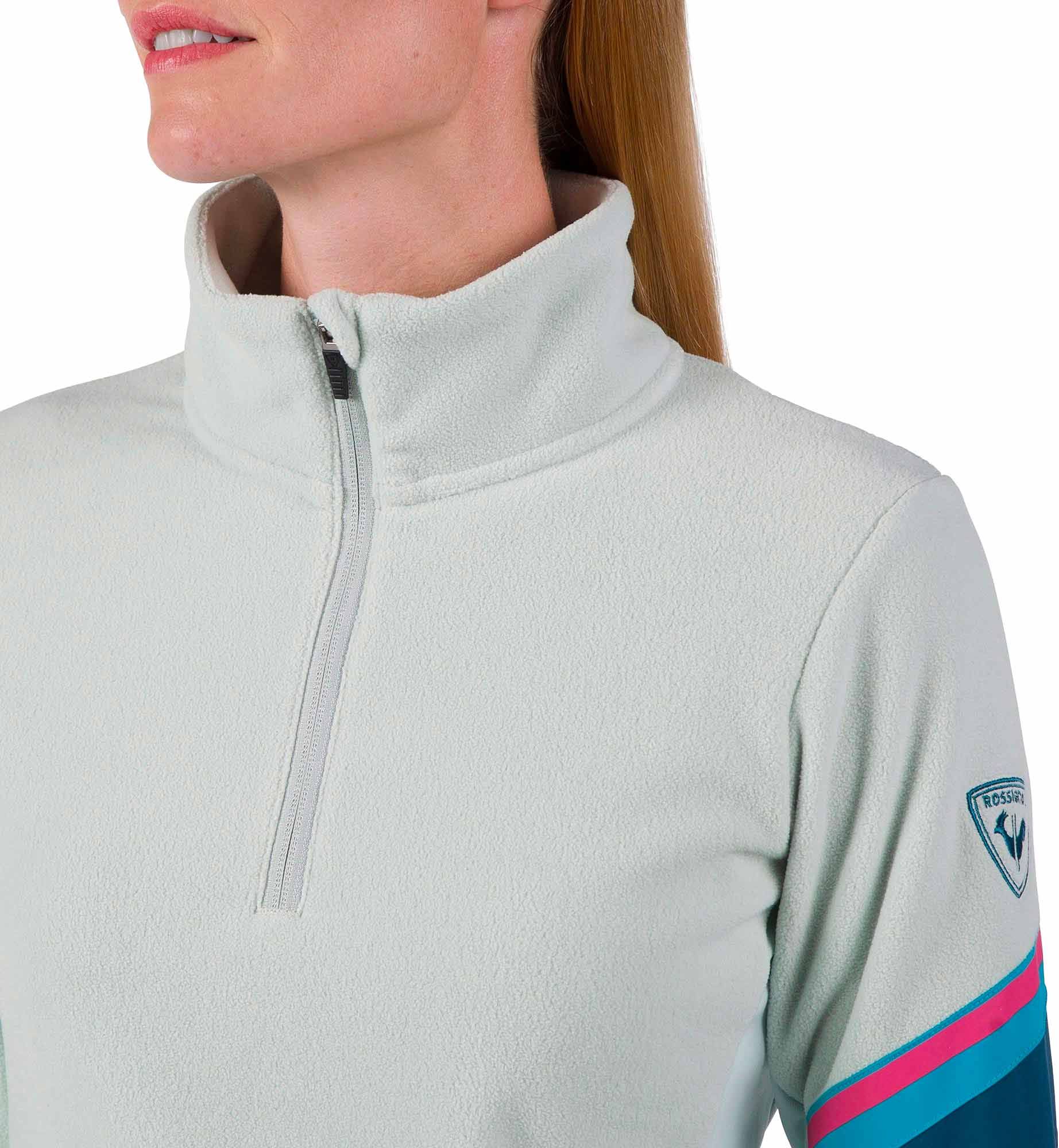 La polaire Rossignol Strawpile Fleece Fz Steam pour femme combine chaleur technique R-Warm® respirante et coupe standard sportive, avec protection menton et grande liberté de mouvement pour les sports d’hiver.